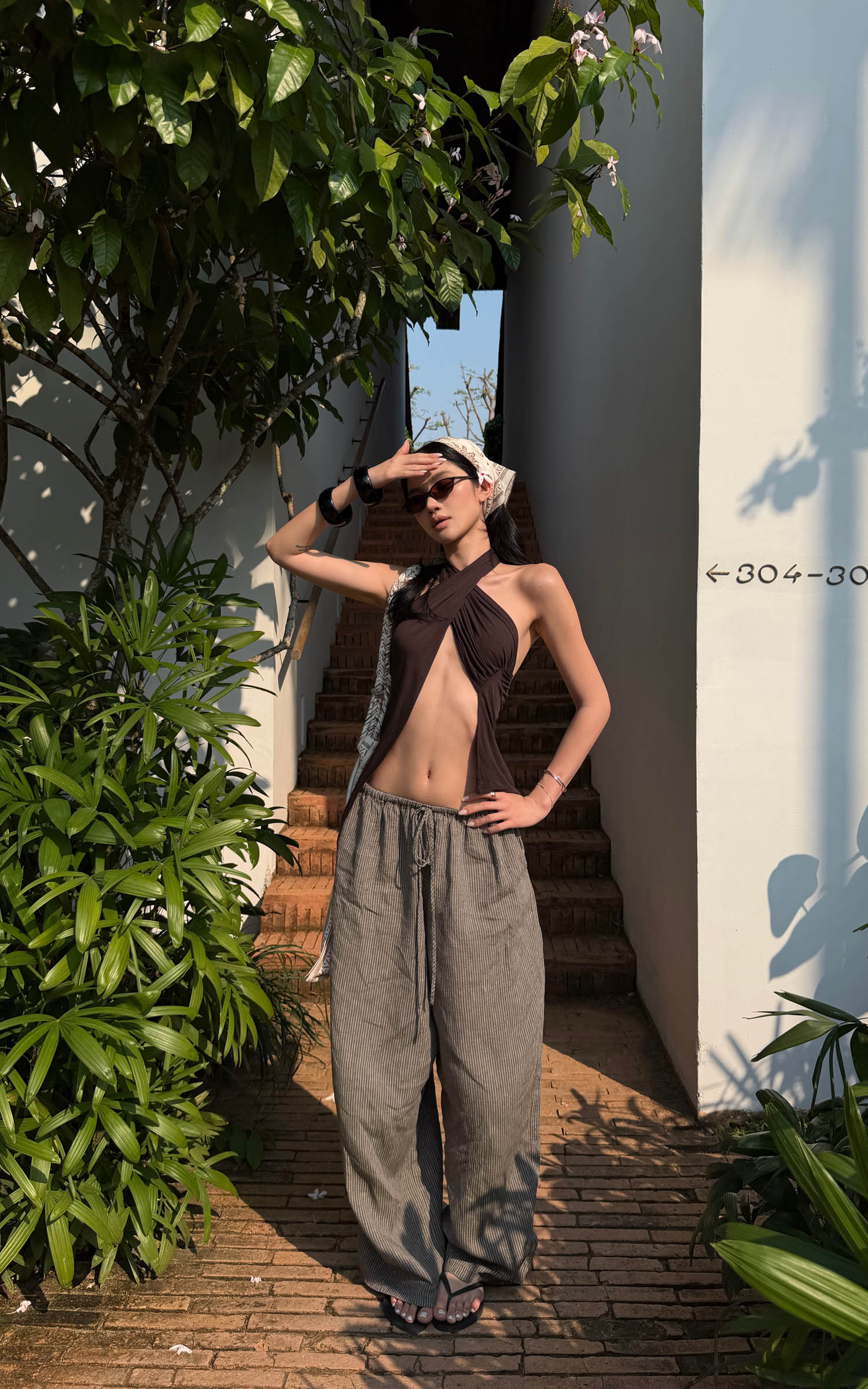 0122stepll Camo Strap Backless Halter Corset Top