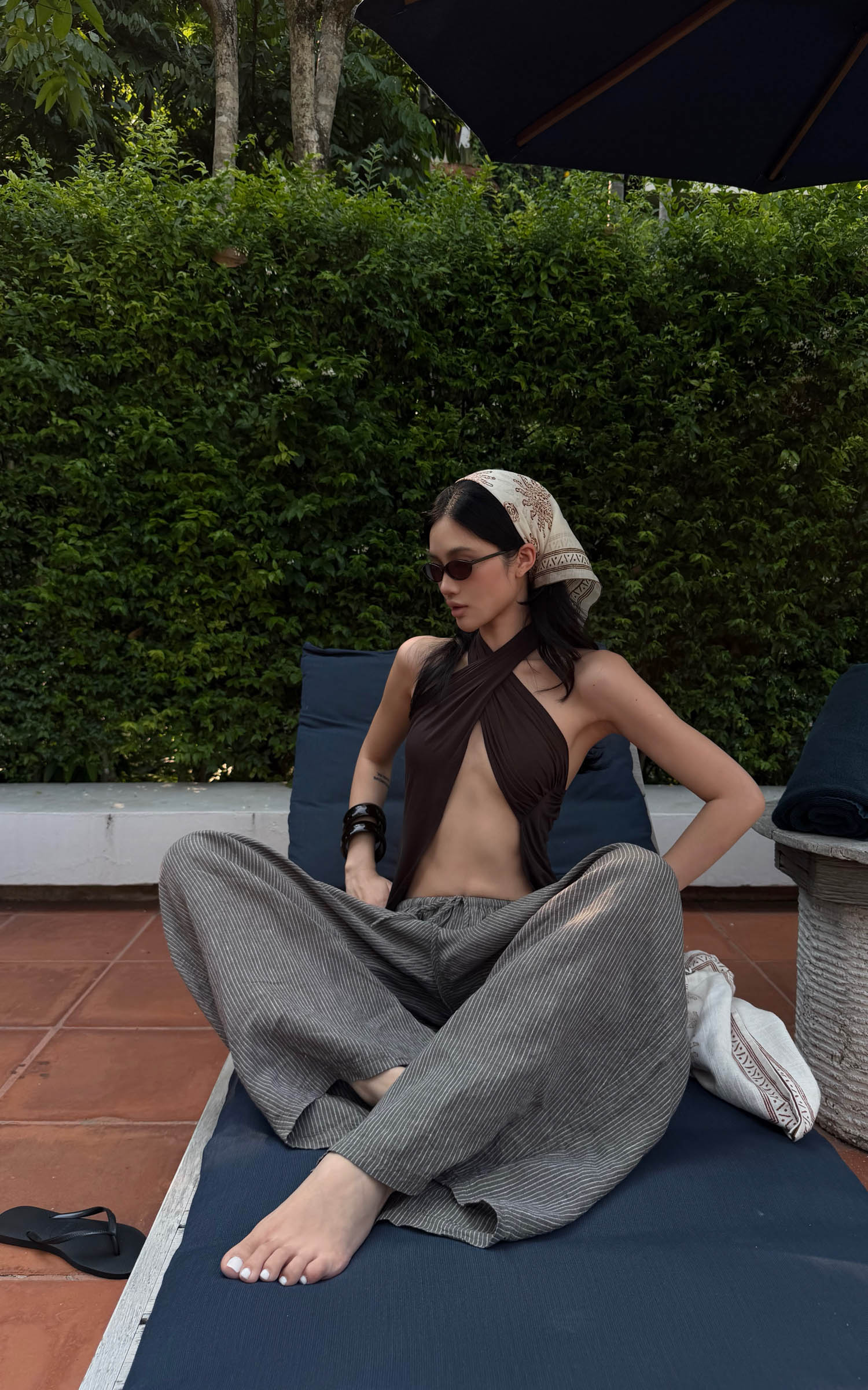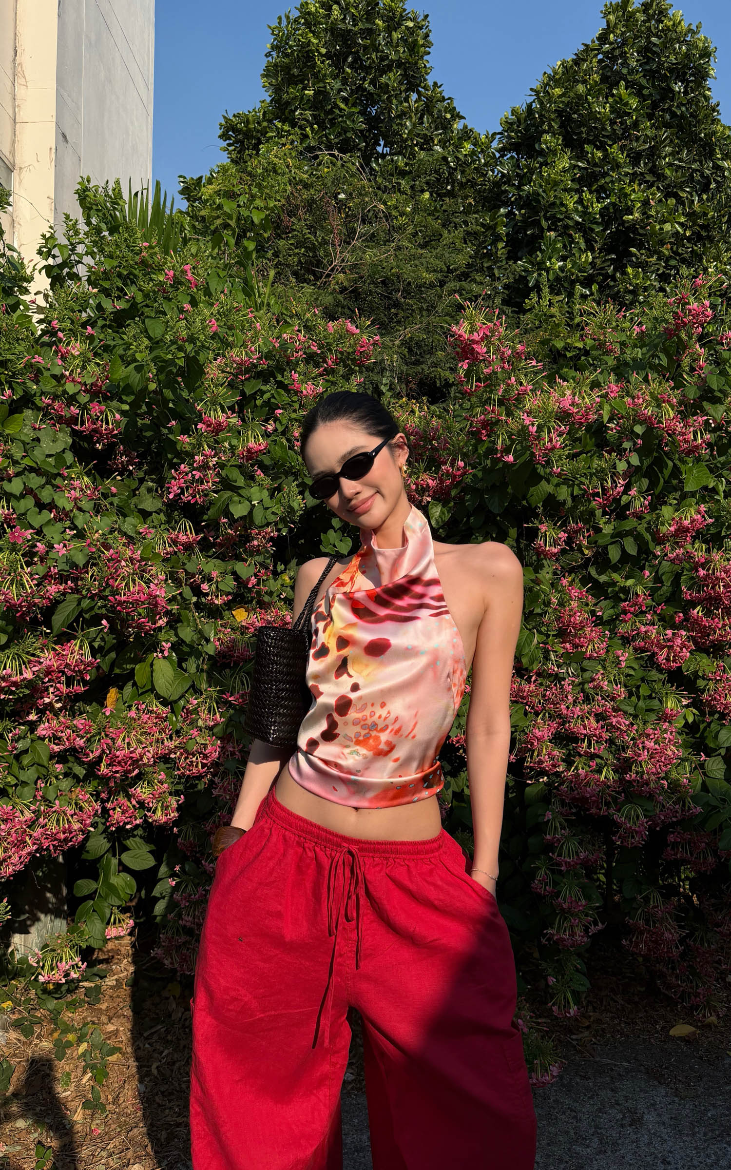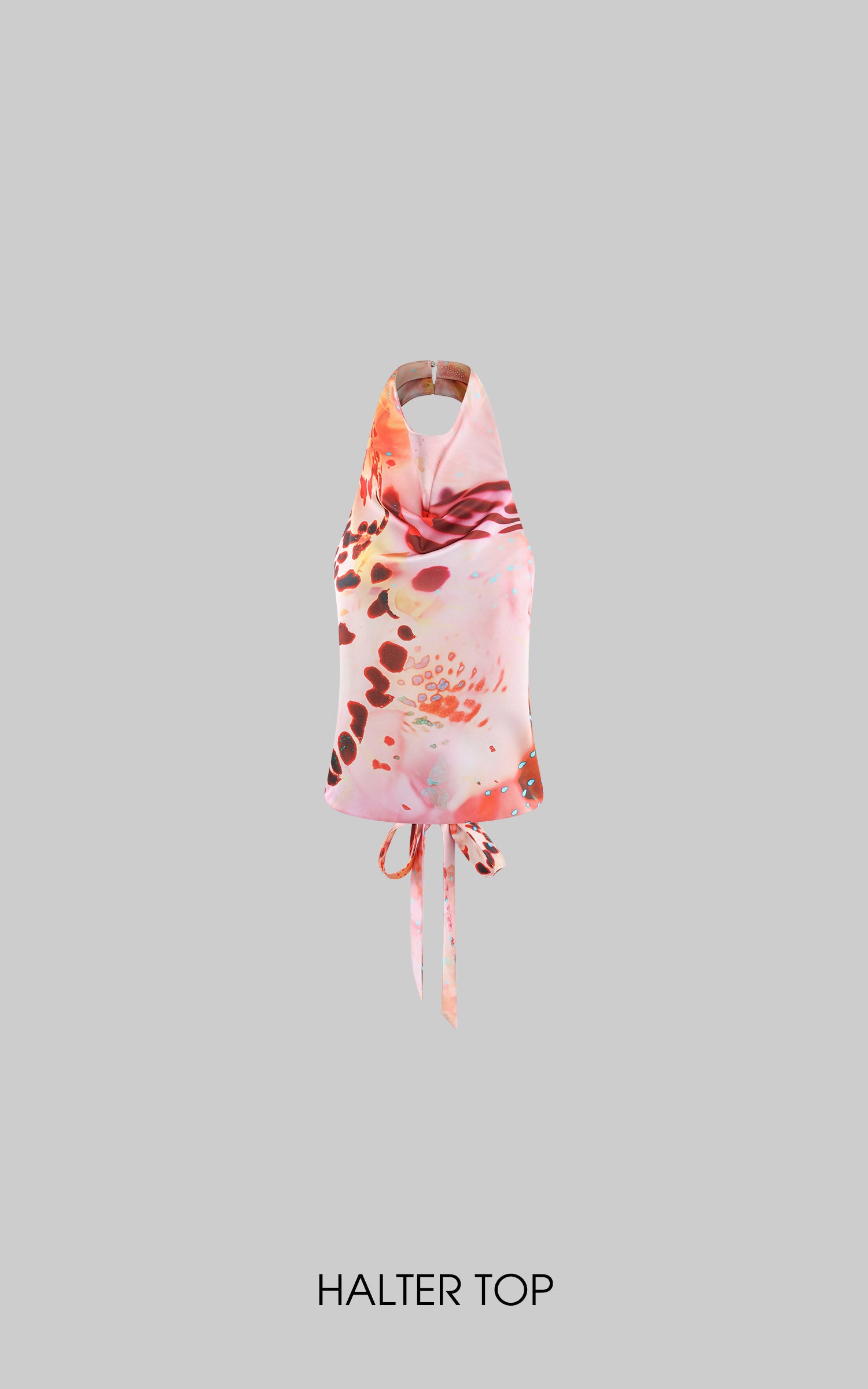 ROVENTE Abstract Silk Halter Tie-Back Top