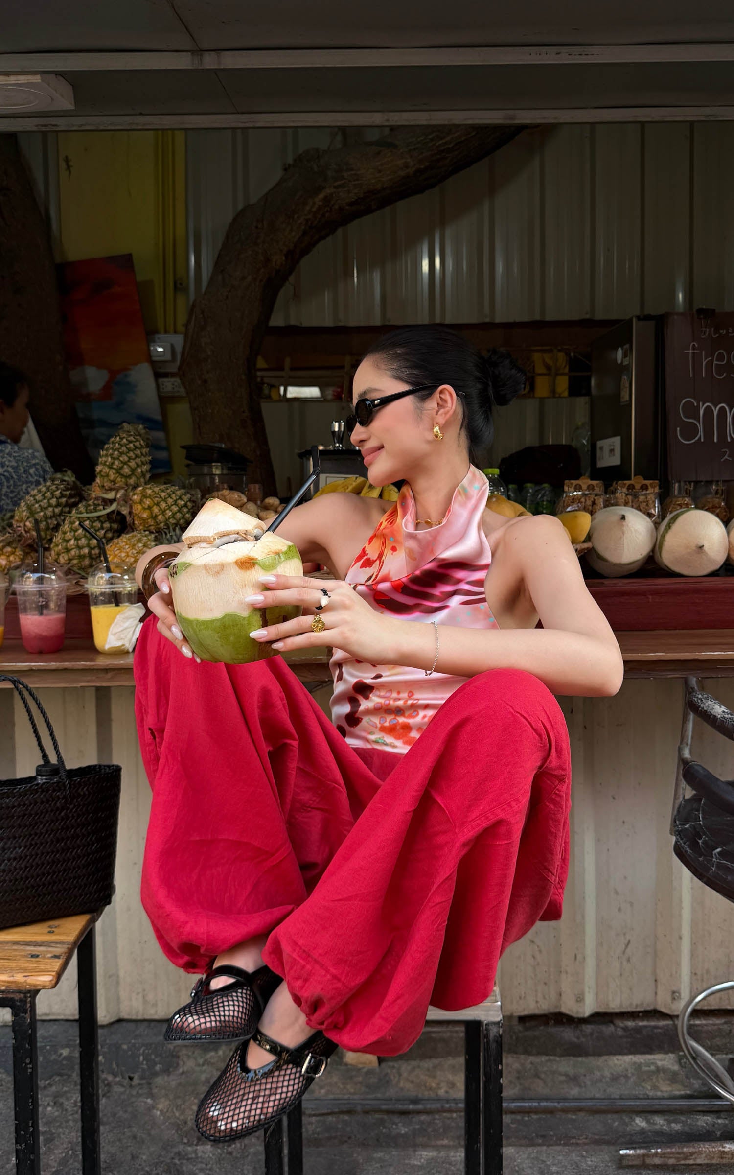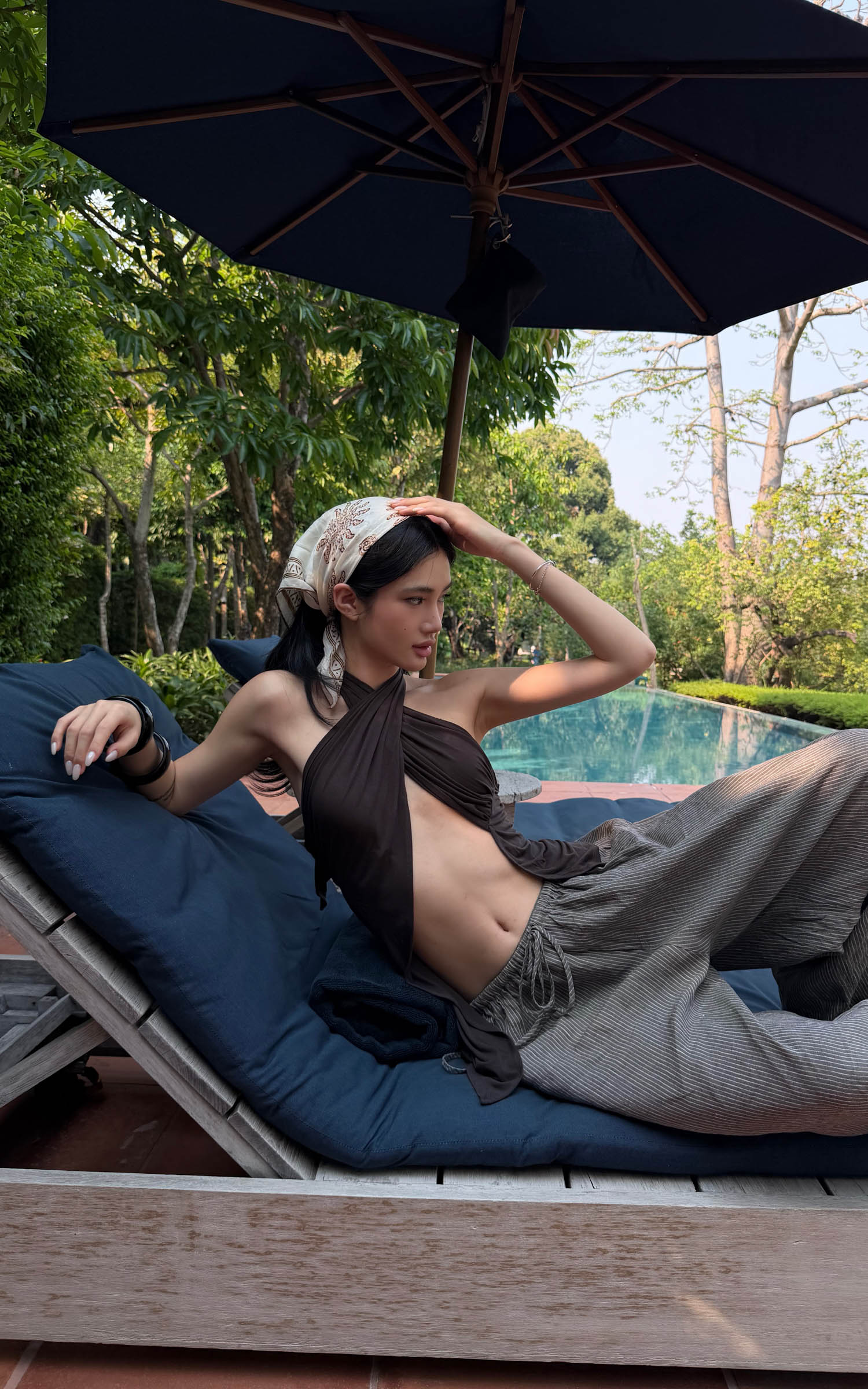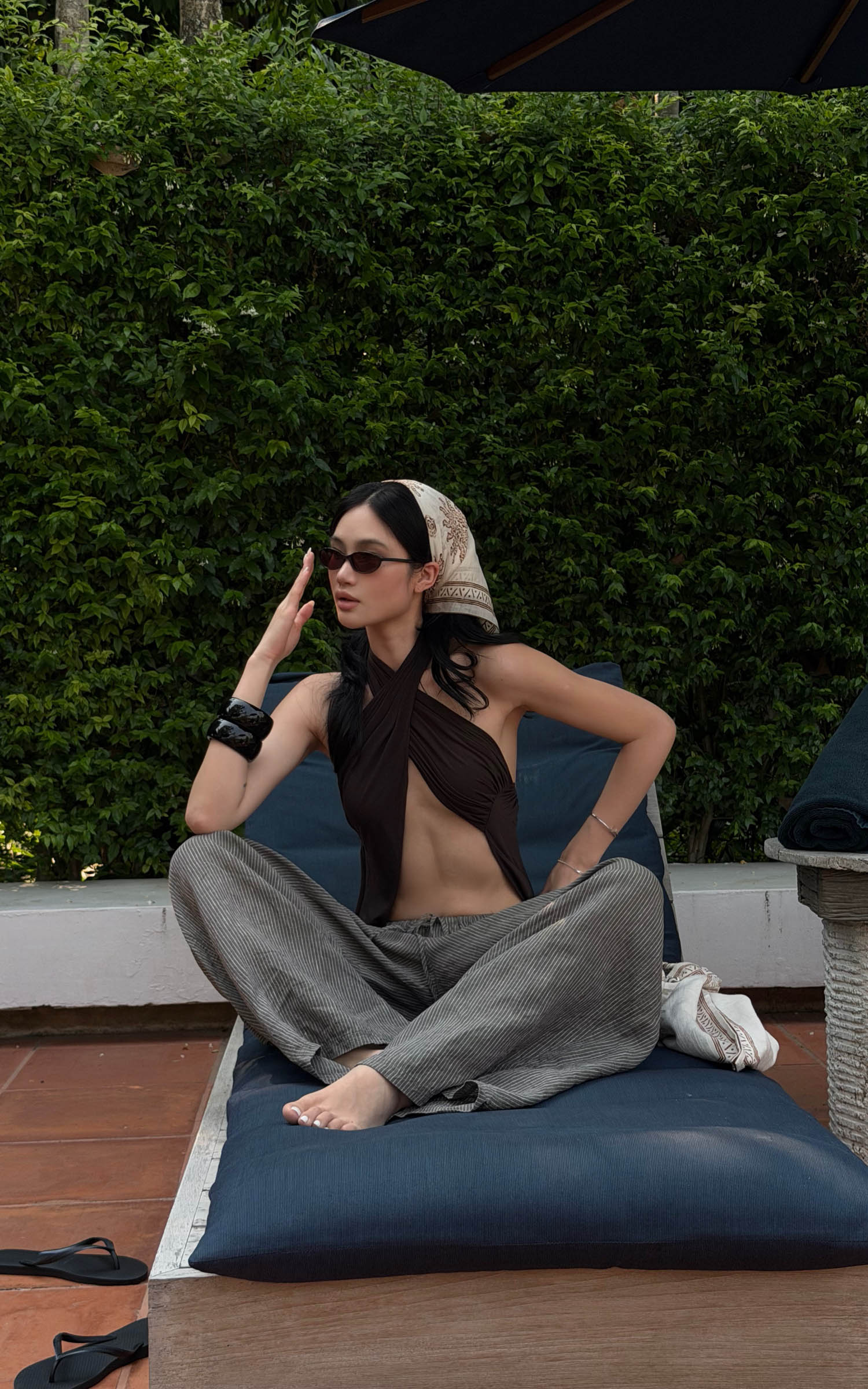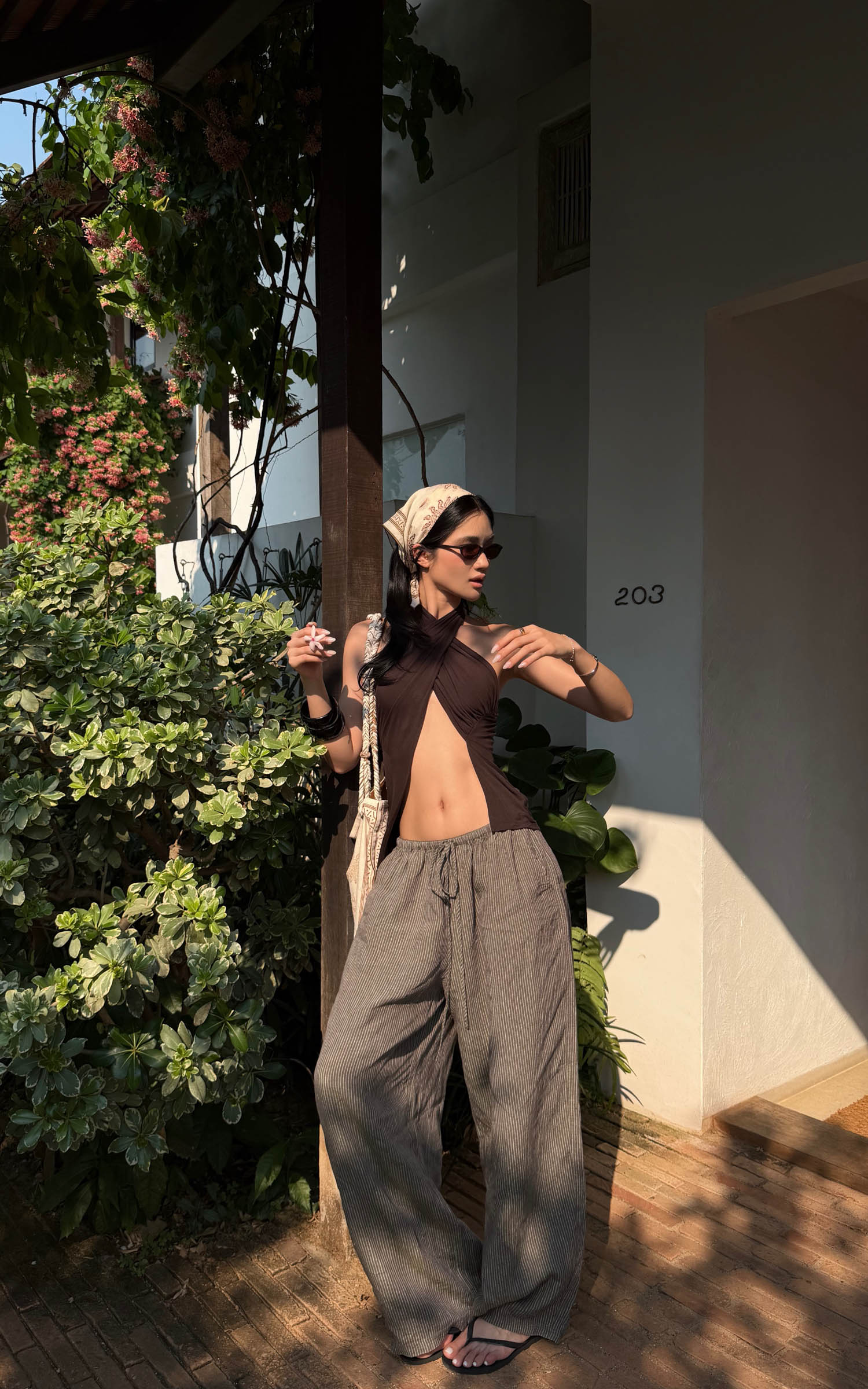 ROVENTE Abstract Silk Halter Tie-Back Top
