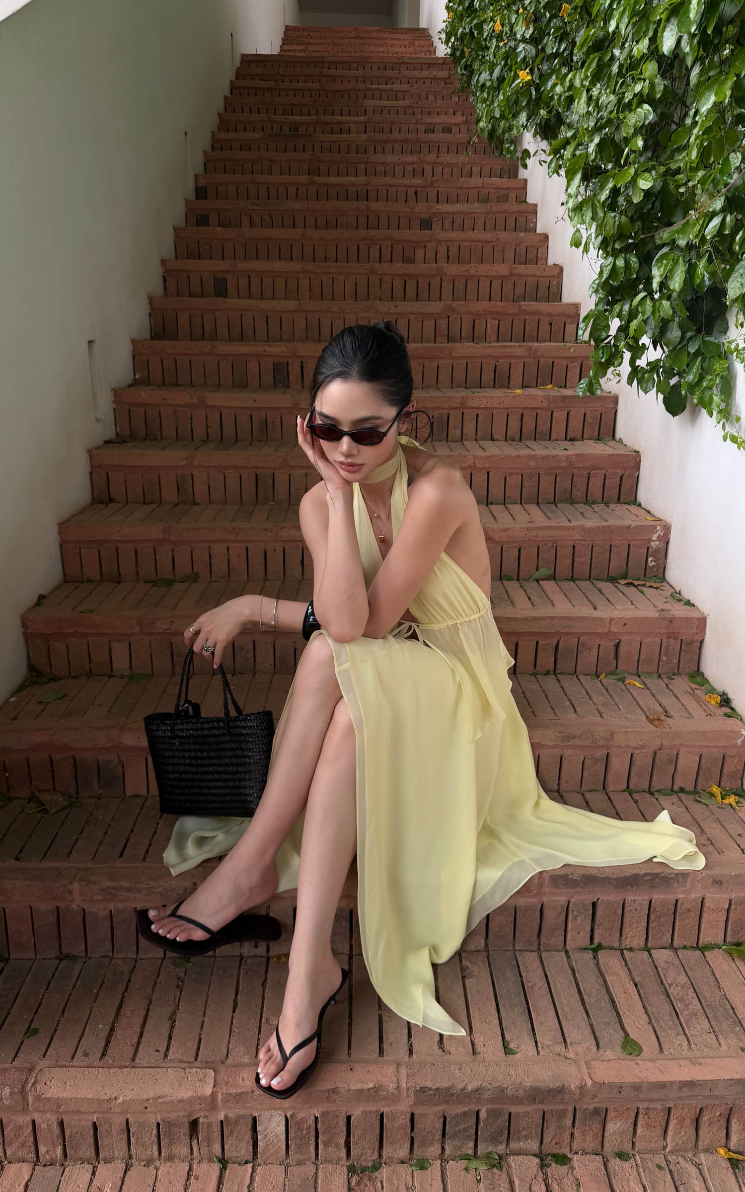 ROVENTE Sheer Halter Top & Asymmetric Chiffon Skirt Set