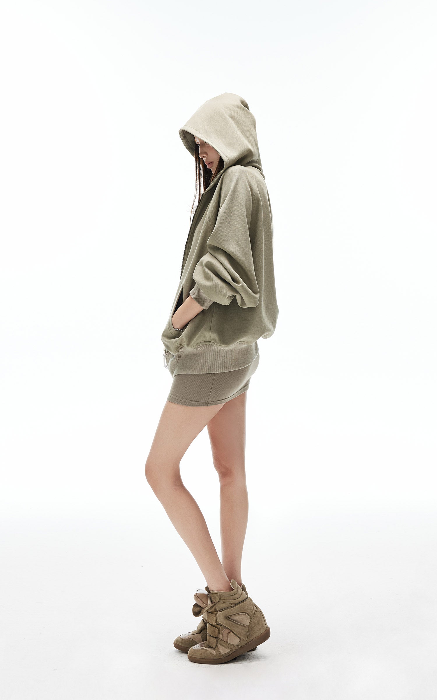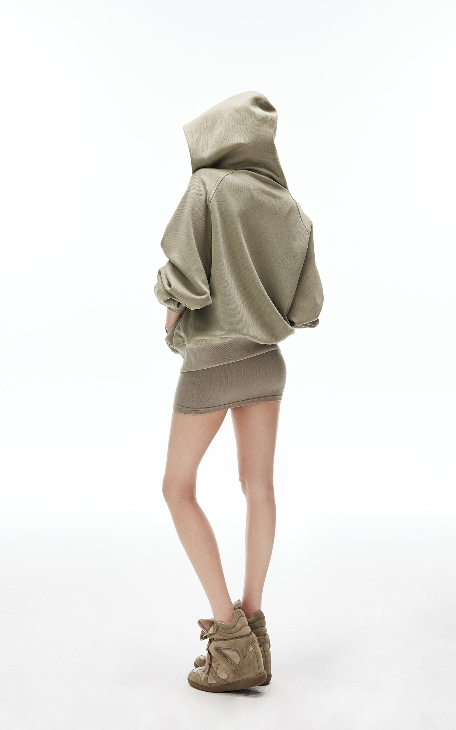 Rase le sol Pointed Hoodie Fitted Zip-Up Long Sleeve Top