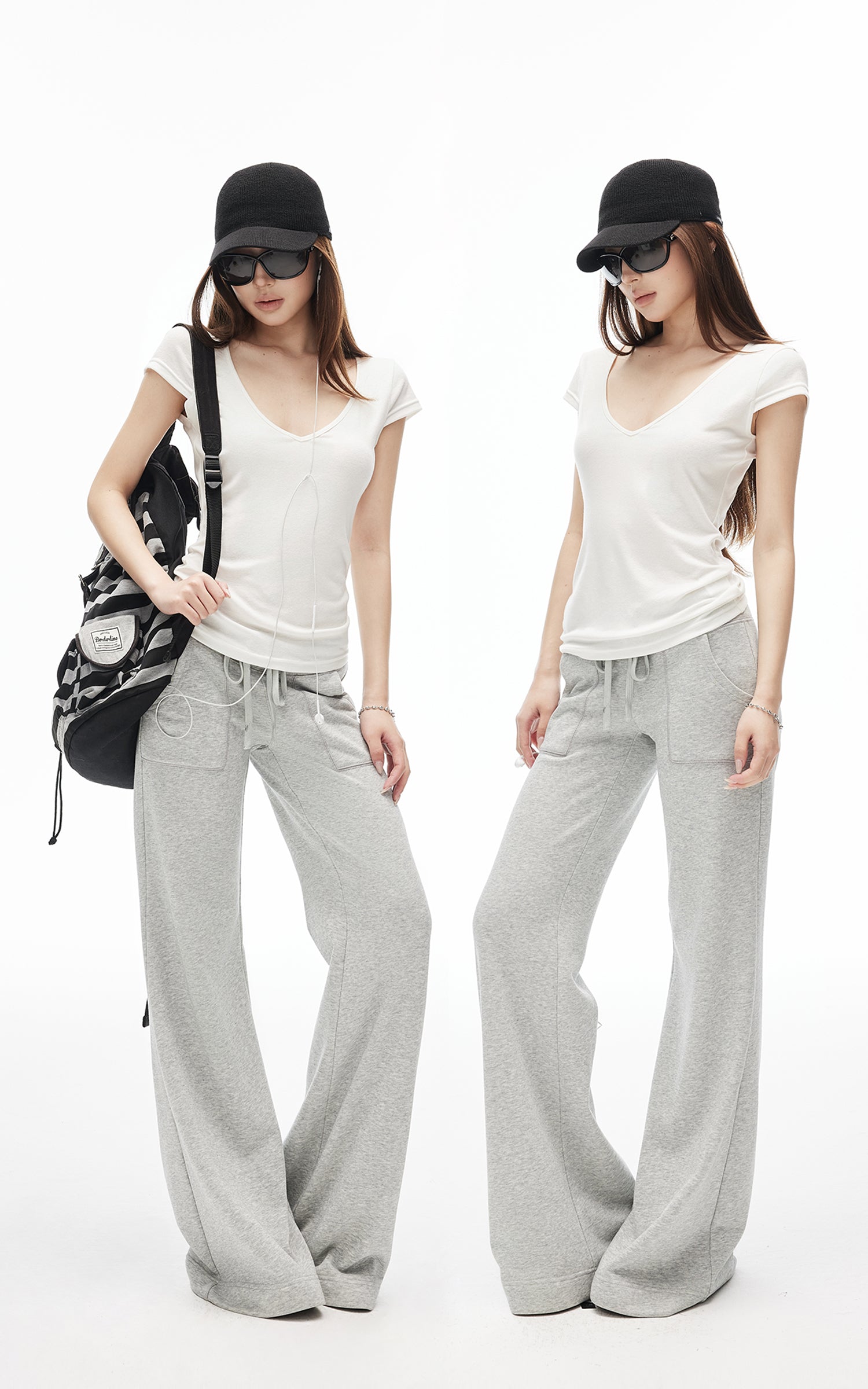 IAMXIAA Low-Rise Drawstring Wide Leg Sweatpants
