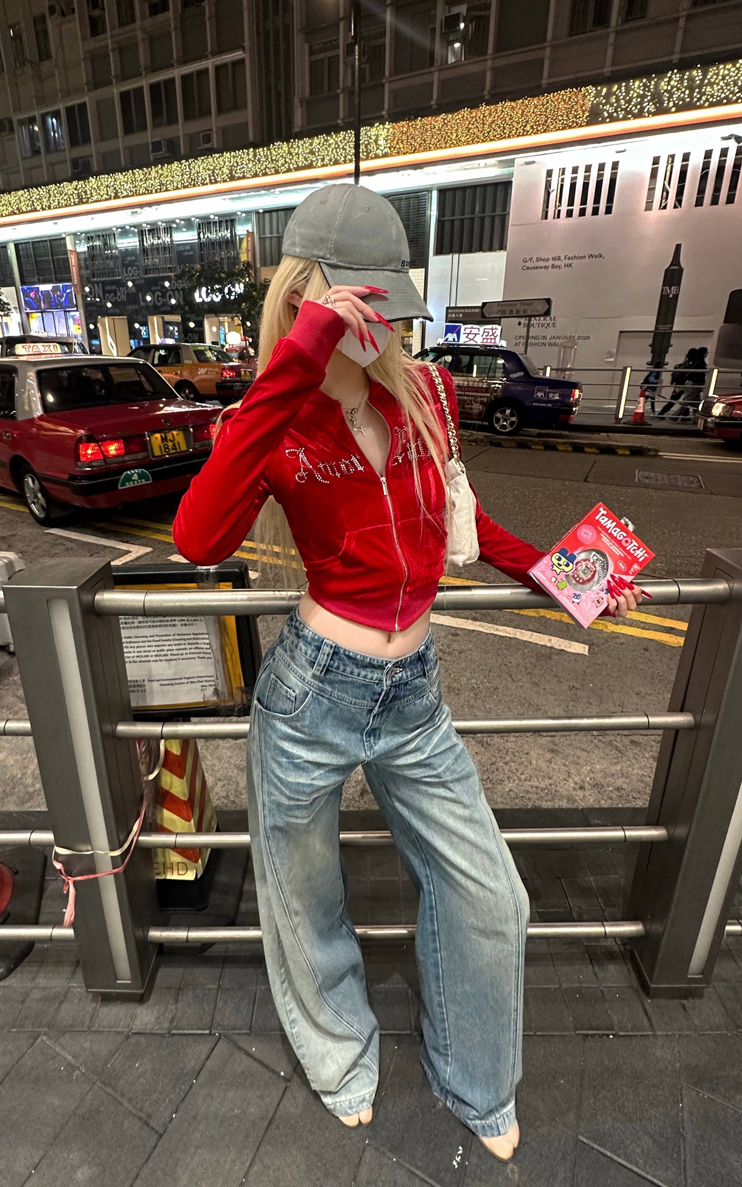 Rase le sol Velvet Zip-Up Jacket with Rhinestone Gothic Lettering