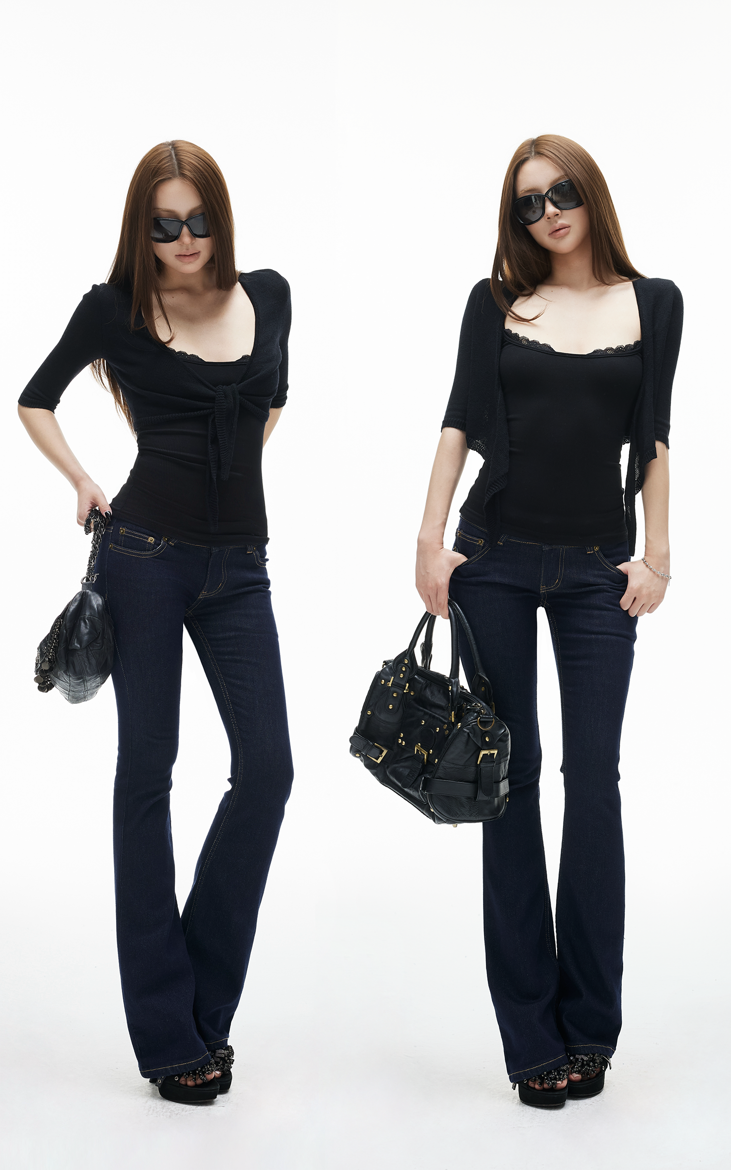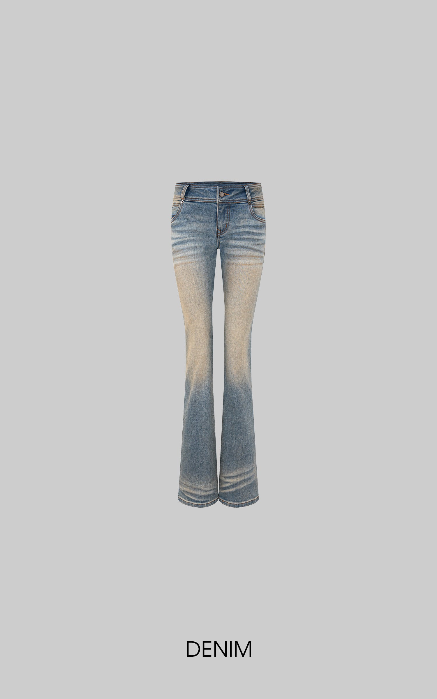 IAMXIAA Low Rise Vintage Wash Flare Jeans Pants