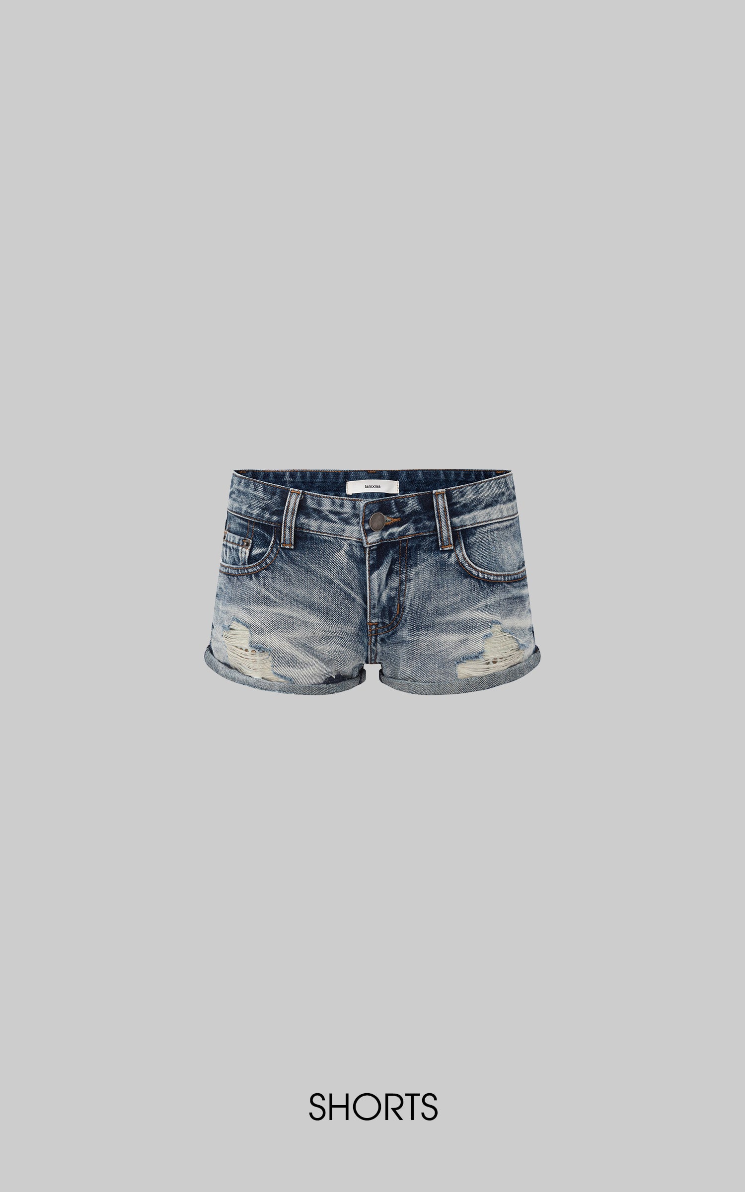 IAMXIAA Low Rise Distressed Denim Micro Shorts