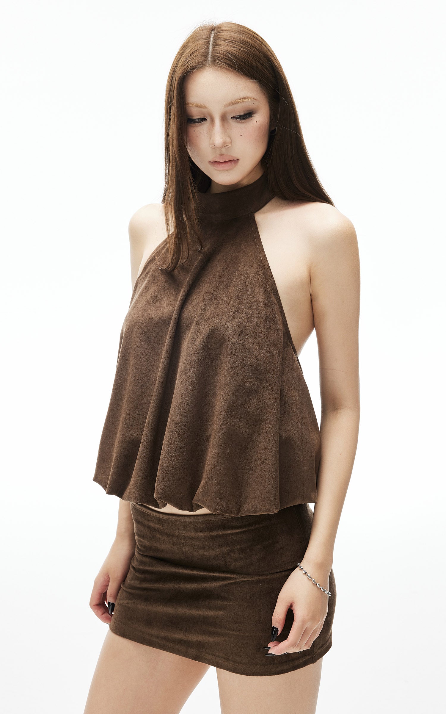IAMXIAA Vintage Suede Look Halter Top & Mini Skirt Set