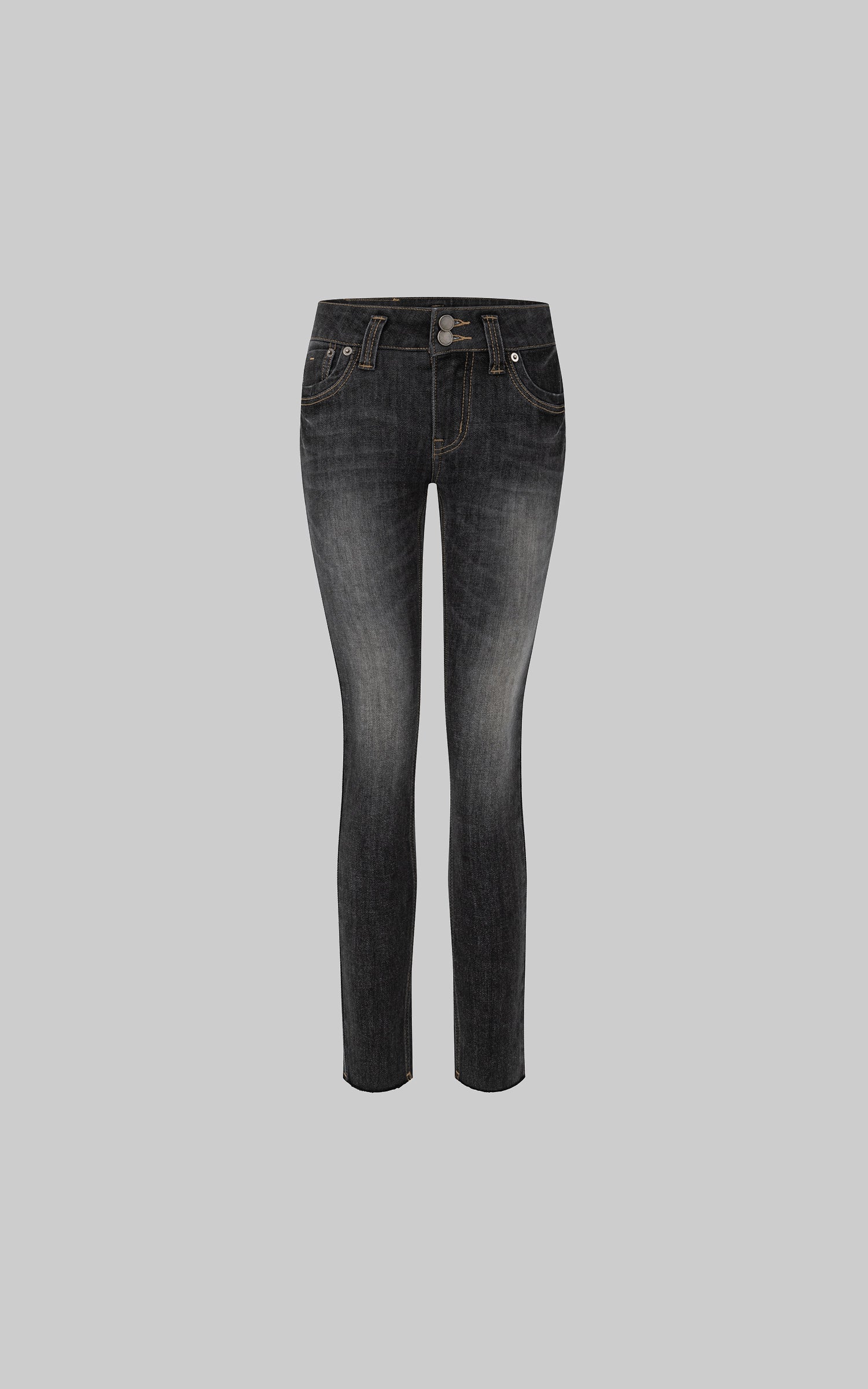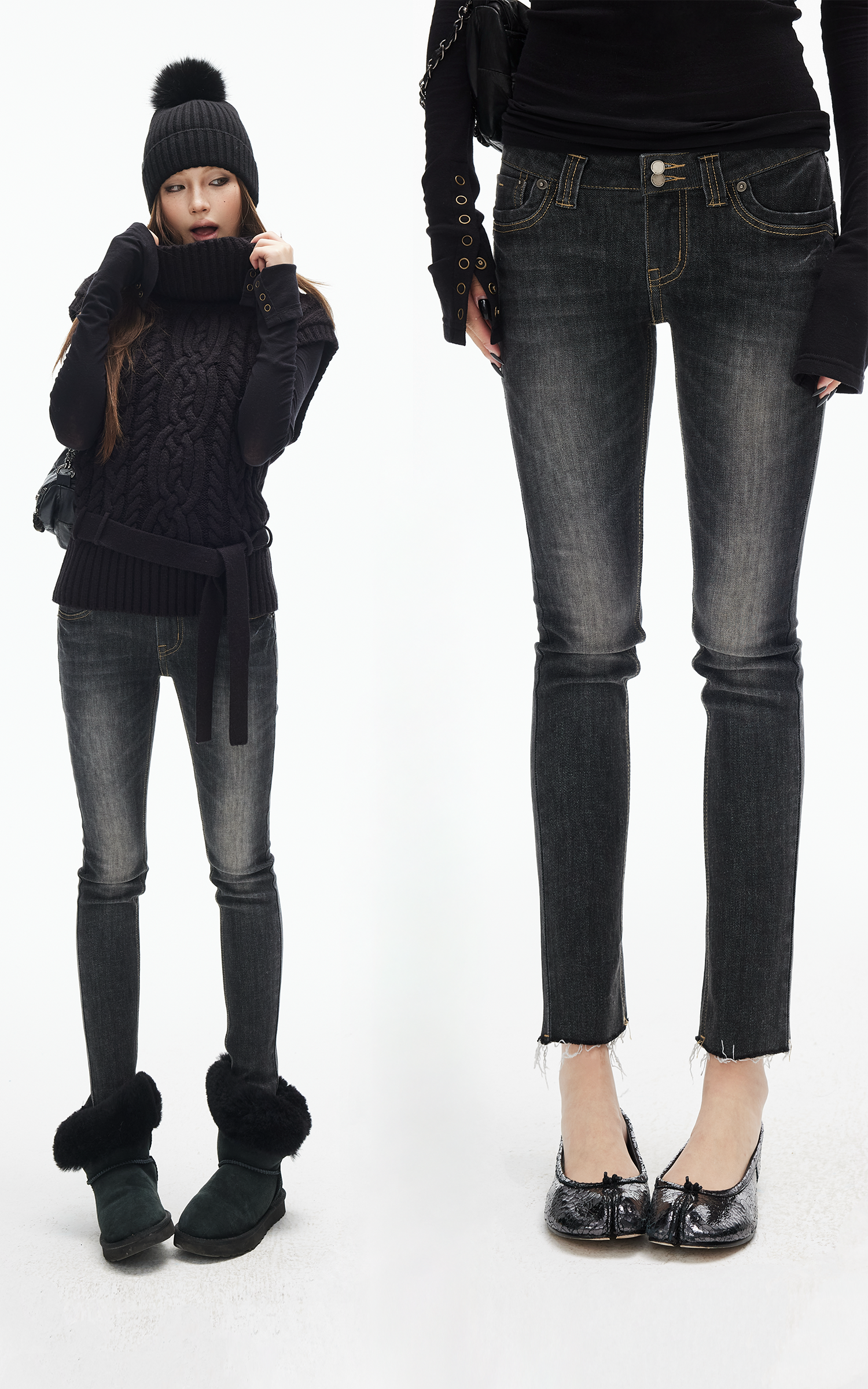 IAMXIAA Vintage Washed Skinny Jeans with Raw Hem and Contrast Stitch