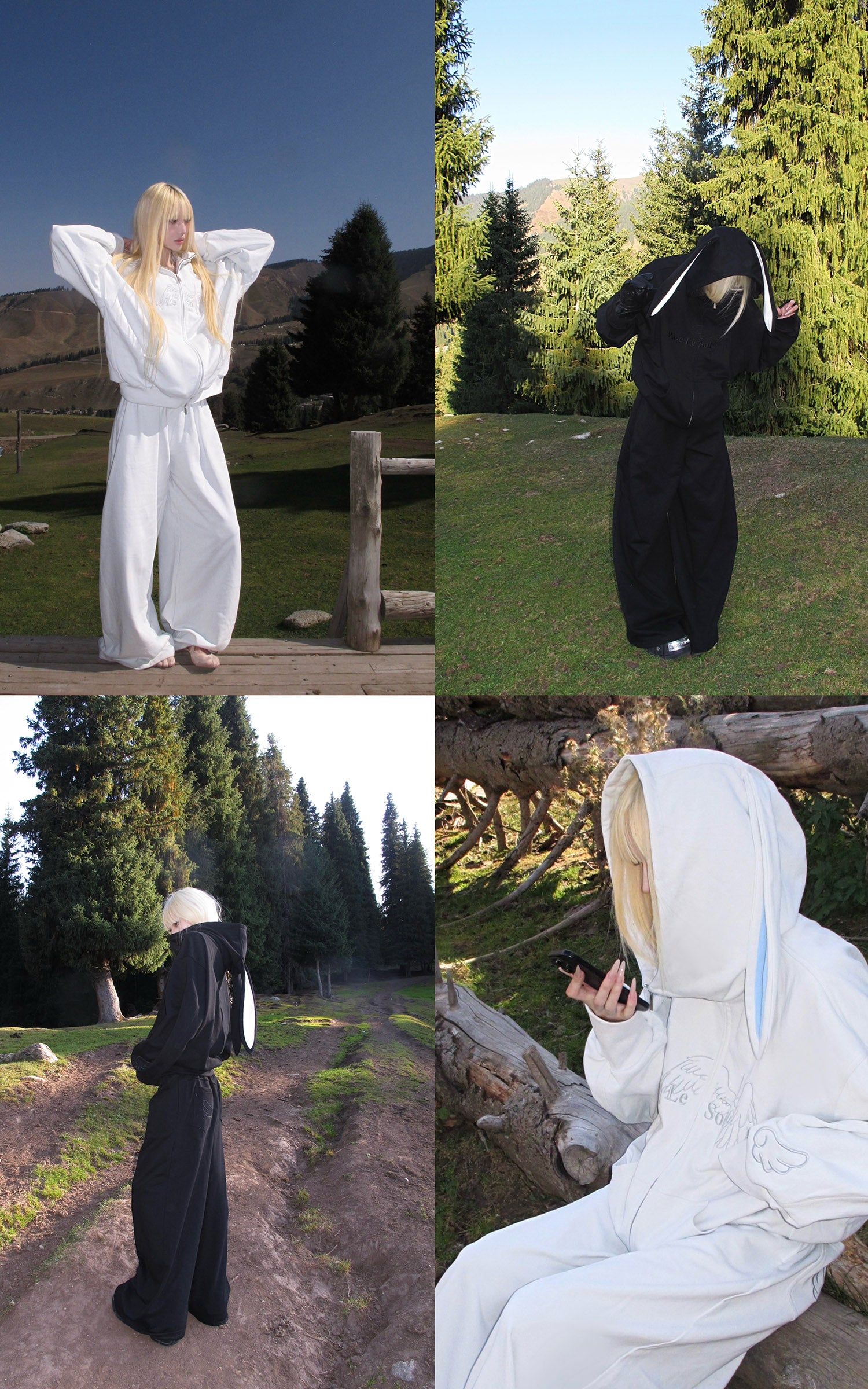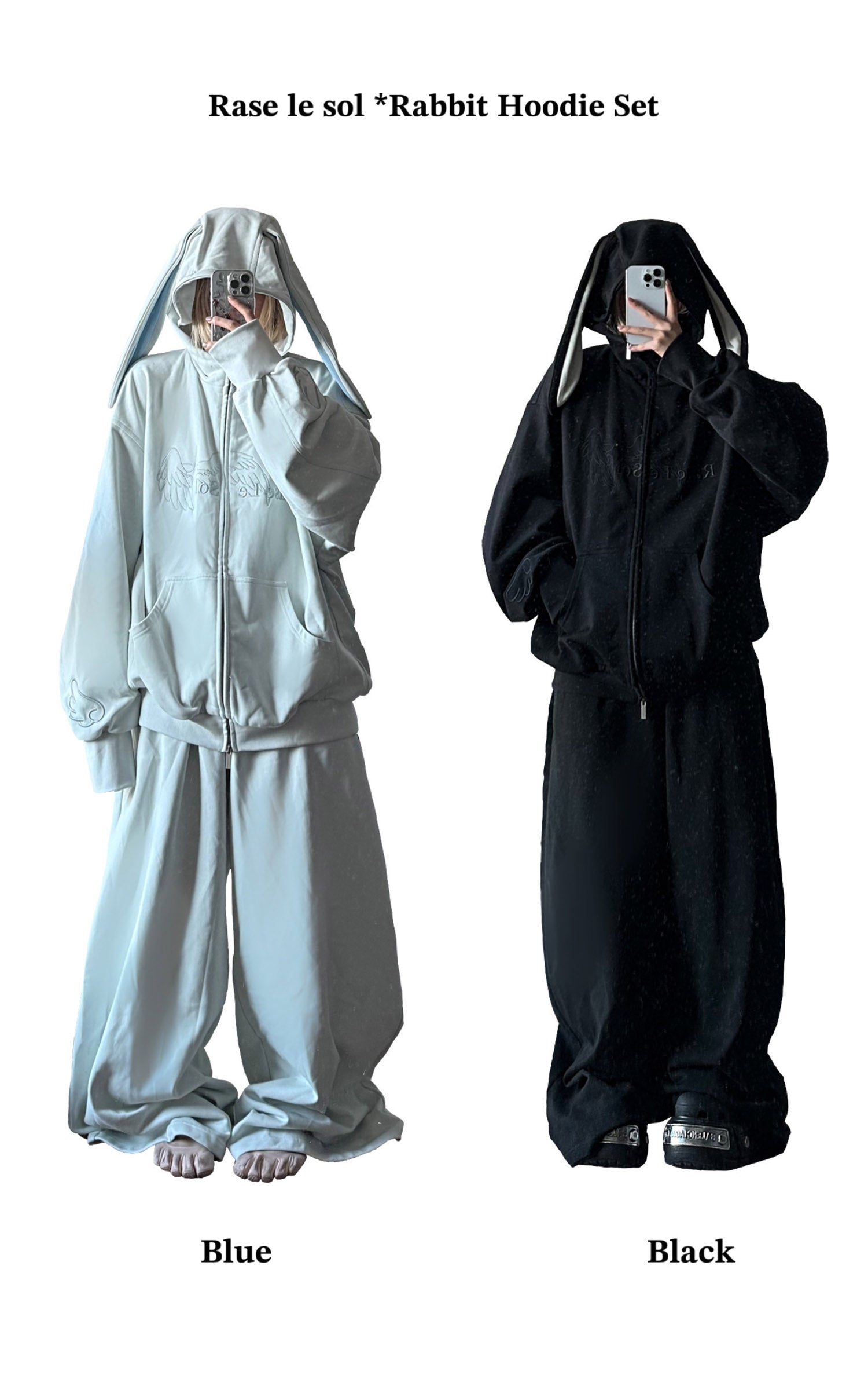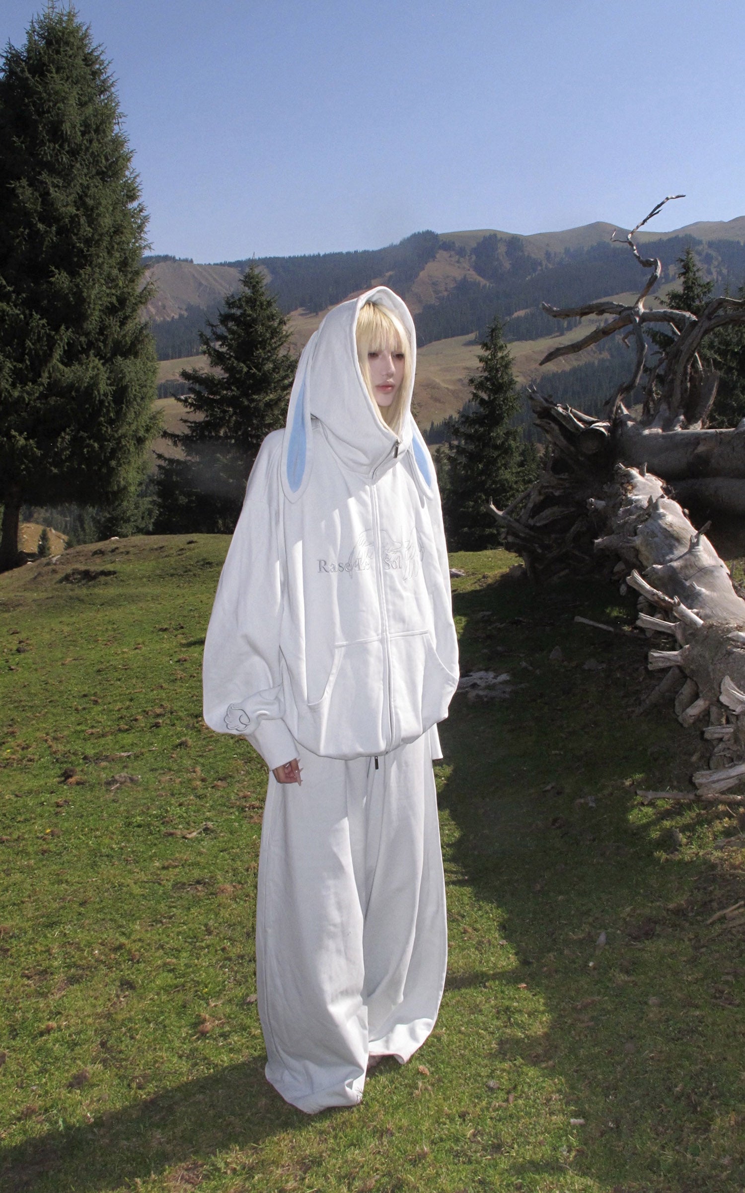 Rase le sol Bunny Ear Hoodie and Wide-Leg Sweatpants Set