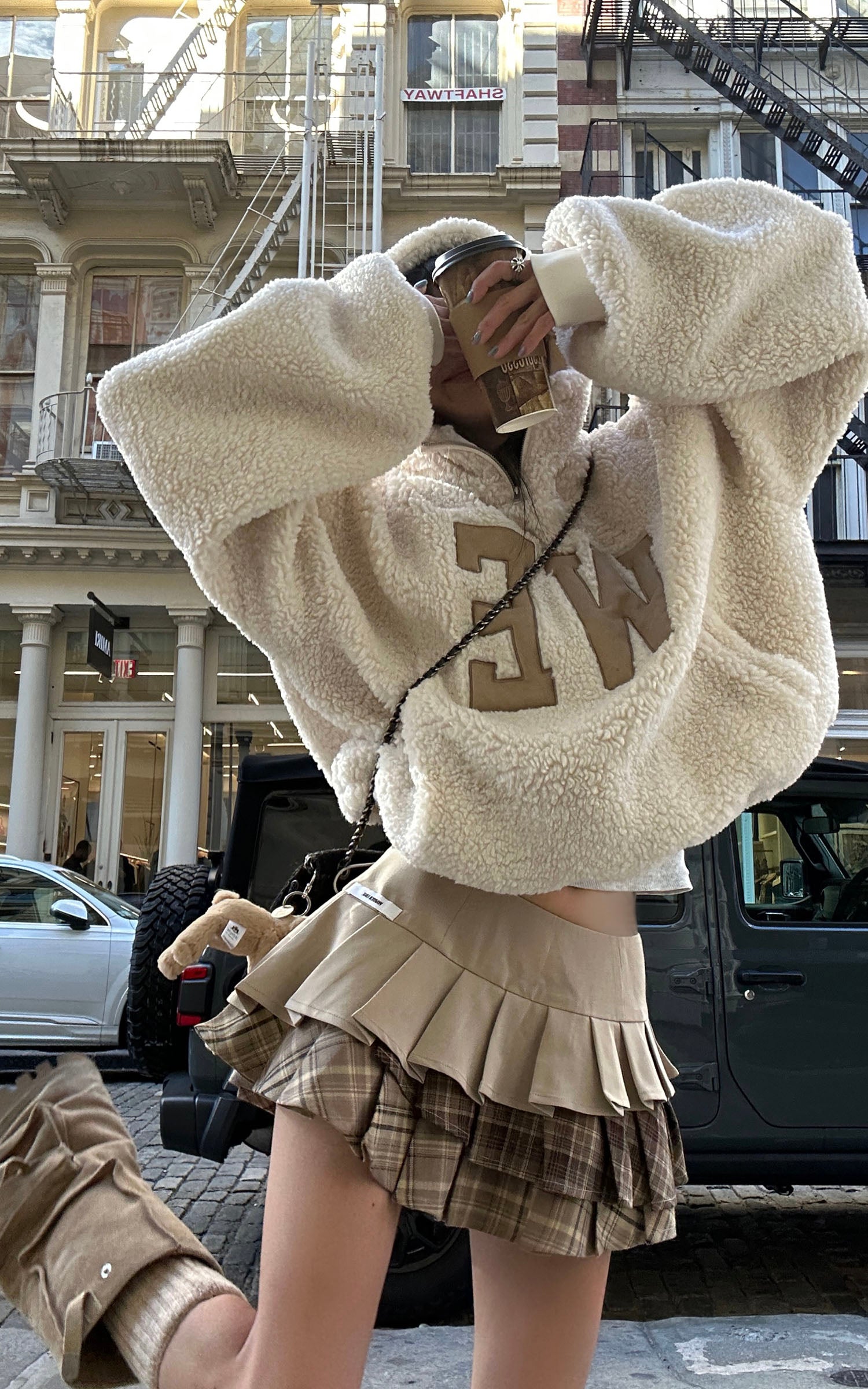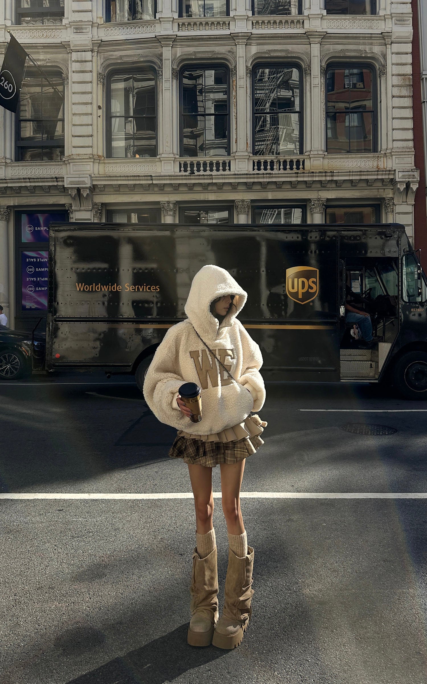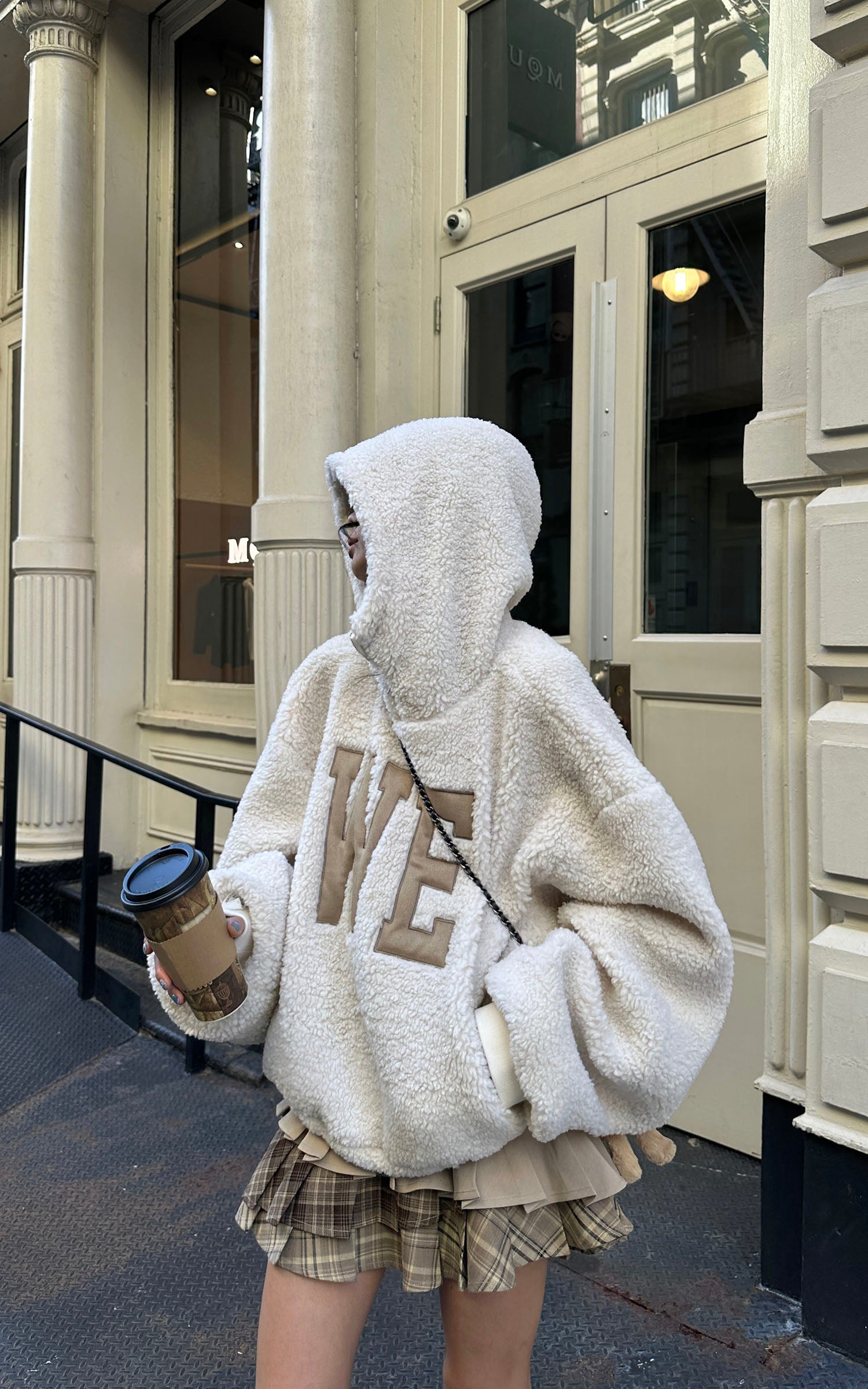 WARDEN EDGE Oversized Wool-like Fleece Hoodie with WE Letter Patch