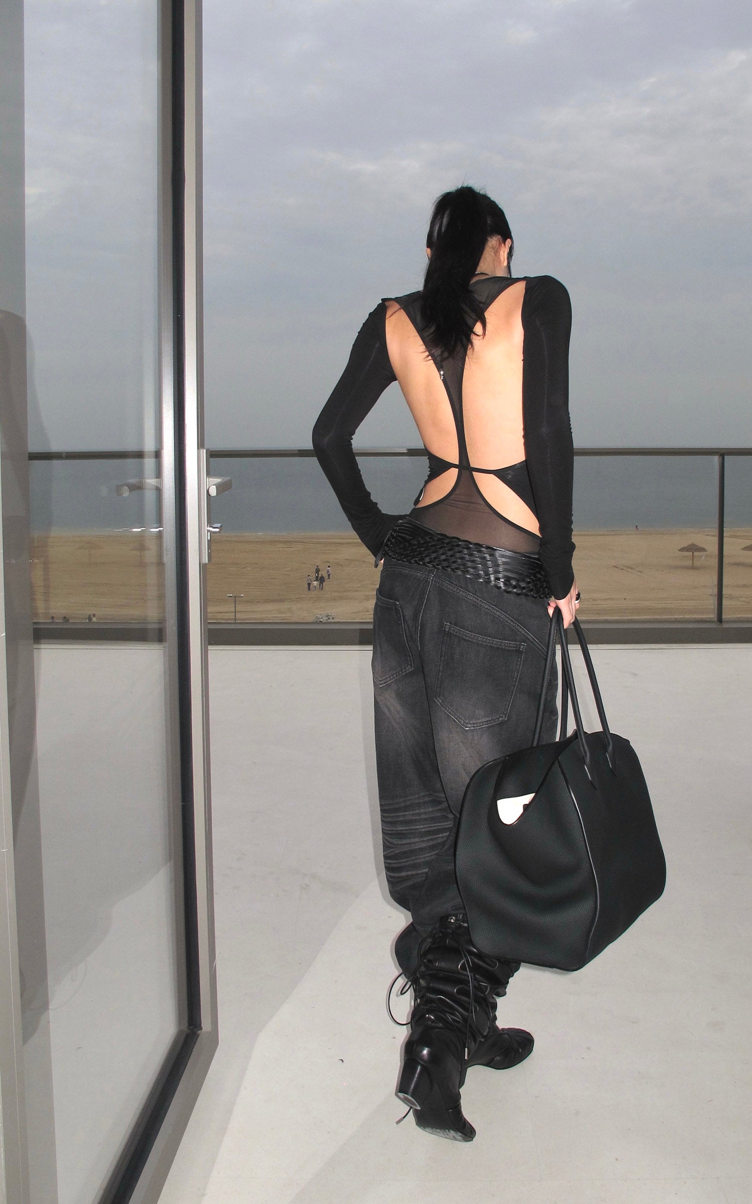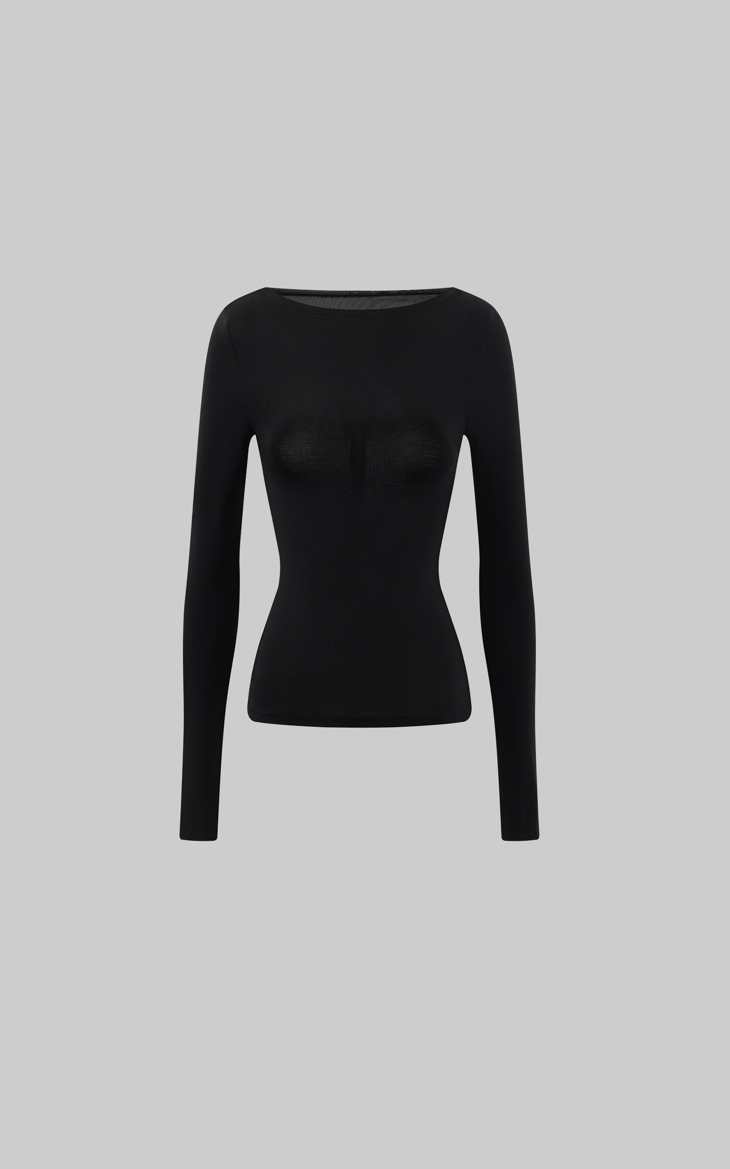 ROVENTE Backless Mesh Panel Long Sleeve Top