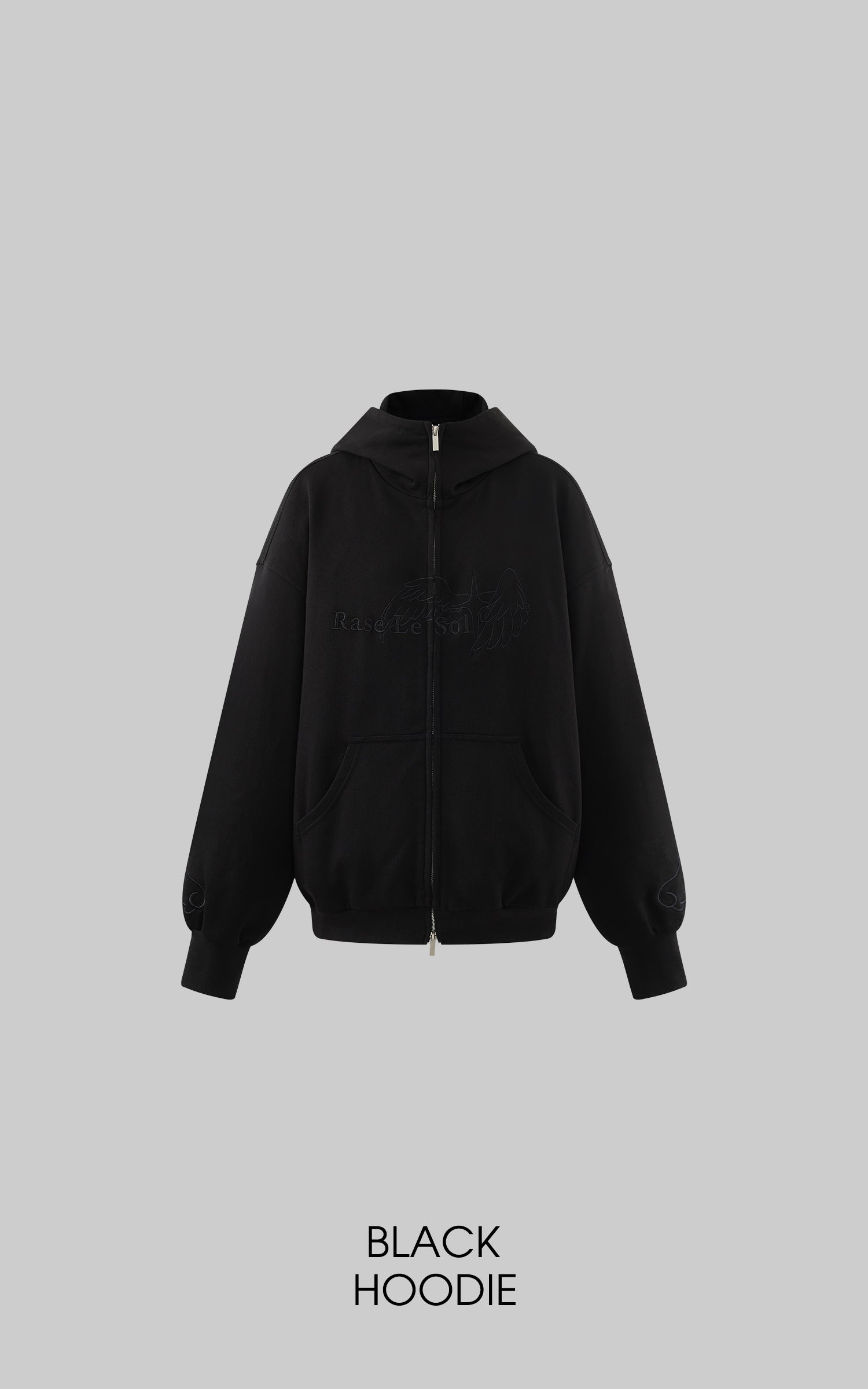 Rase le sol Wing Hoodie Black Fitted Cotton Long Sleeve Top