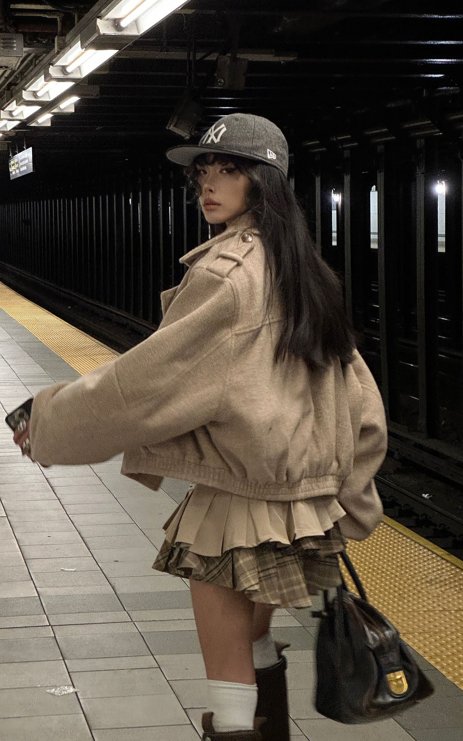 IAMXIAA Faux Leather Moto Jacket Cropped Fit with Zipper Details
