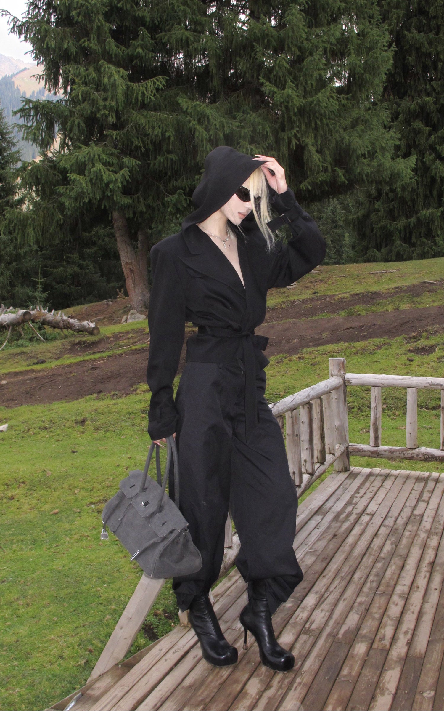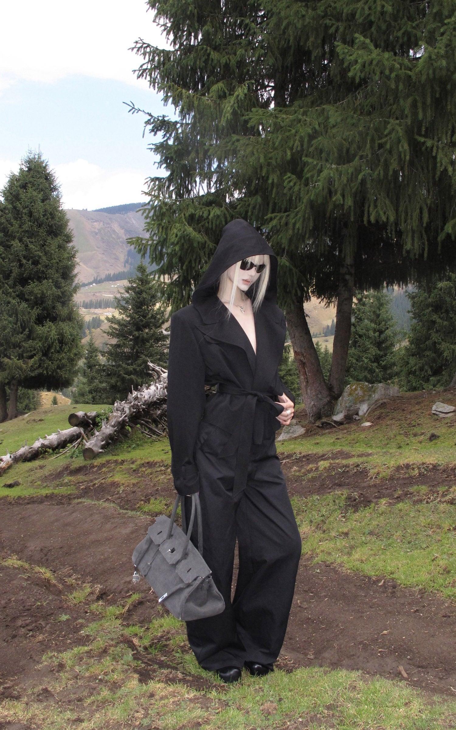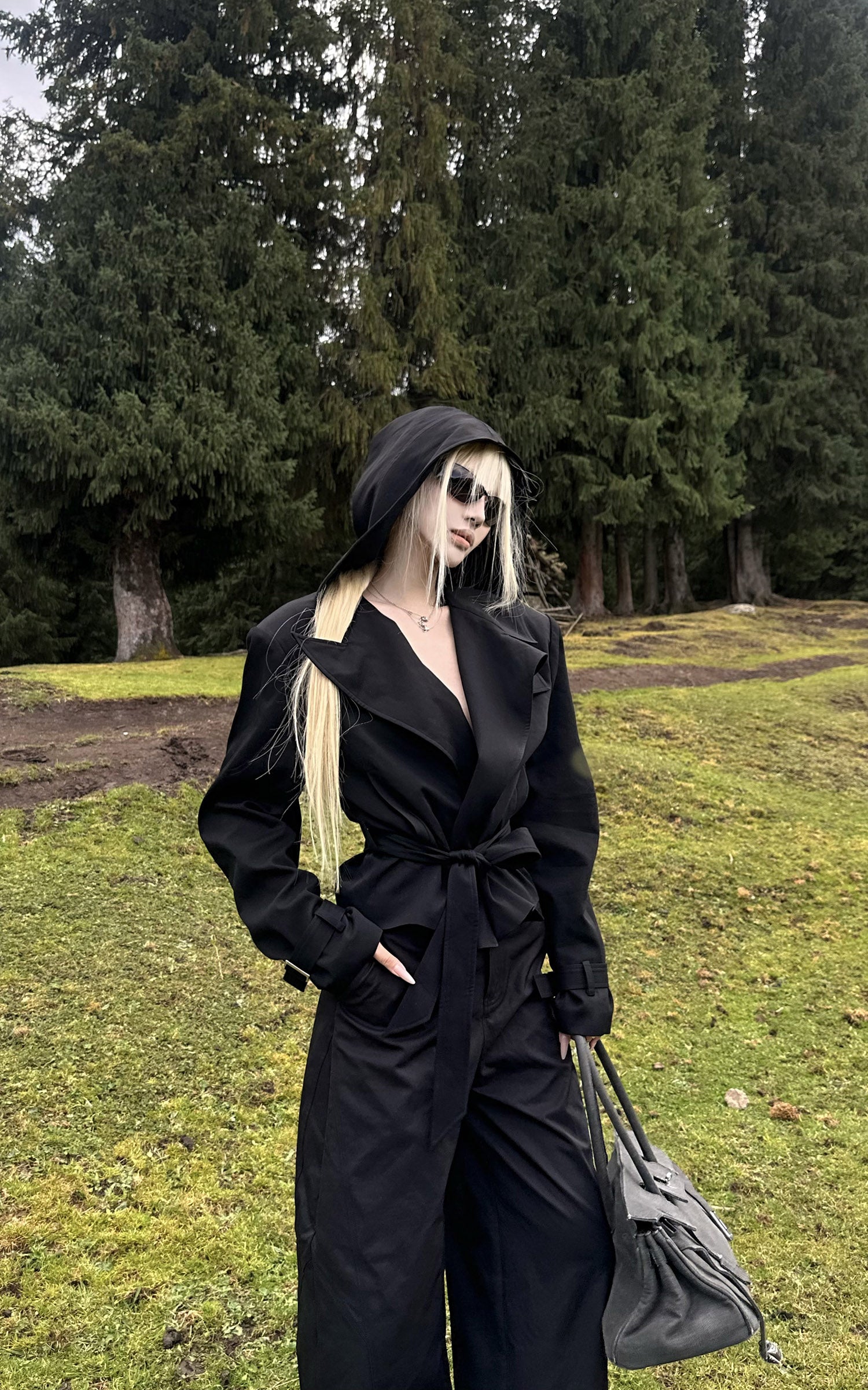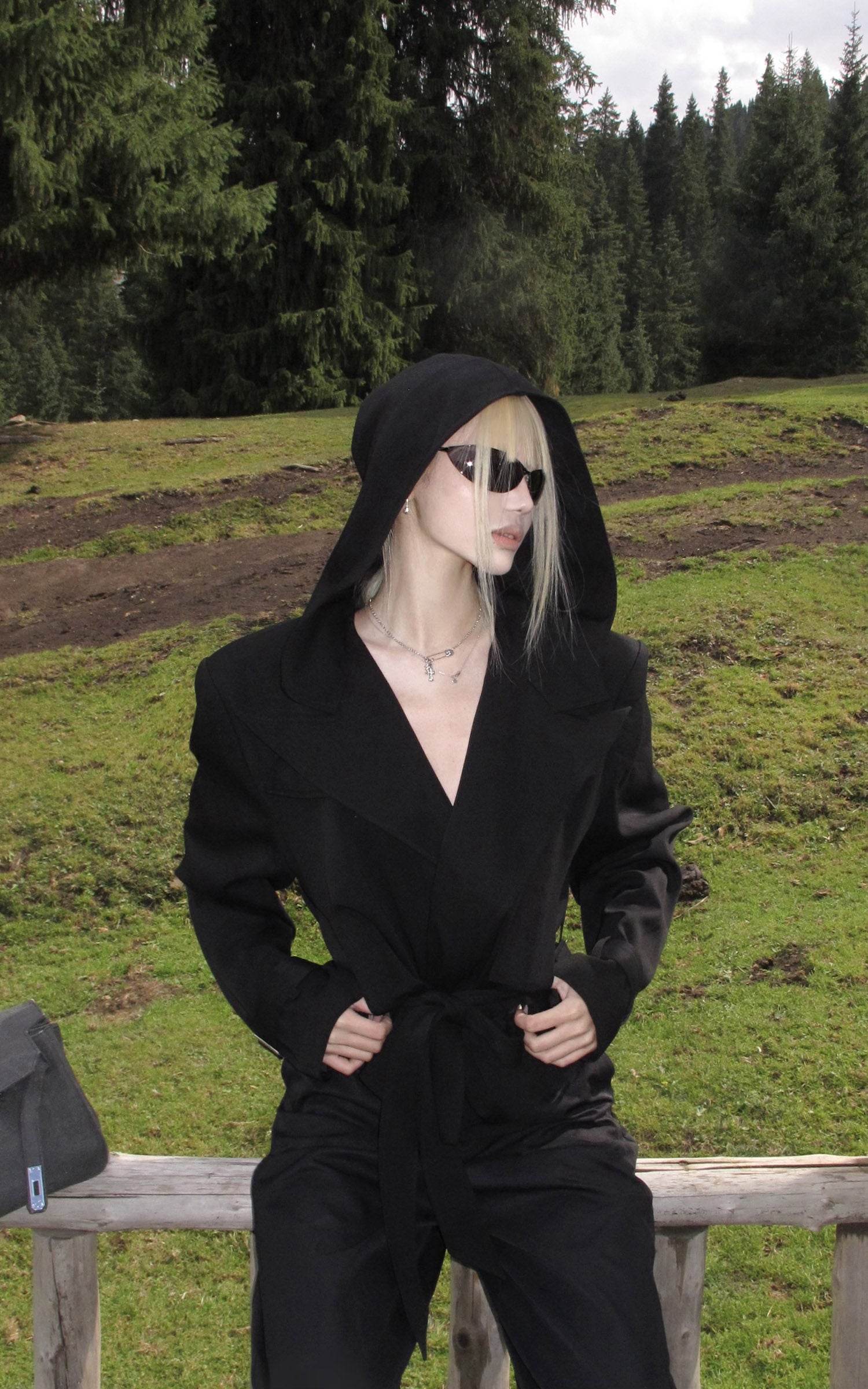 Rase le sol Structured Hooded Blazer and Wide Leg Trouser Set