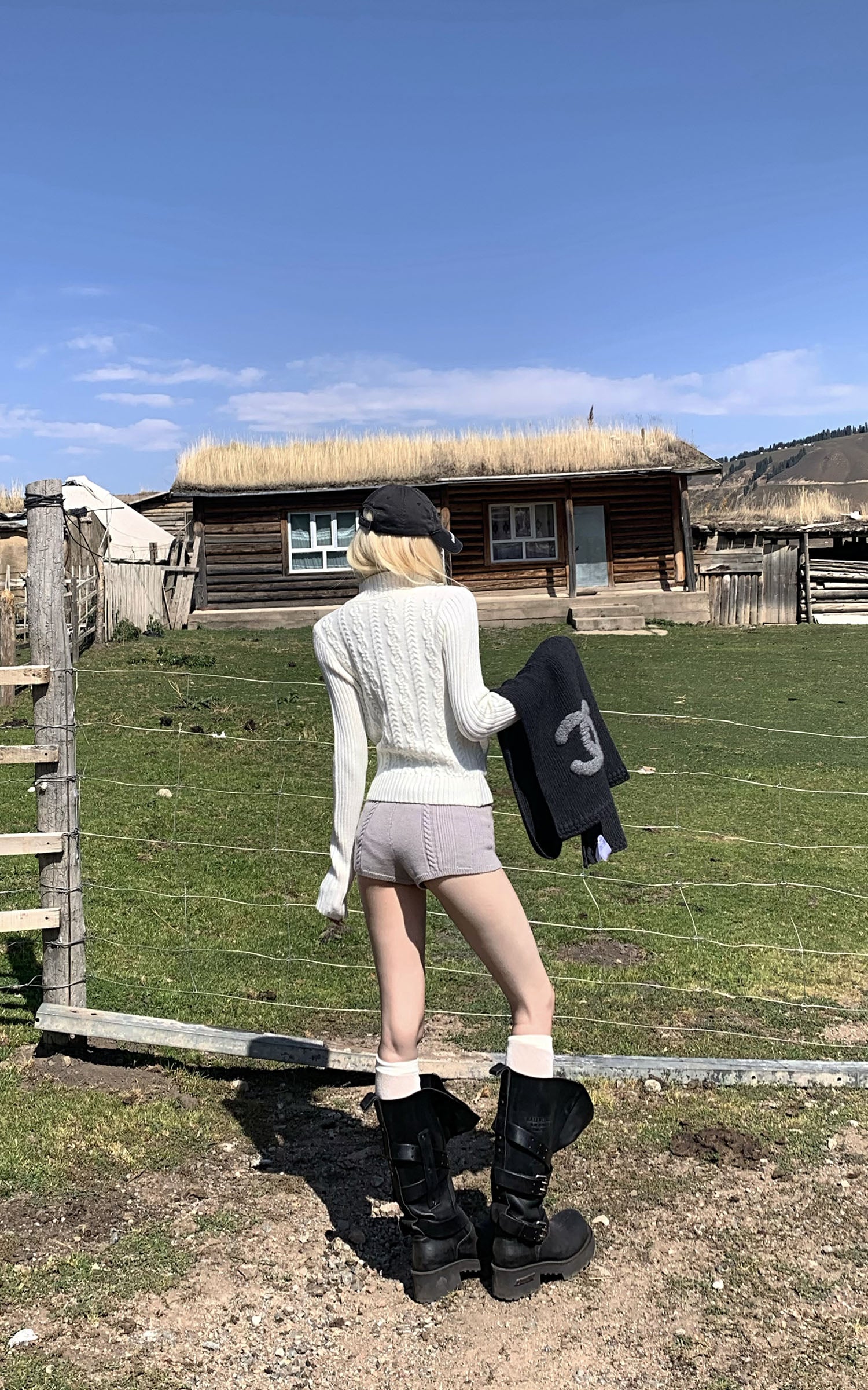 Rase le sol Cable-Texture High Waist Knit Shorts