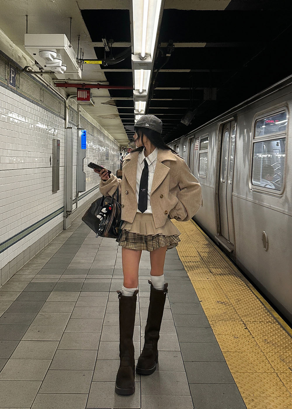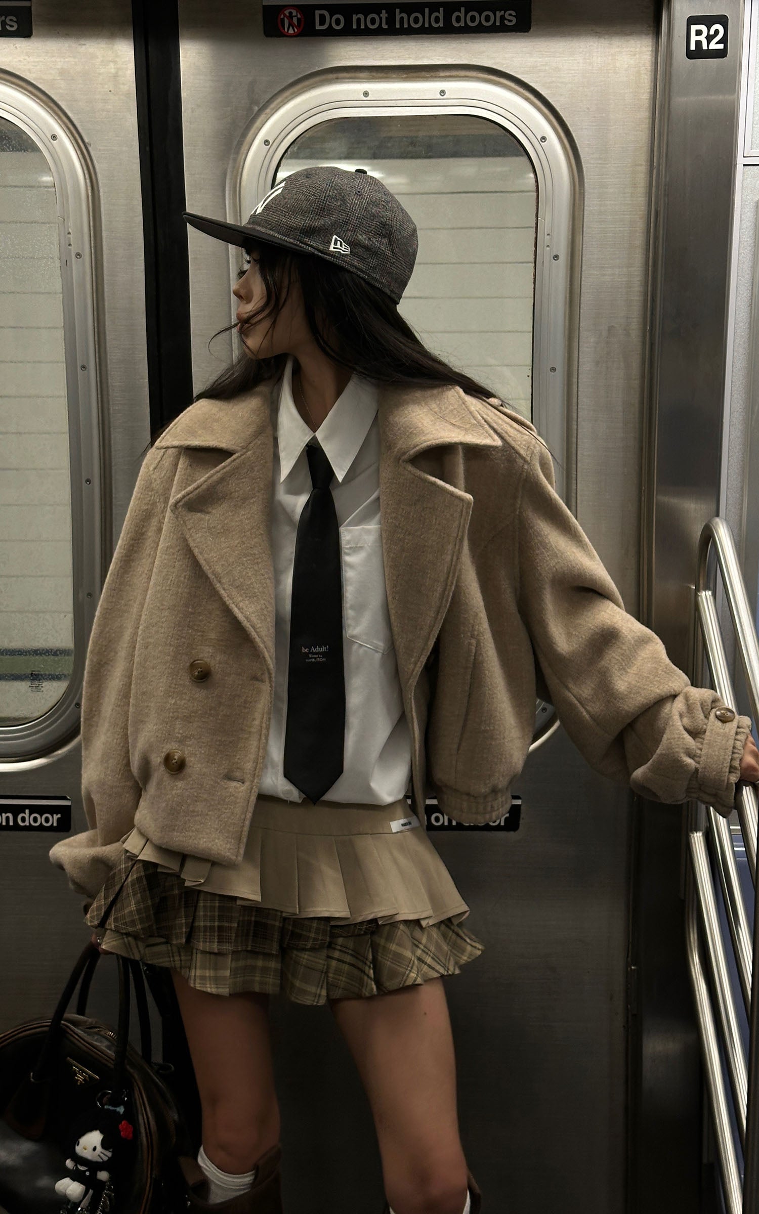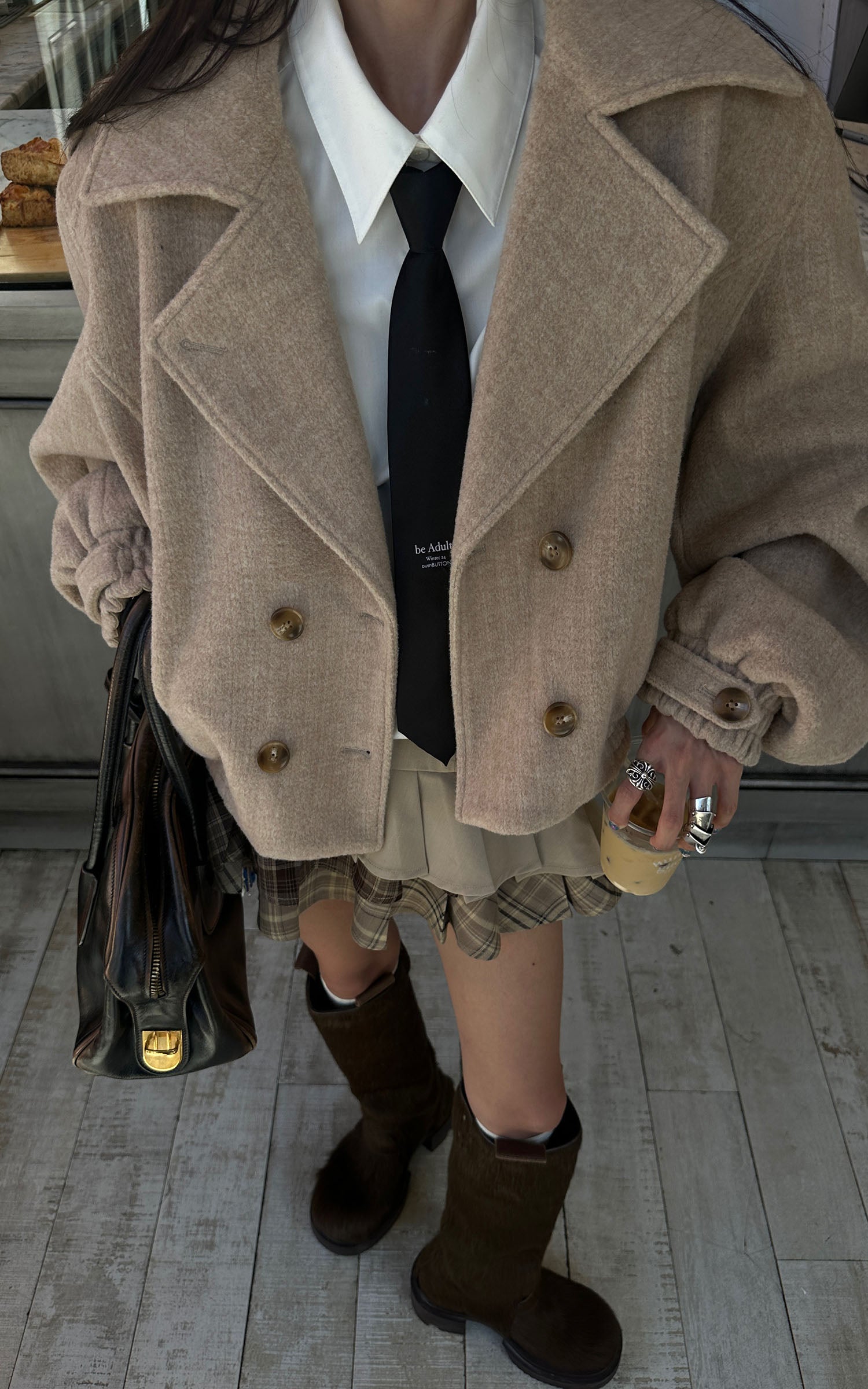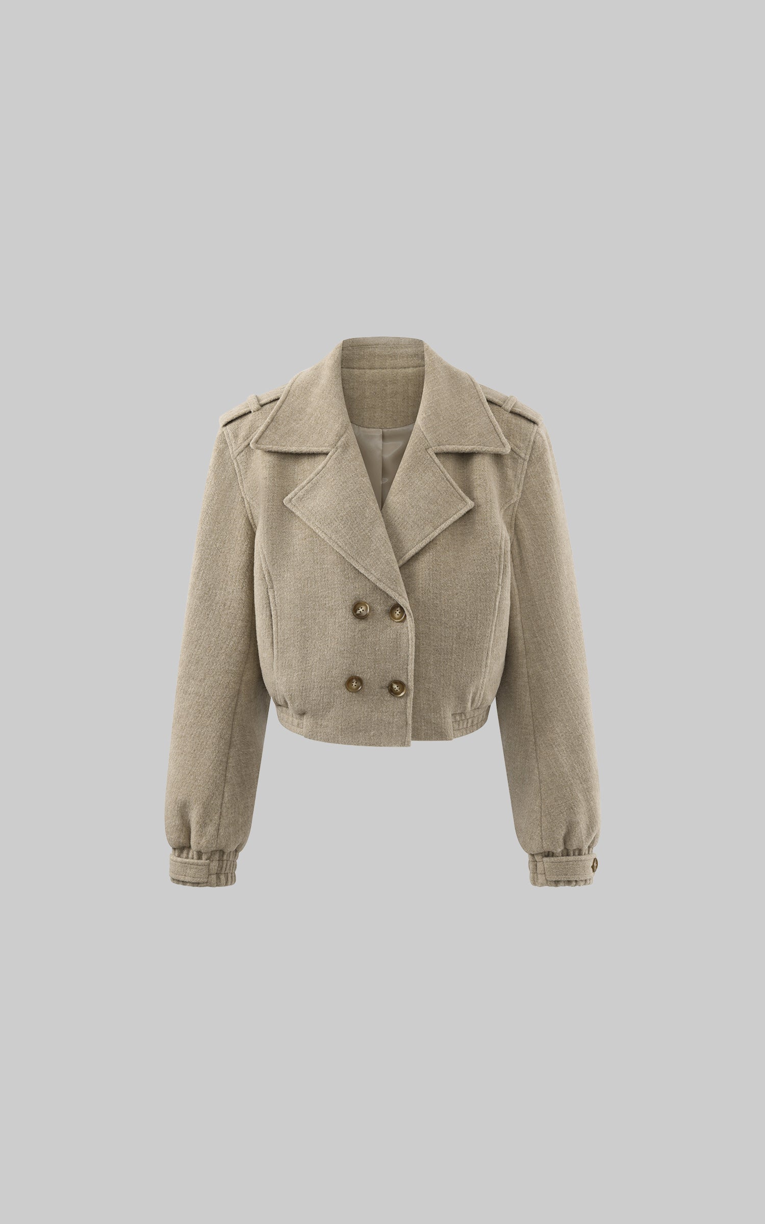 WARDEN EDGE Cropped Wool-Like Coat with Double Breasted Design and Structured Lapel