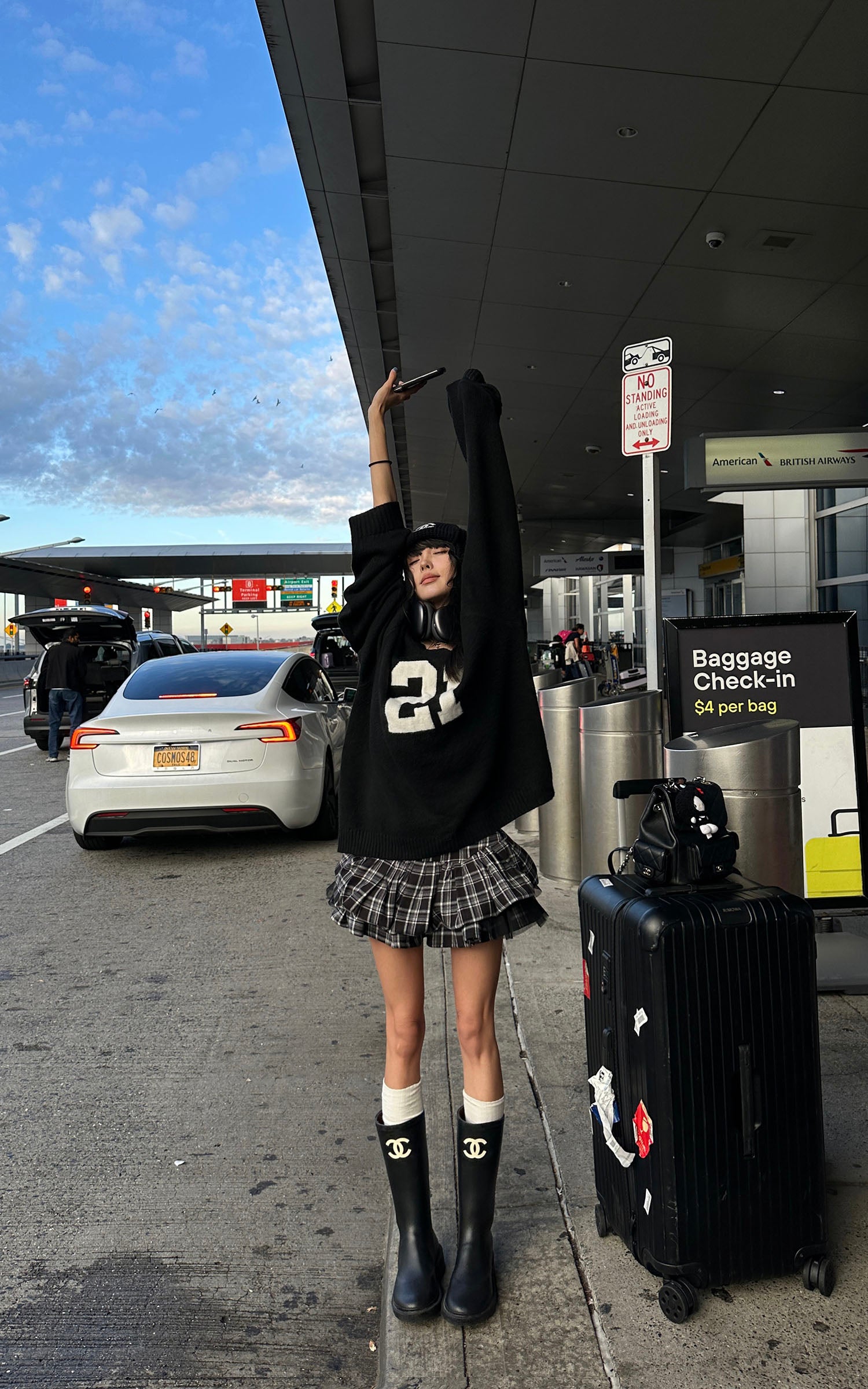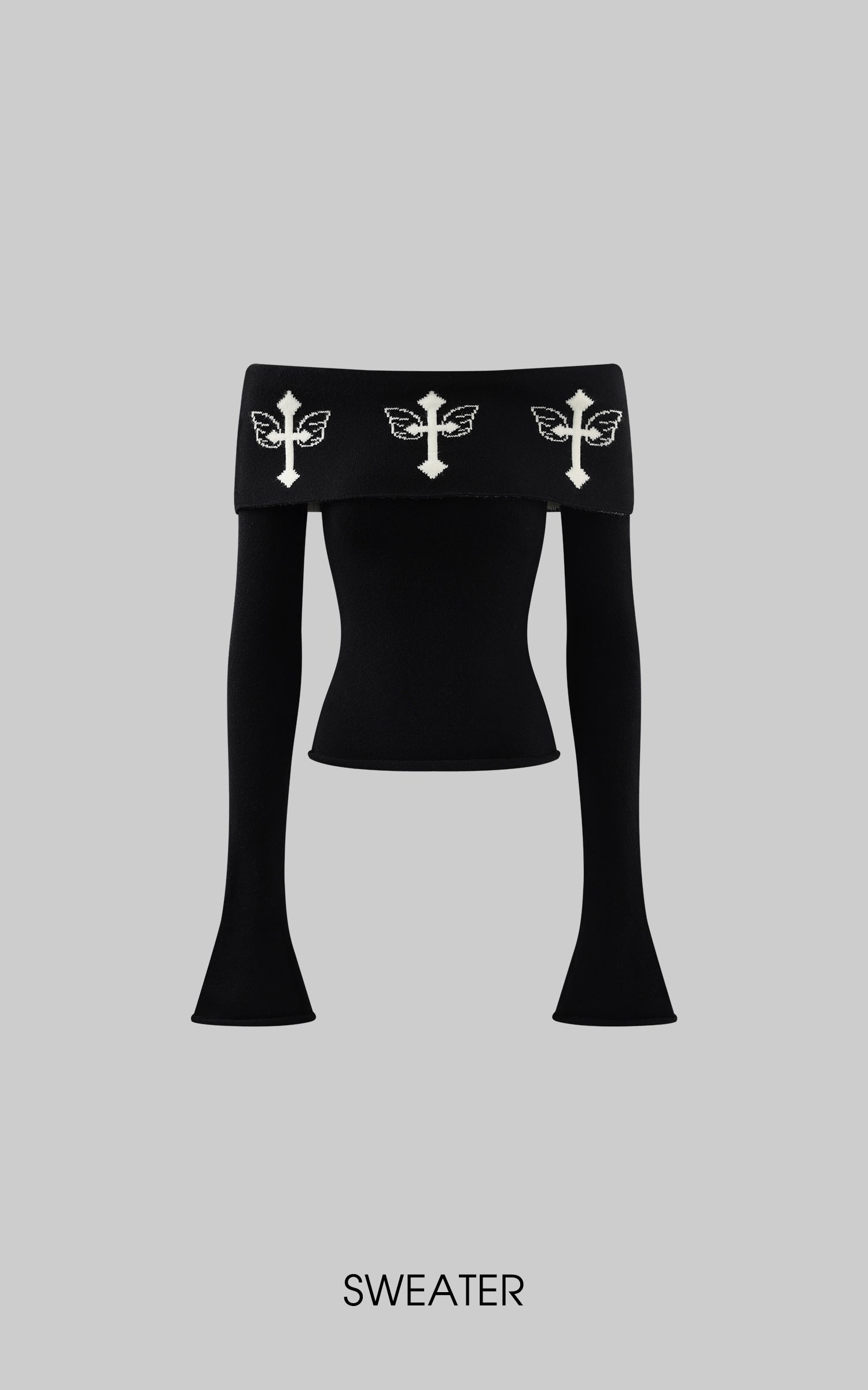 Rase le sol Black Knit Set with Cross Butterfly Motif
