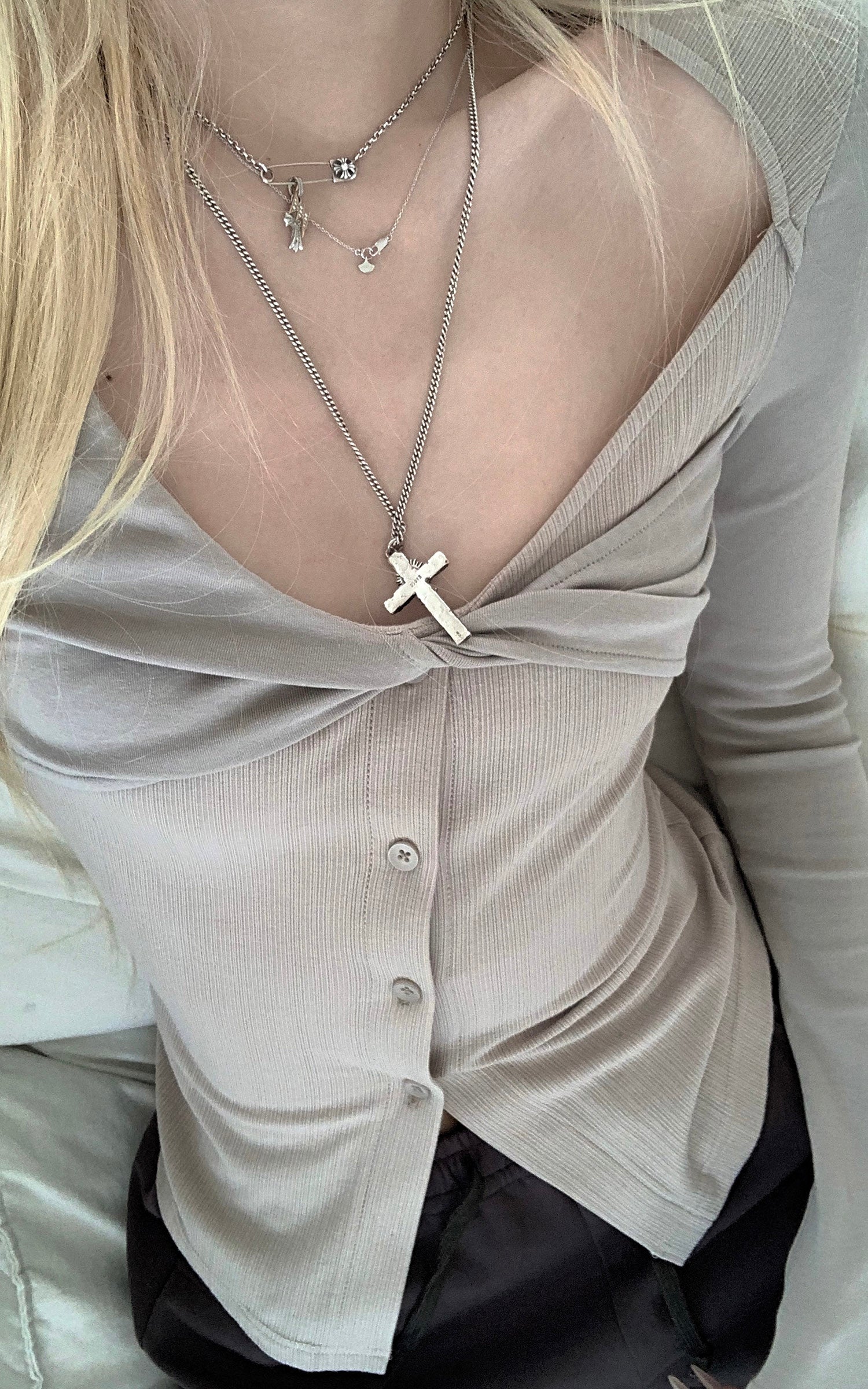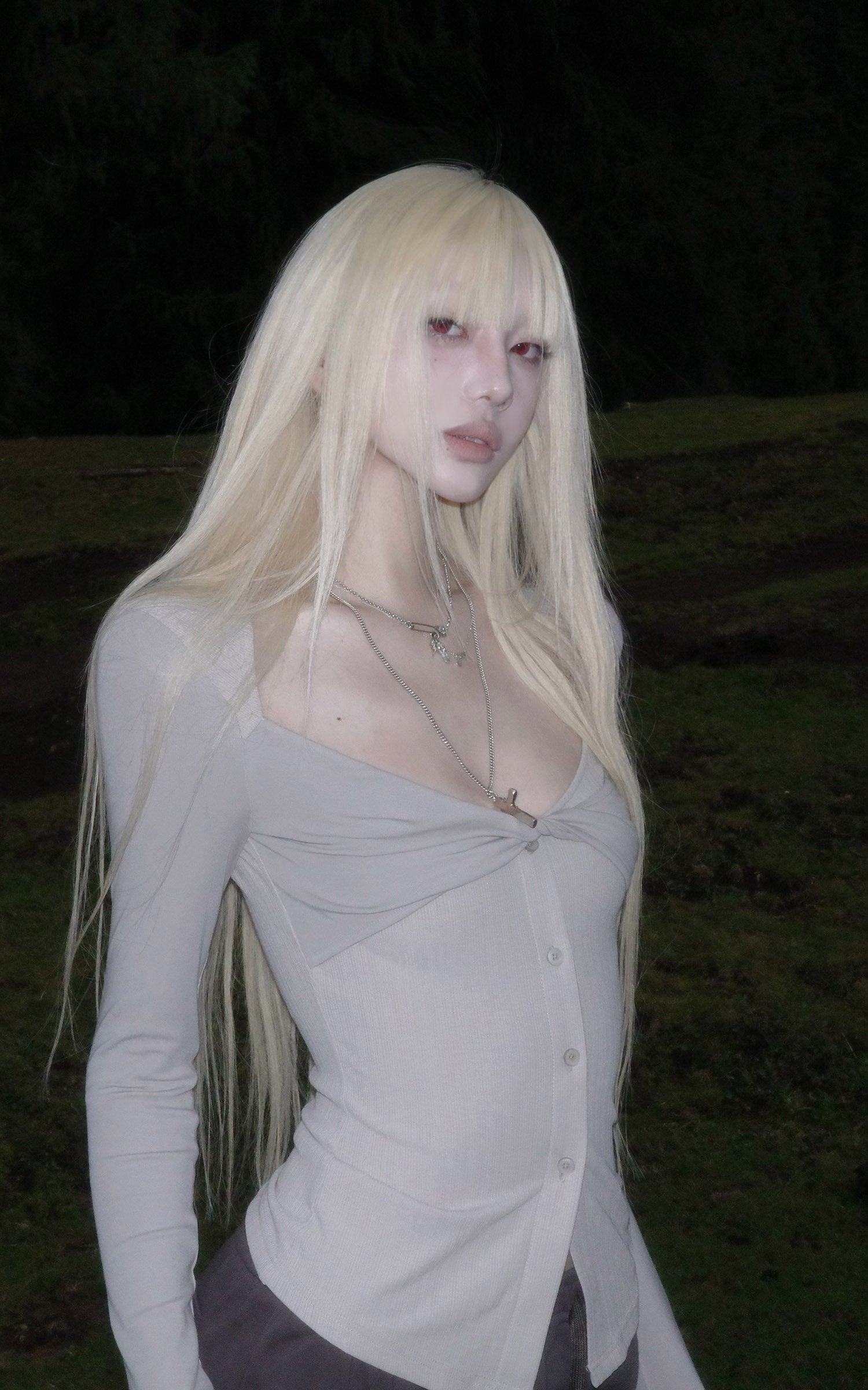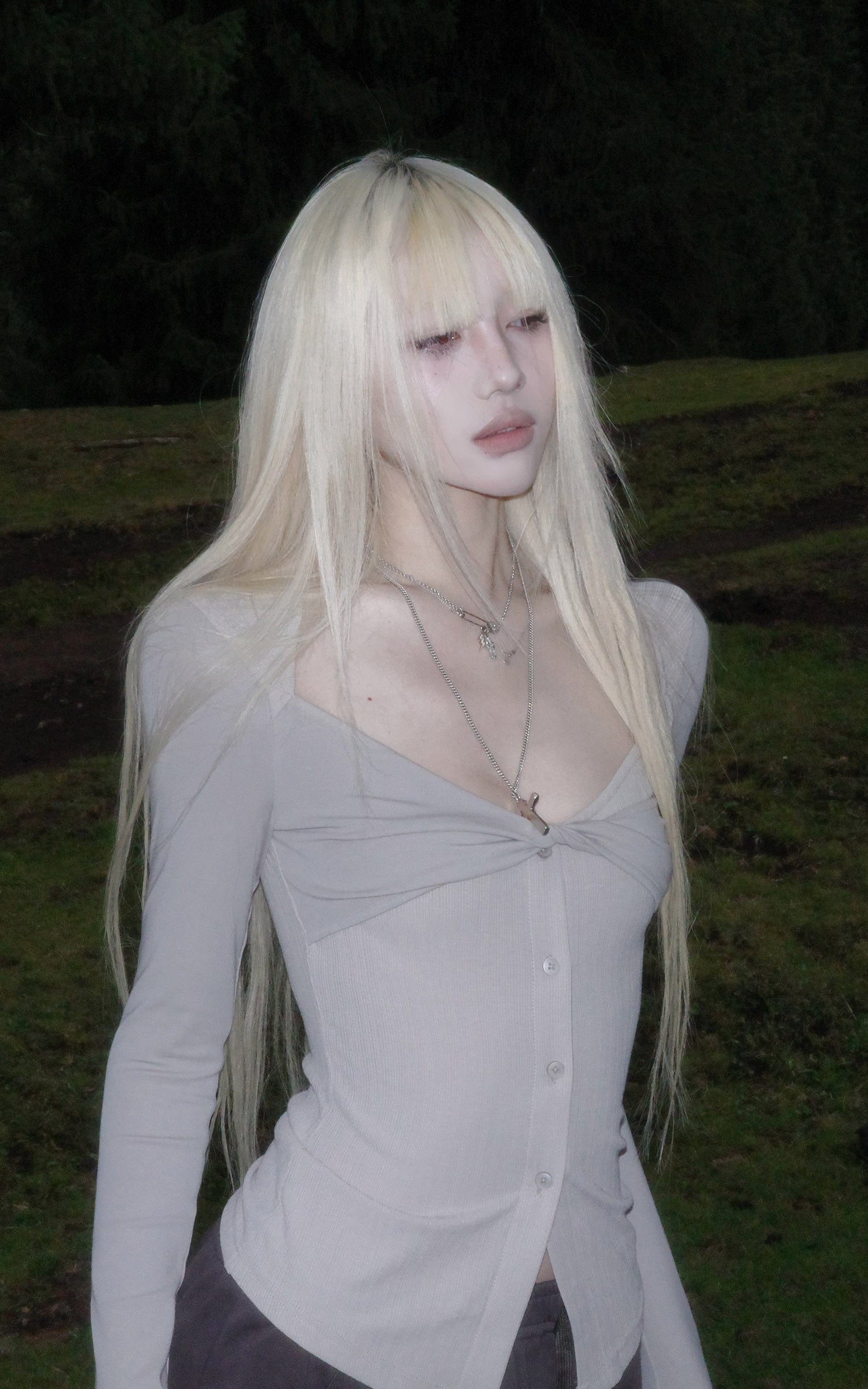 IAMXIAA Cut Out Long Sleeve Top Slim Fit Graphic Print Tee