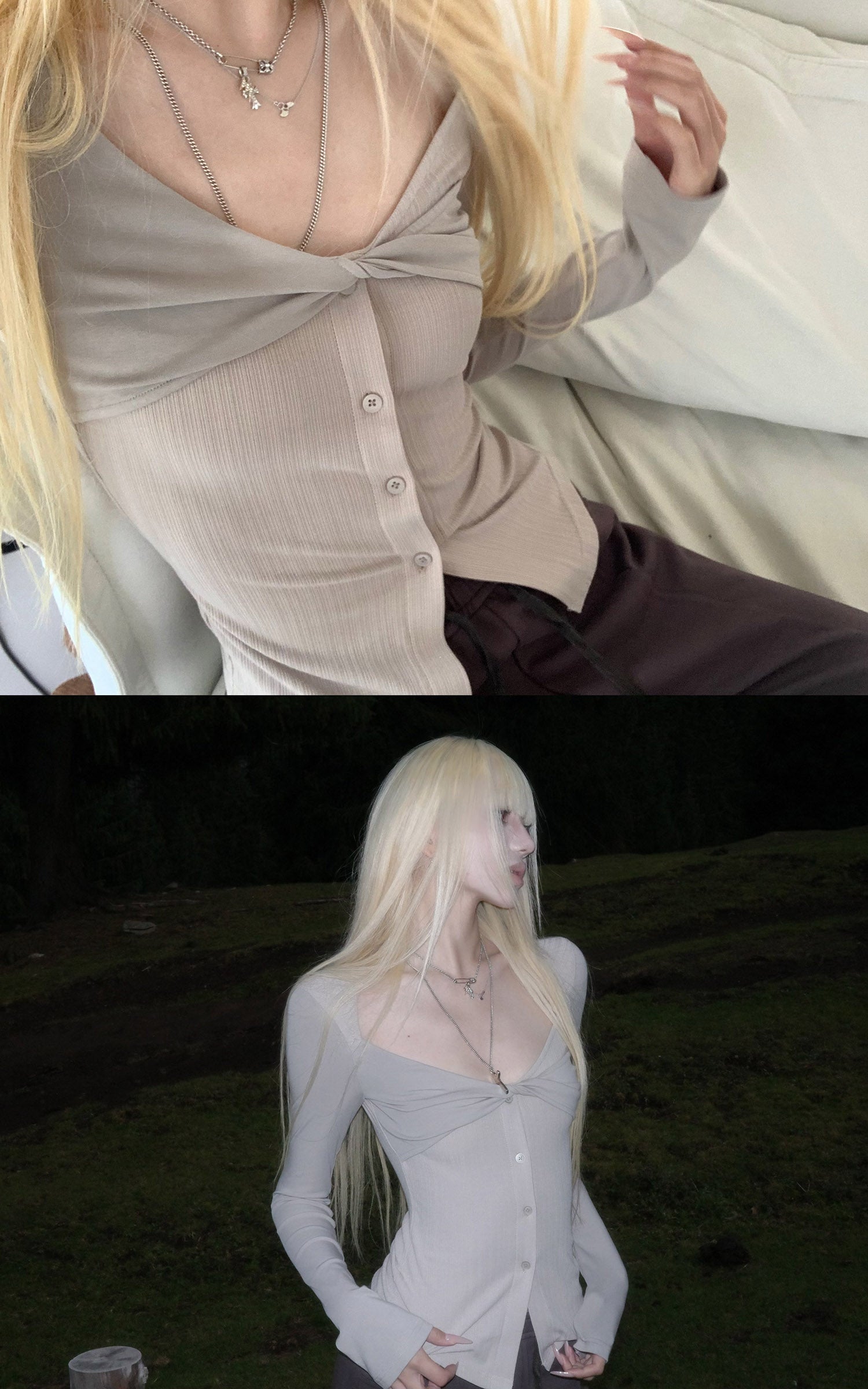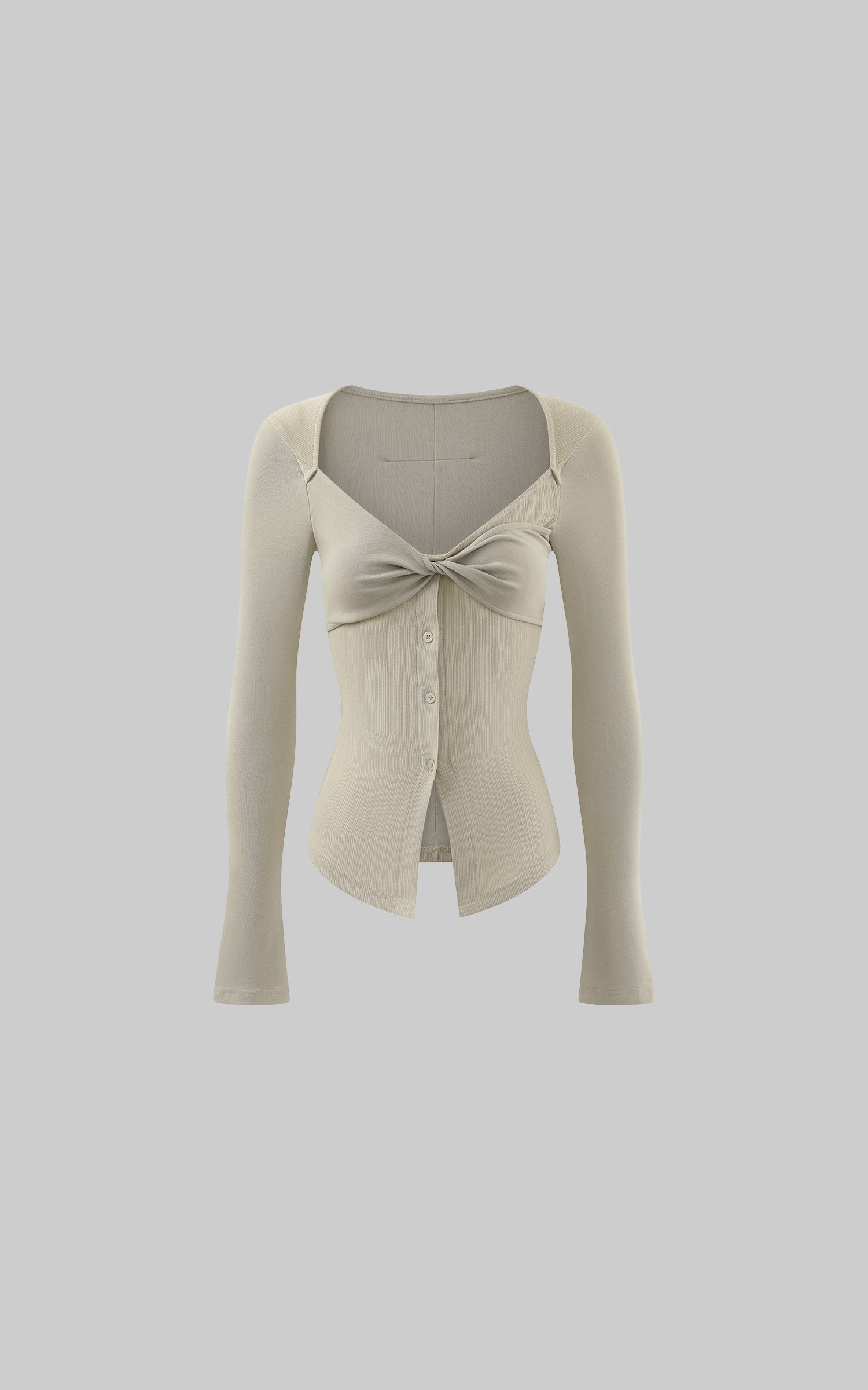Rase le sol Twisted Knot Ribbed Knit Top with Open Neckline