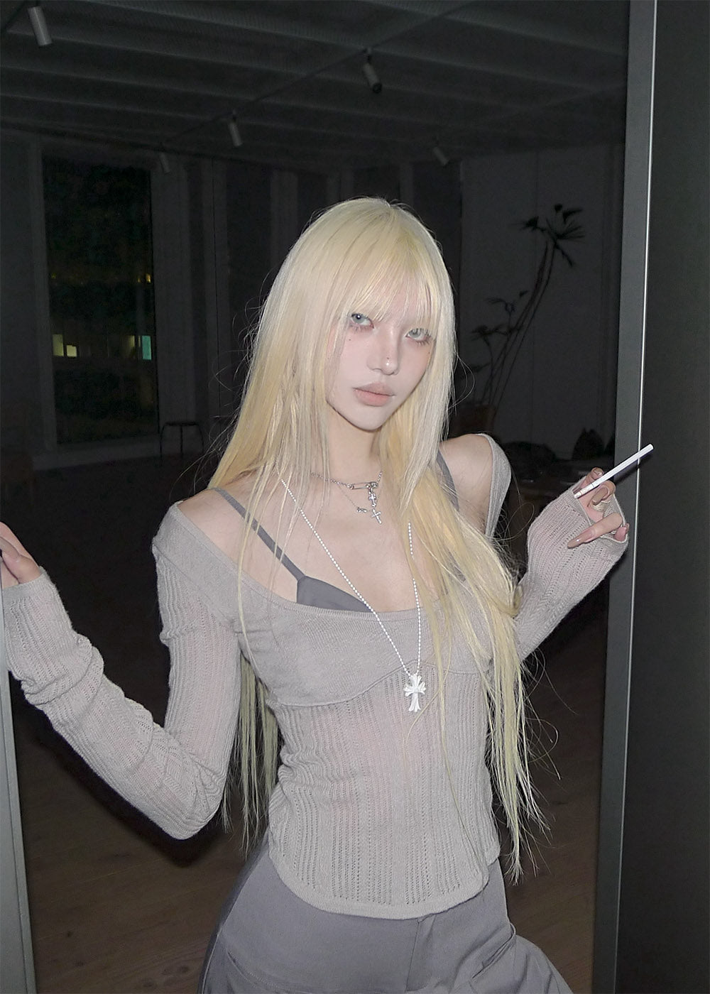 IAMXIAA Off Shoulder Knit Top Long Sleeve Pullover