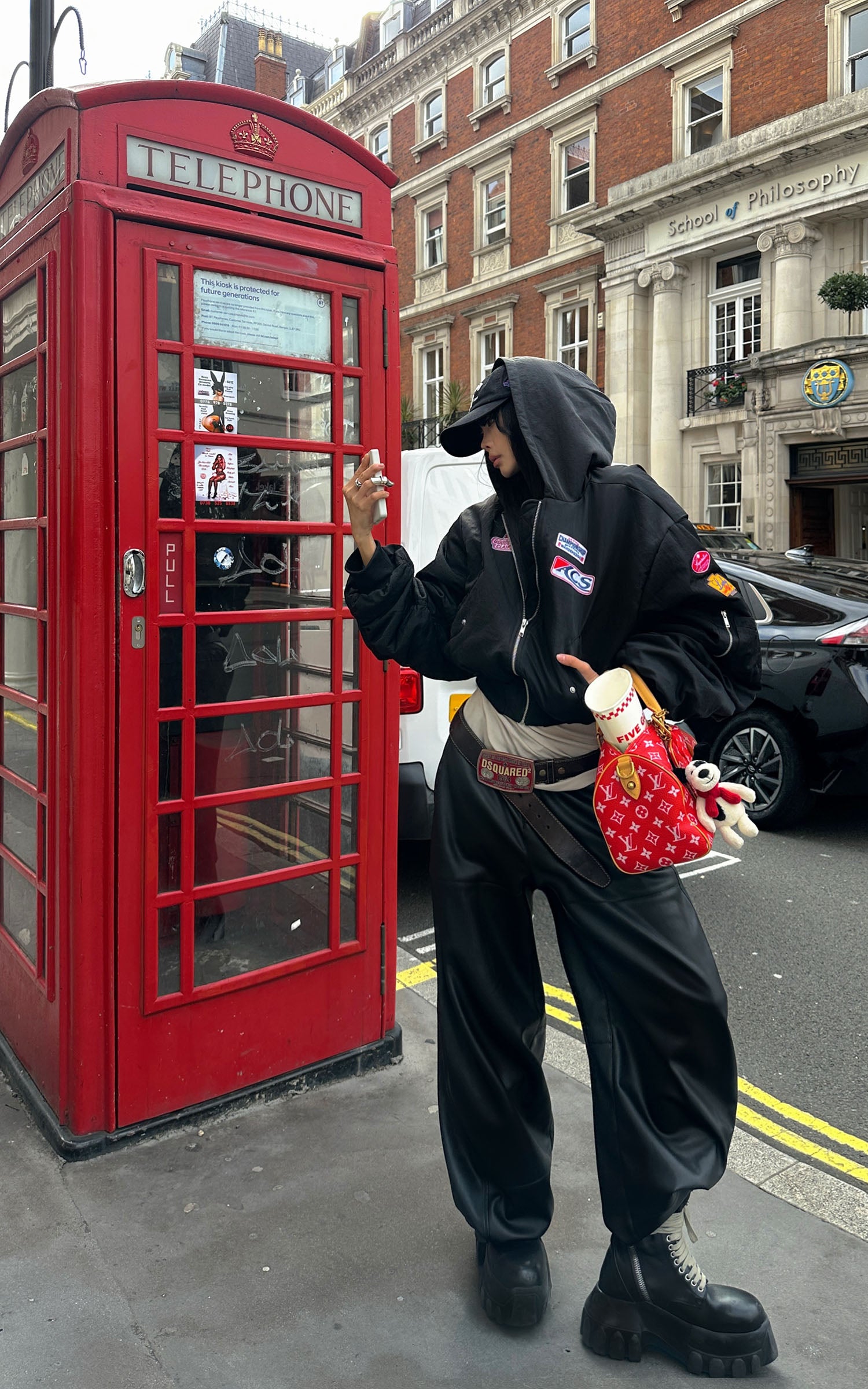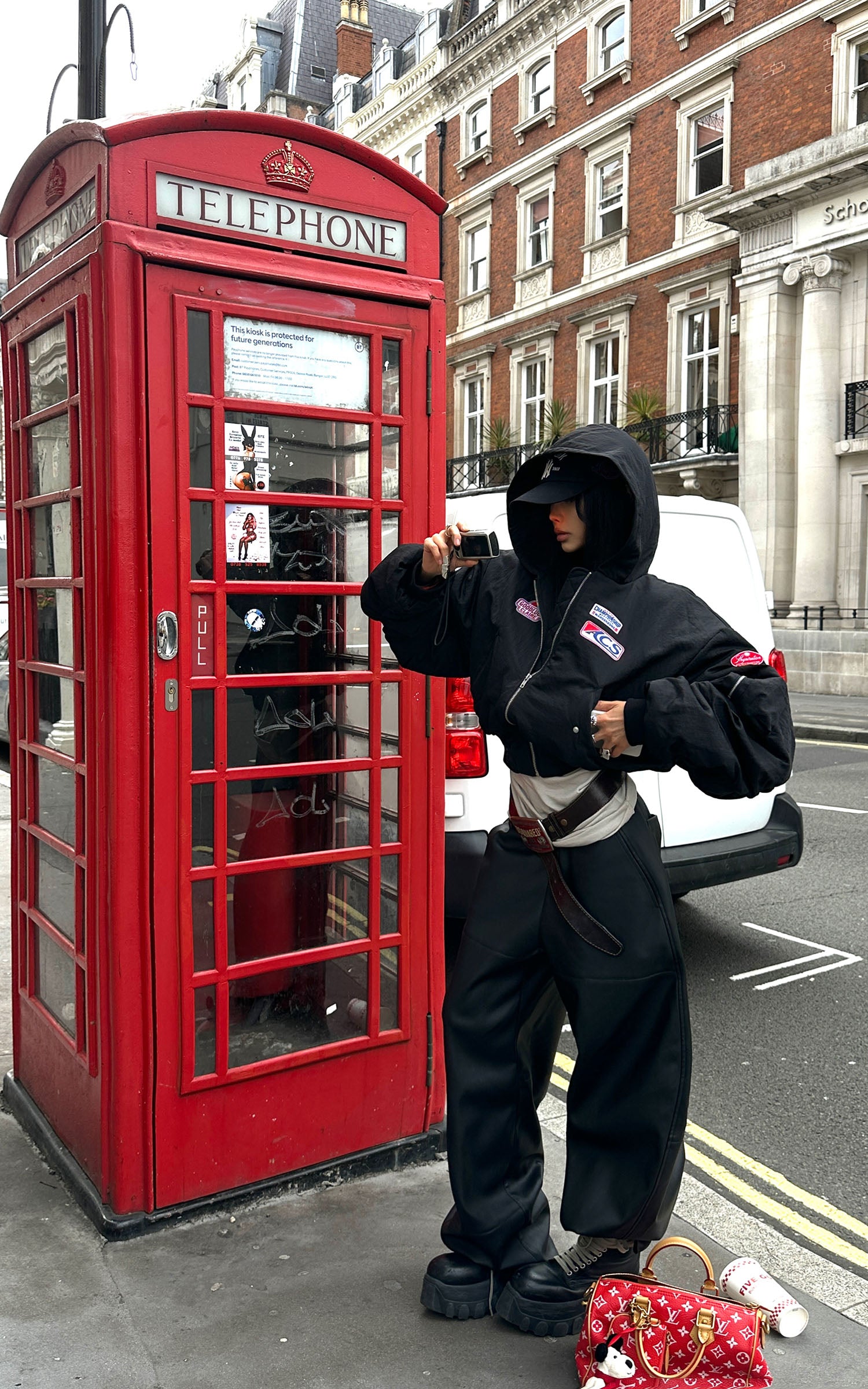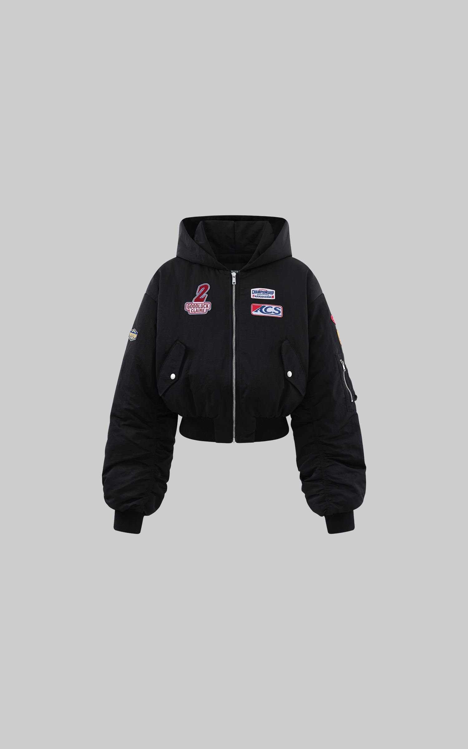 WARDEN EDGE Moto Patch Hooded Cropped Bomber Jacket