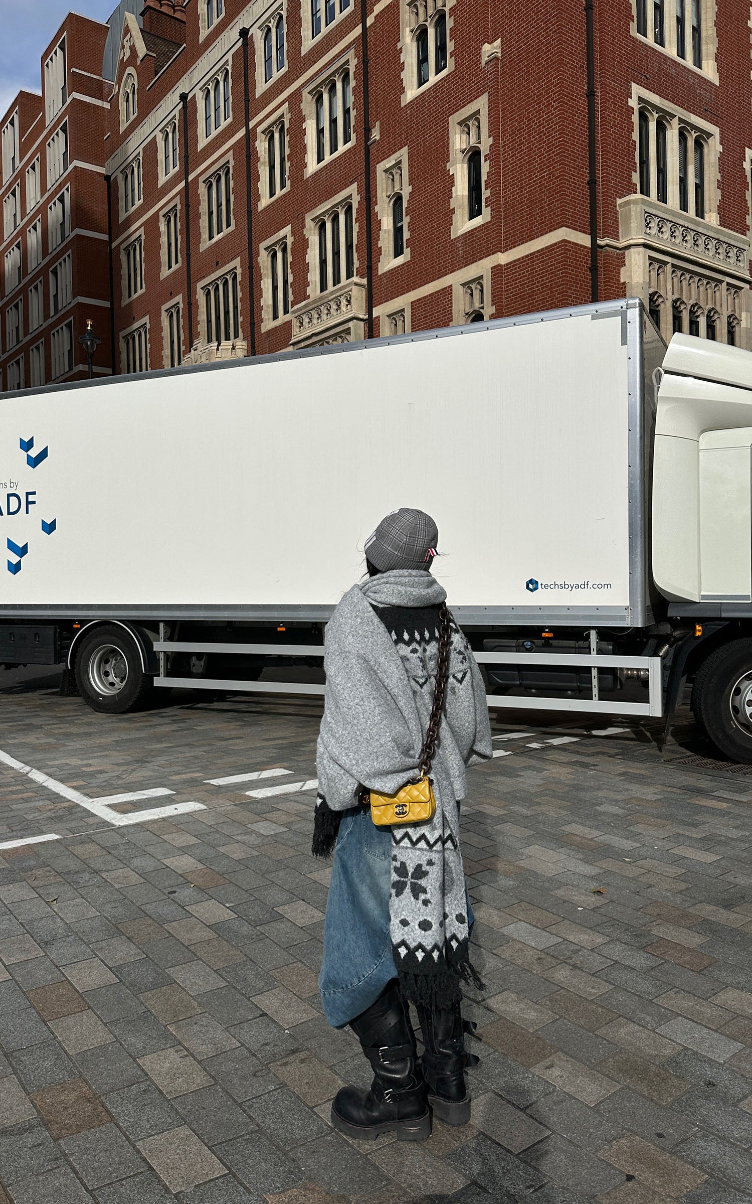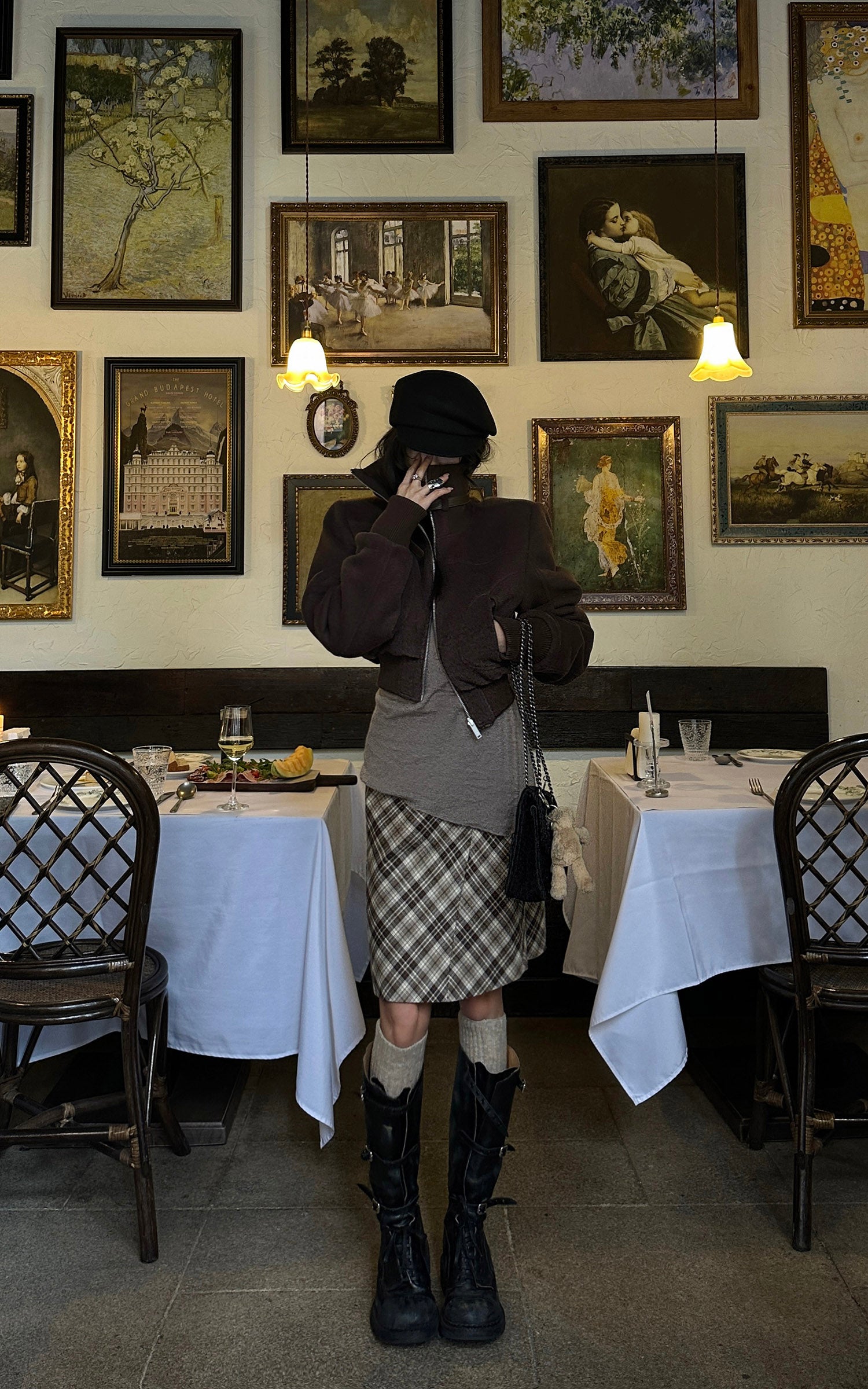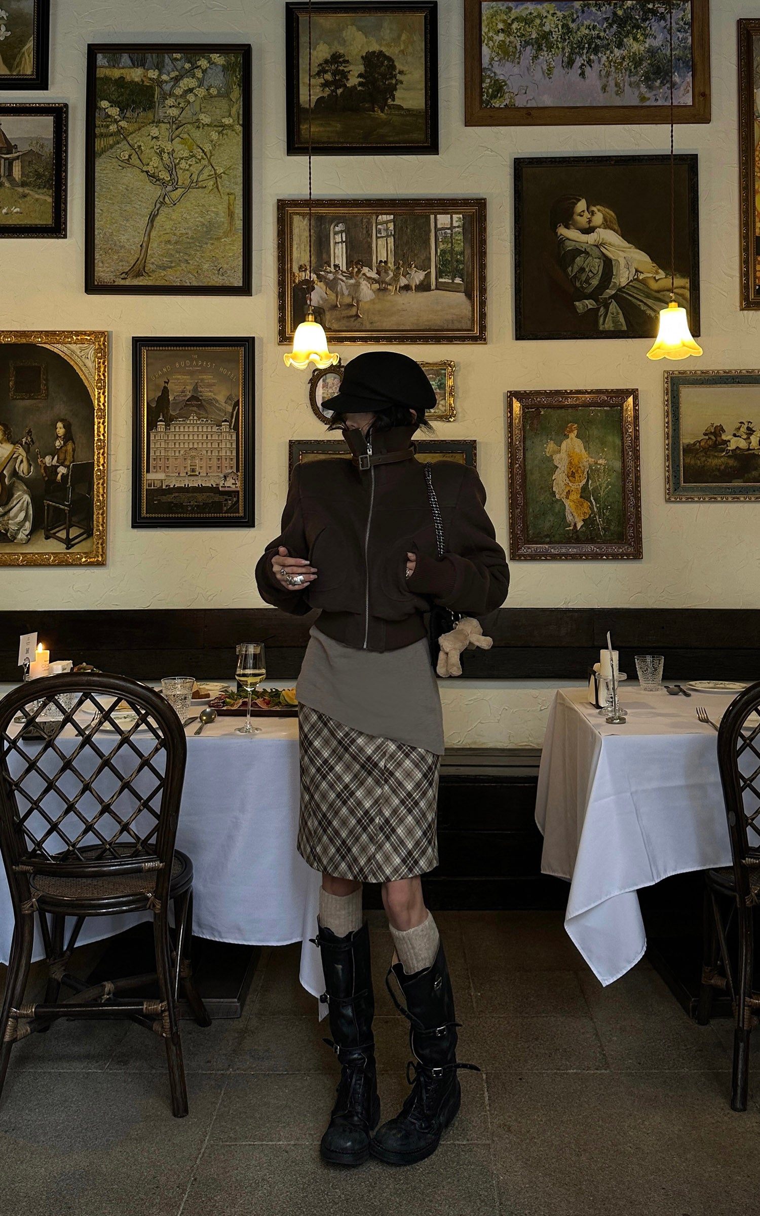 WARDEN EDGE Plaid Contour Midi Skirt with Side Buckle Detail