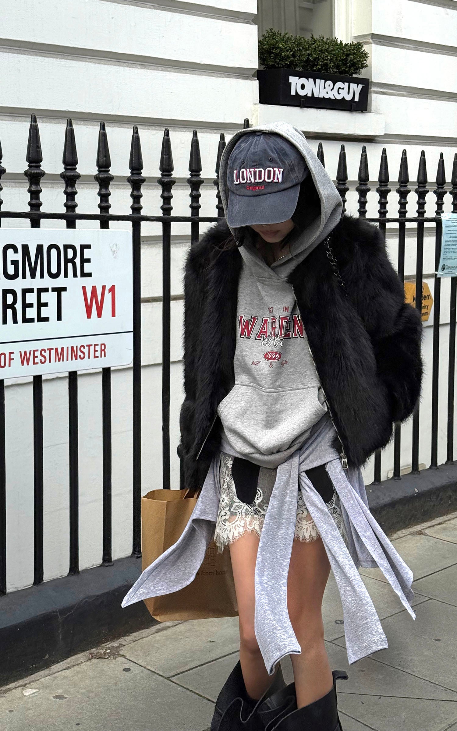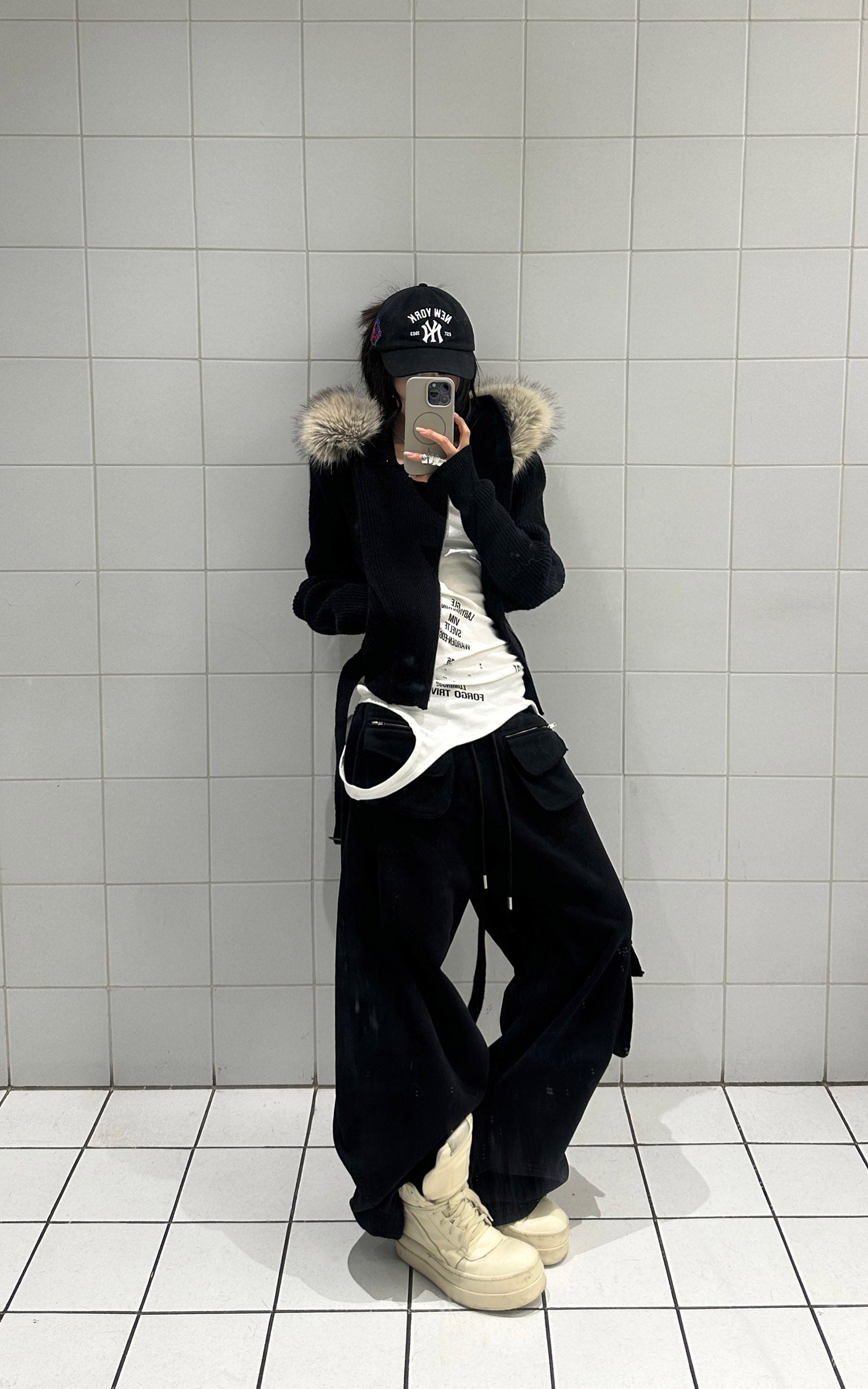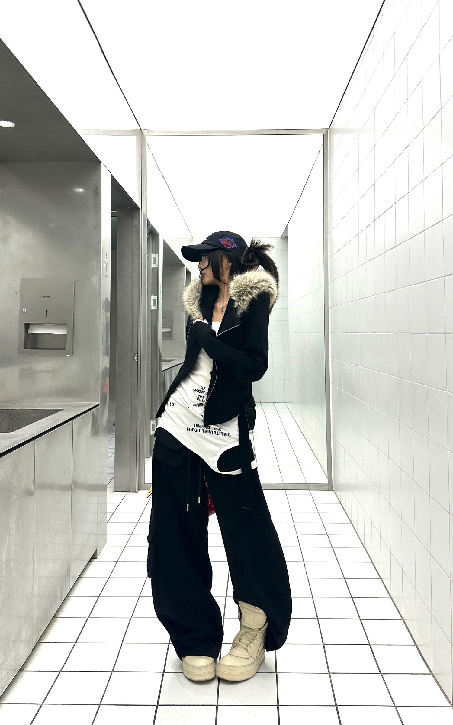 WARDEN EDGE Faux-Fur Hood Cropped Hoodie