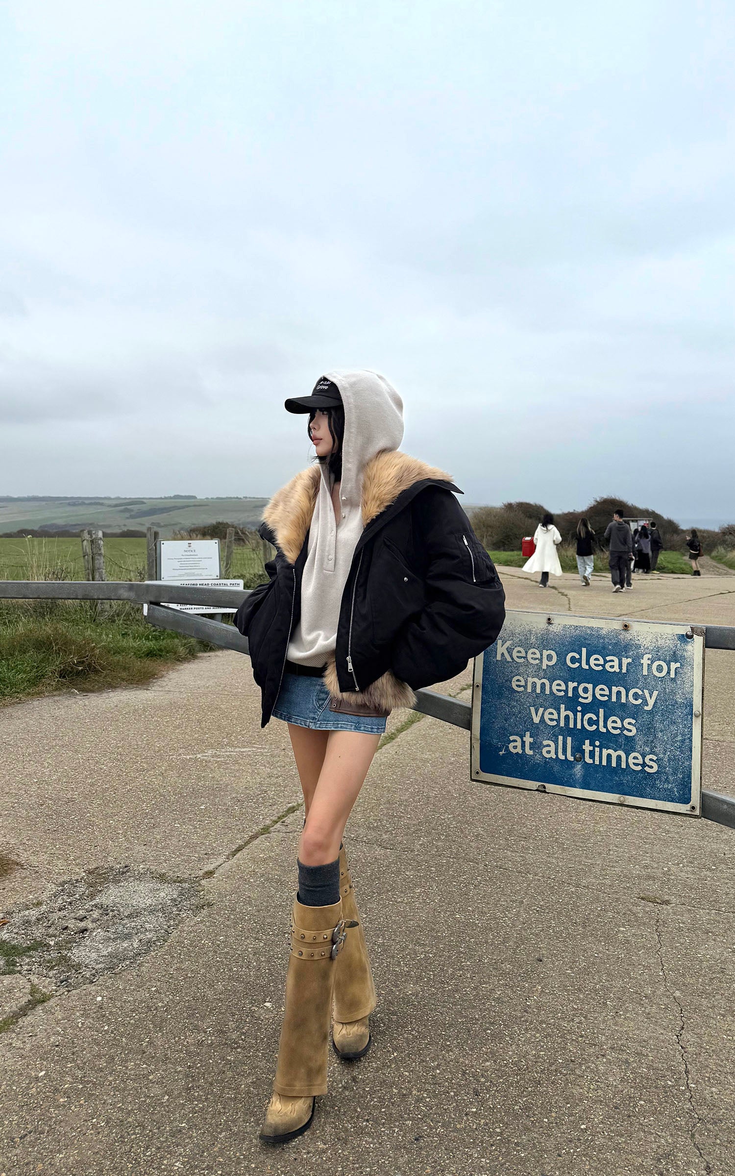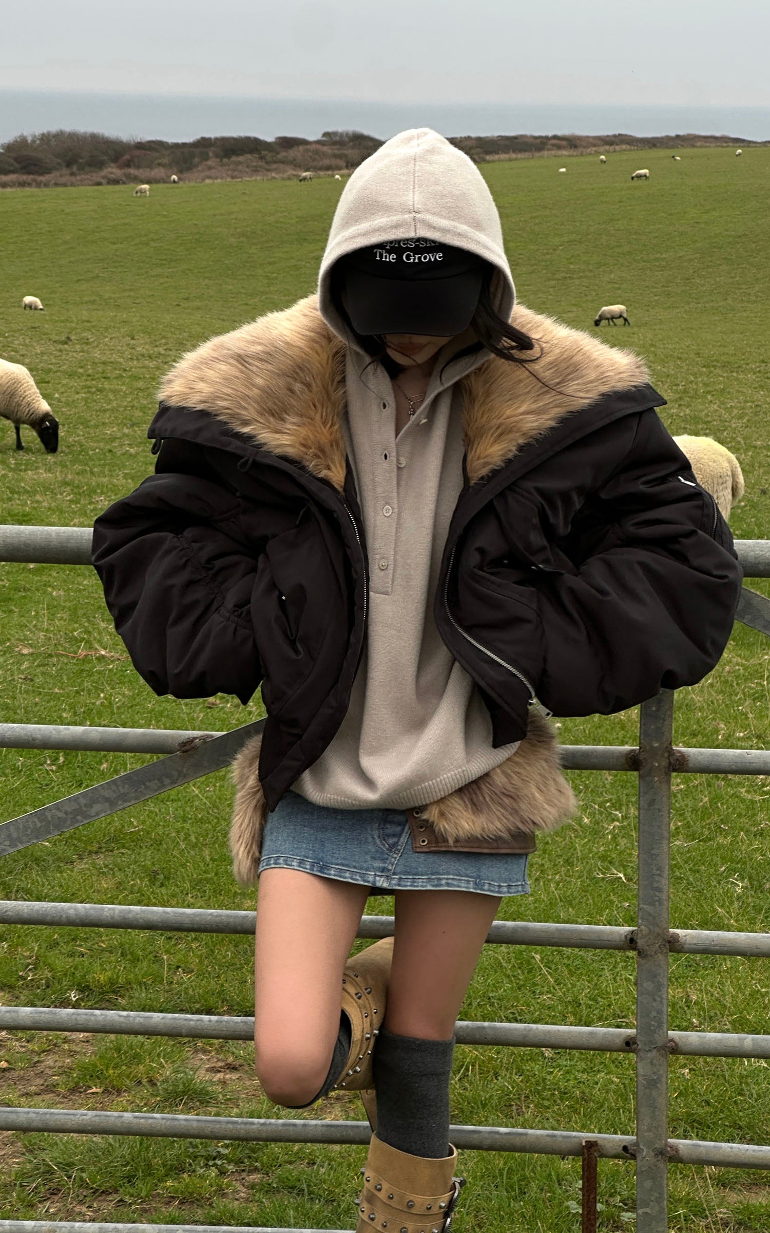 WARDEN EDGE Faux Fur Collar Cropped Down Jacket