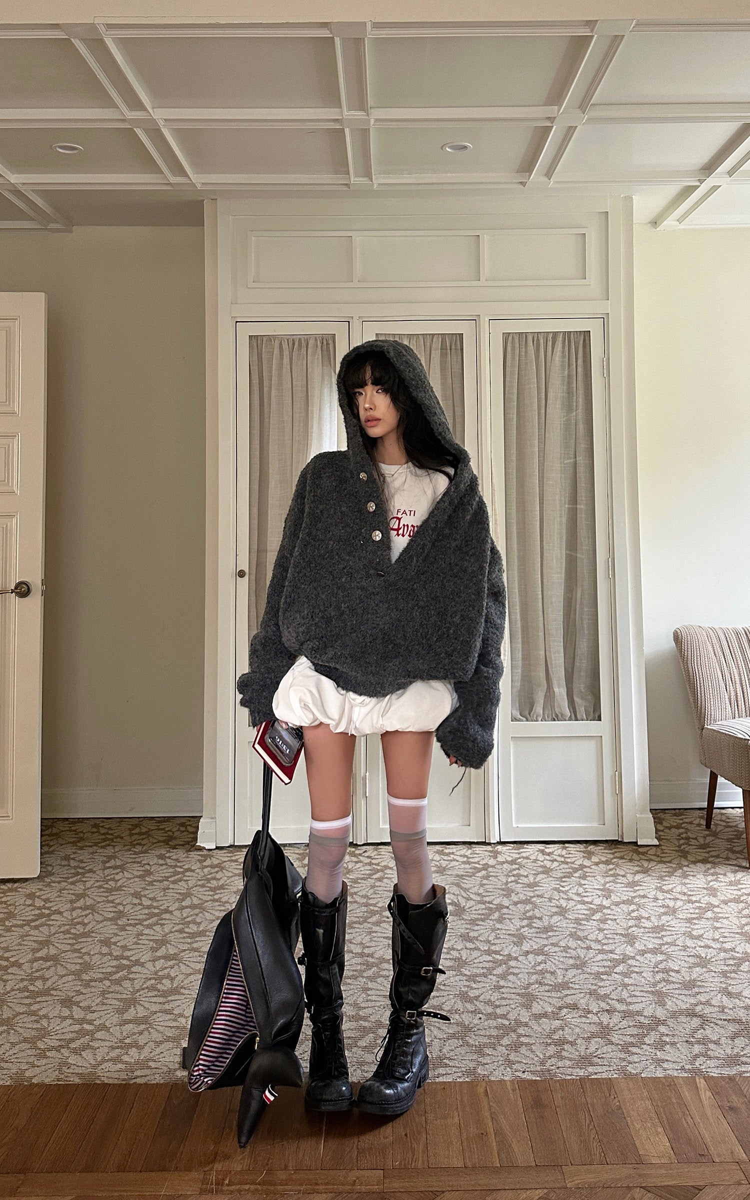 WARDEN EDGE Wool-Like Down Jacket with Knitted Hood Panel