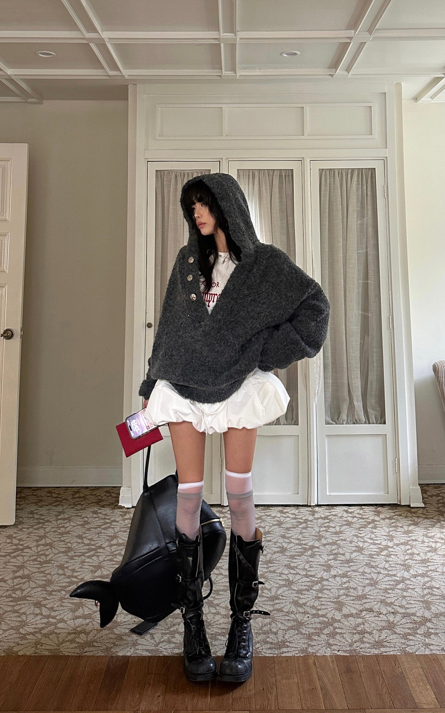 WARDEN EDGE Faux Shearling Cropped Hooded Jacket