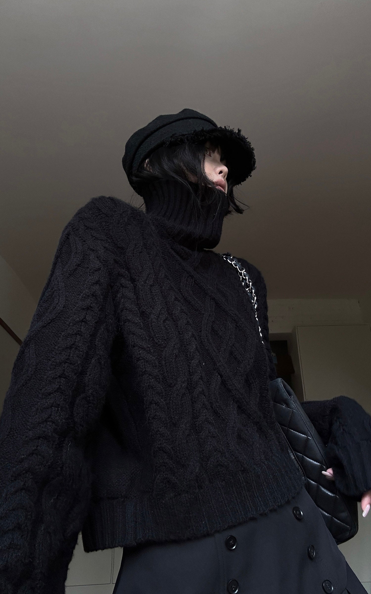 WARDEN EDGE Cable-Knit Turtleneck Cropped Sweater