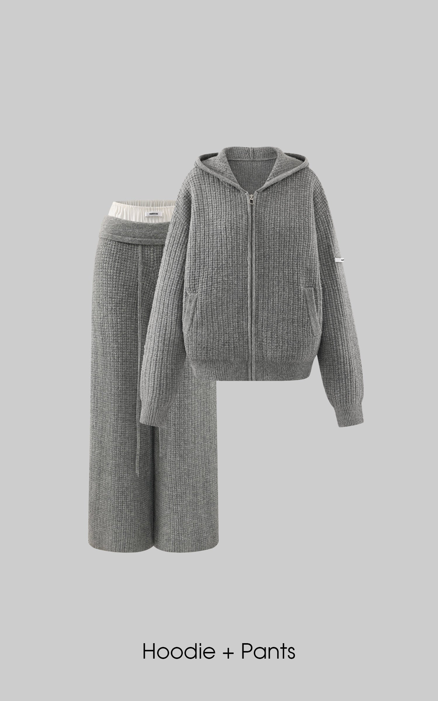WARDEN EDGE Oversized Knit Hoodie and Wide-Leg Pants Set