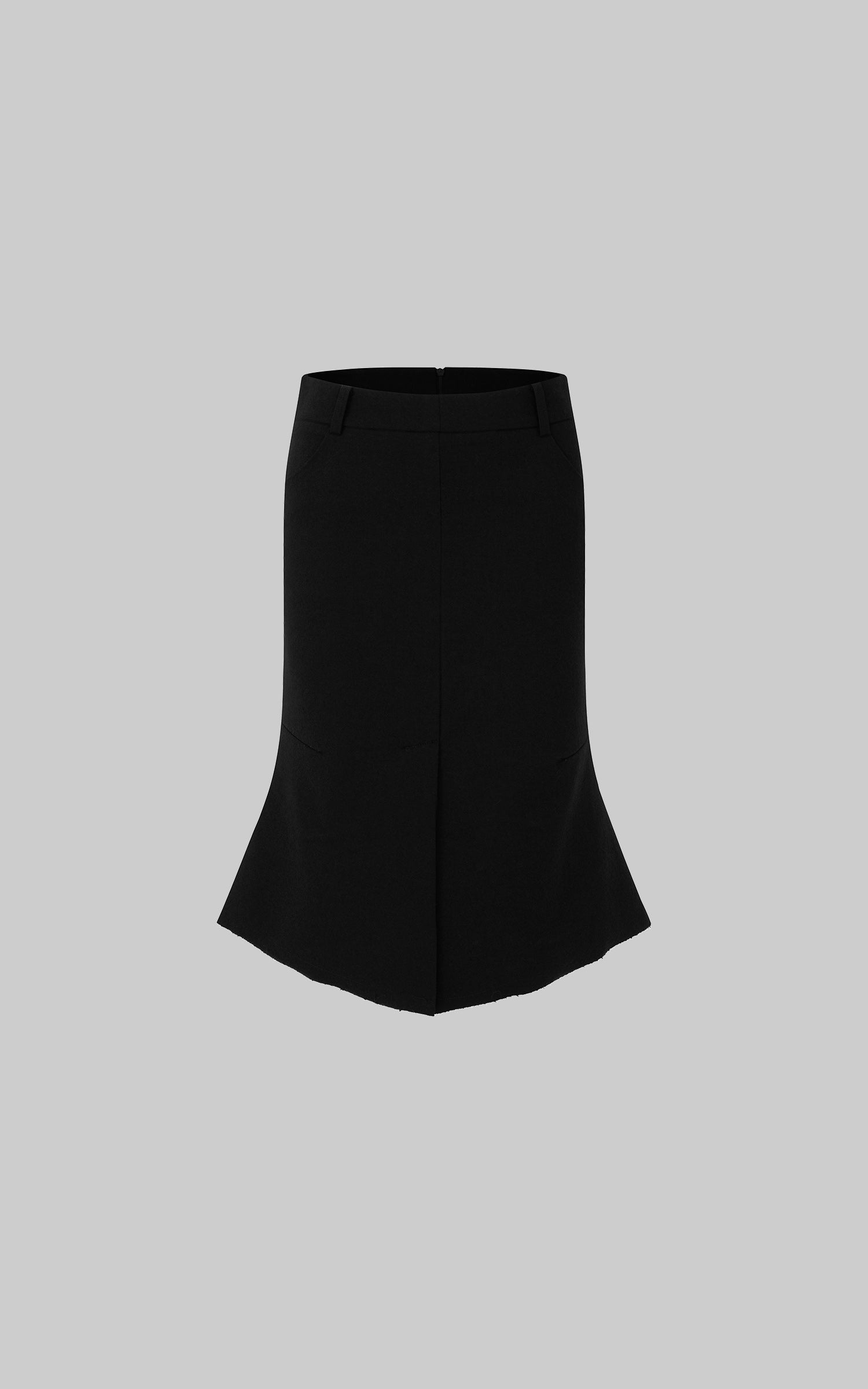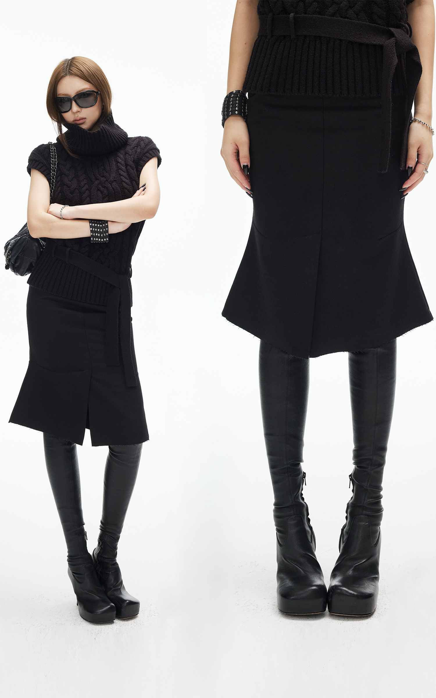 IAMXIAA Wool-Like High Waist Fishtail Midi Skirt with Raw Edge Hem