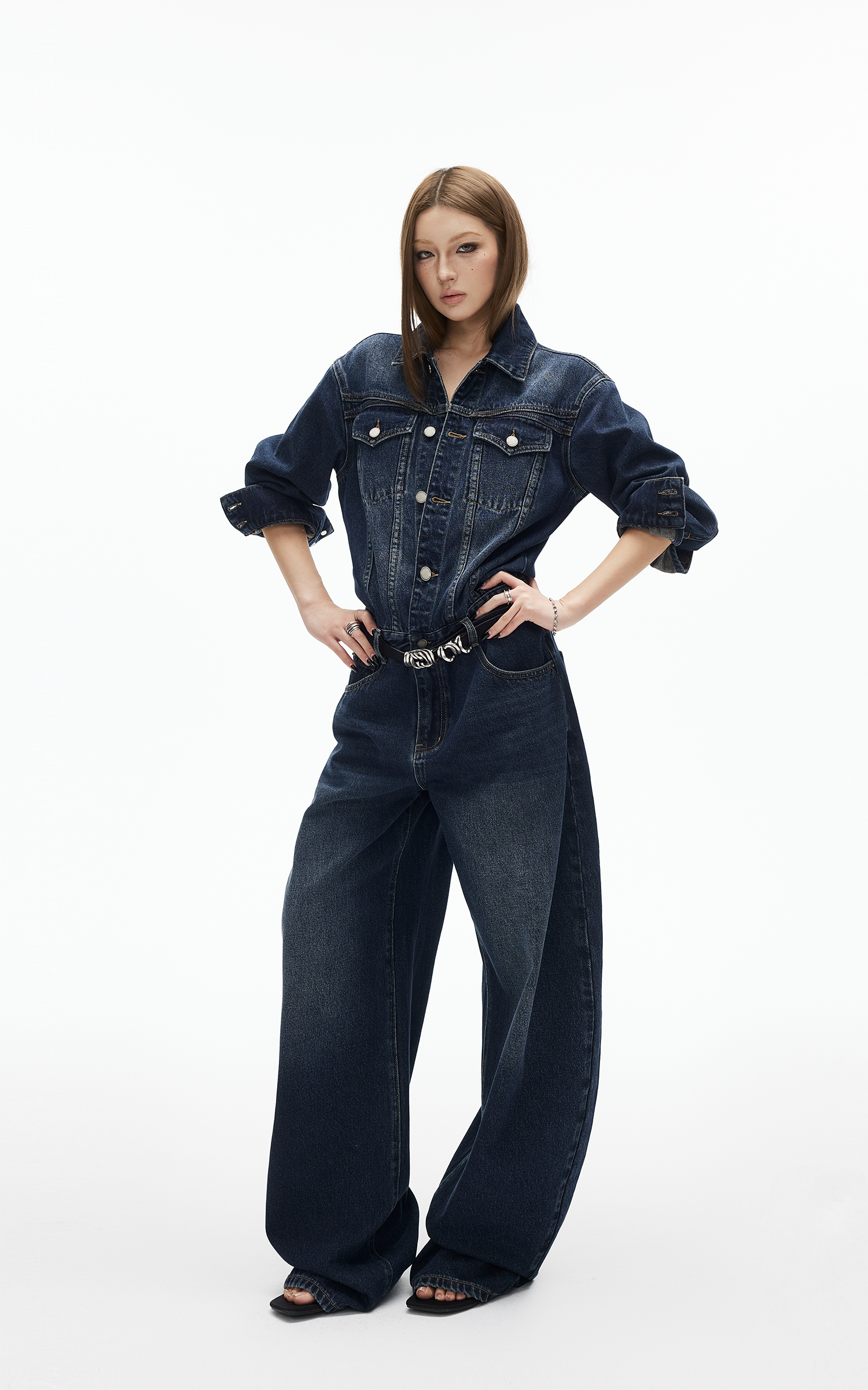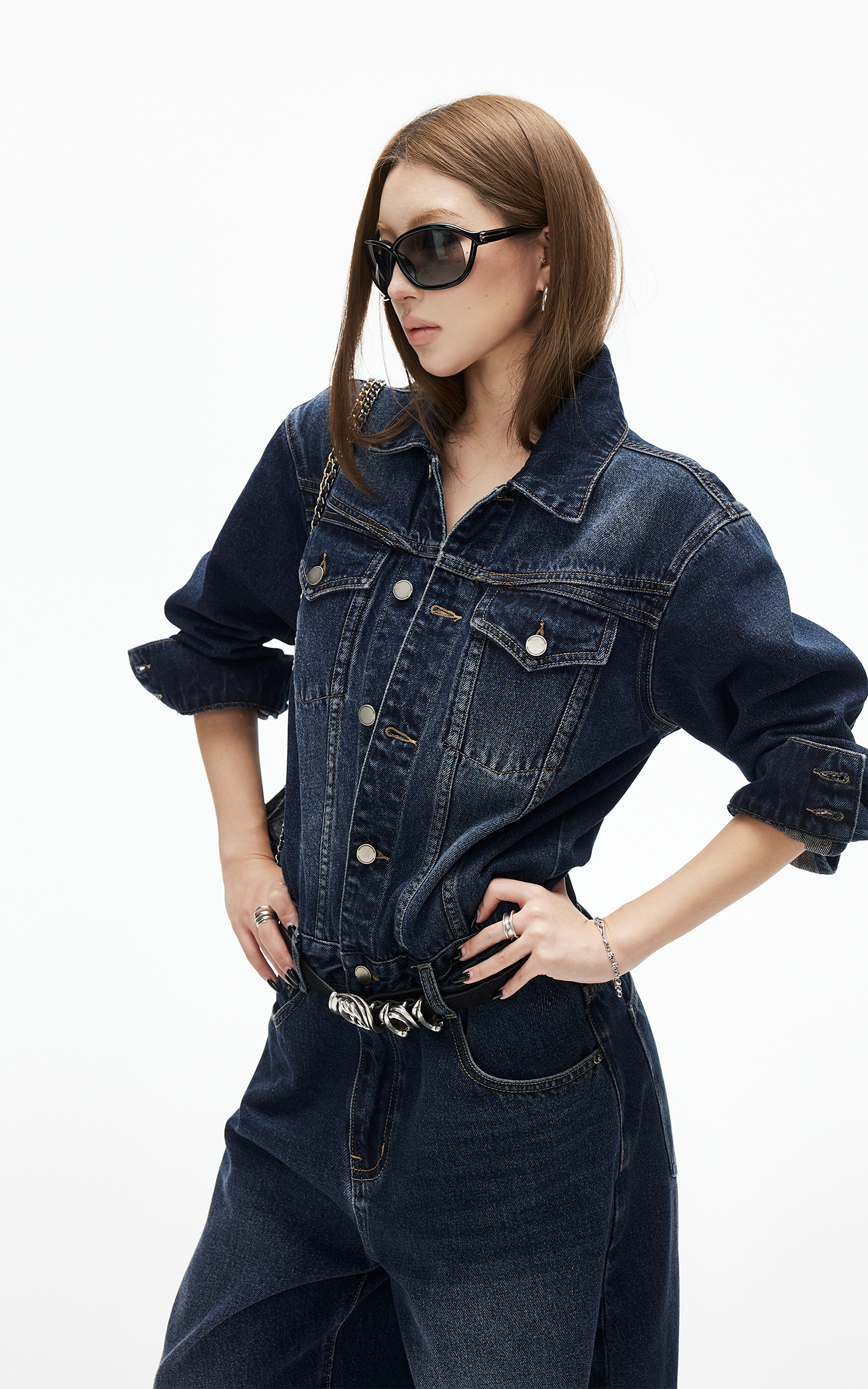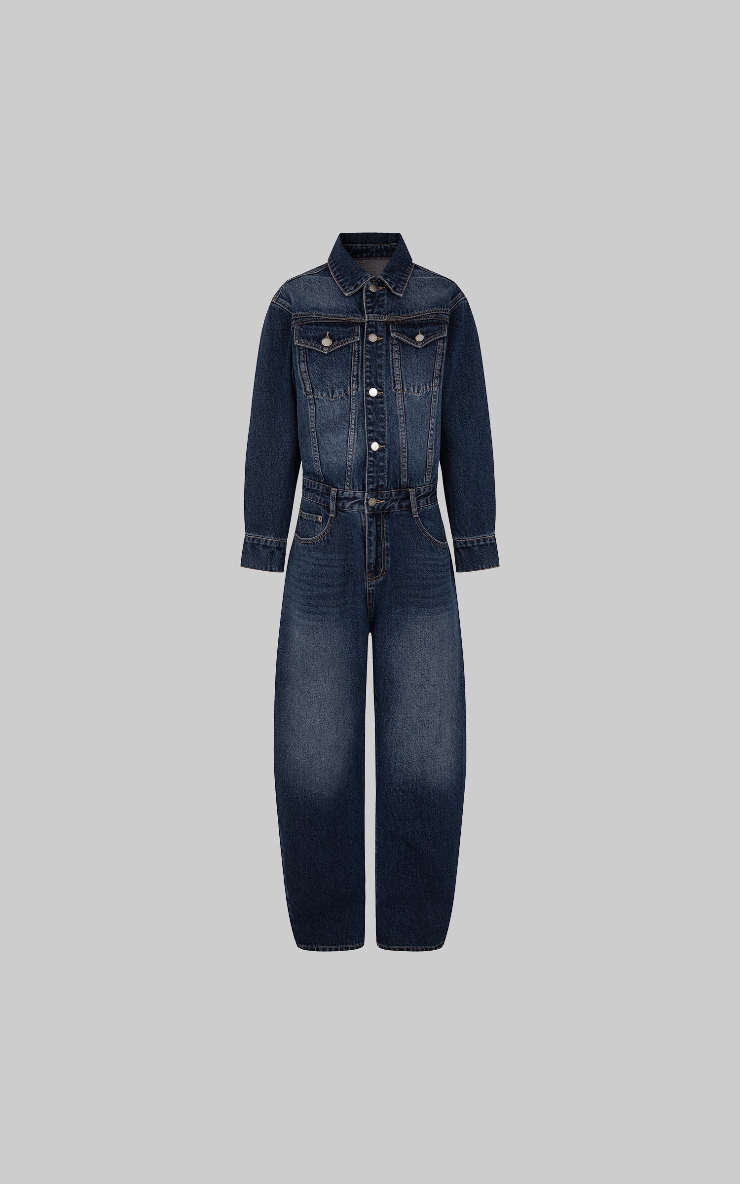 IAMXIAA Dark Wash Denim Jumpsuit Vintage Utility Style