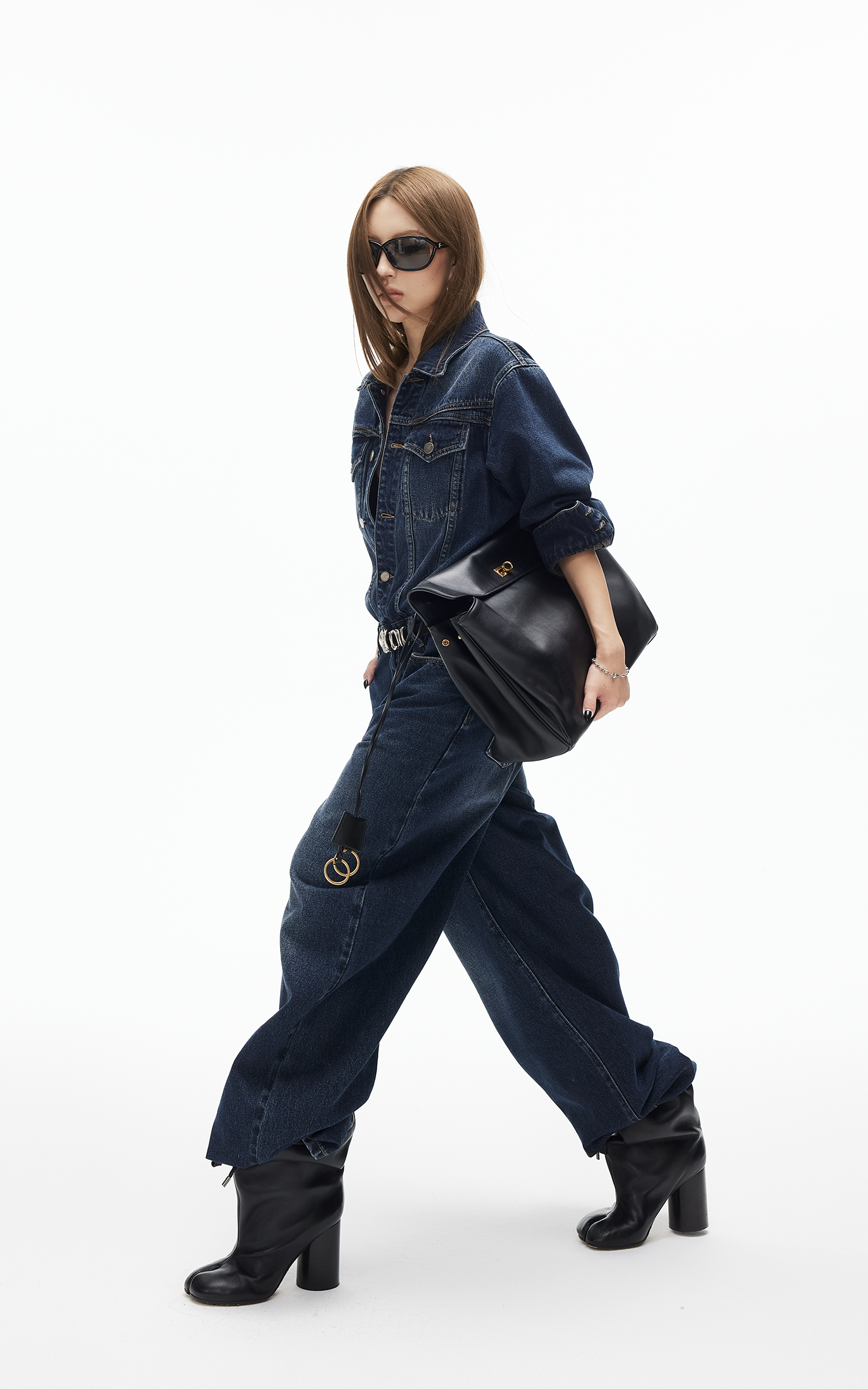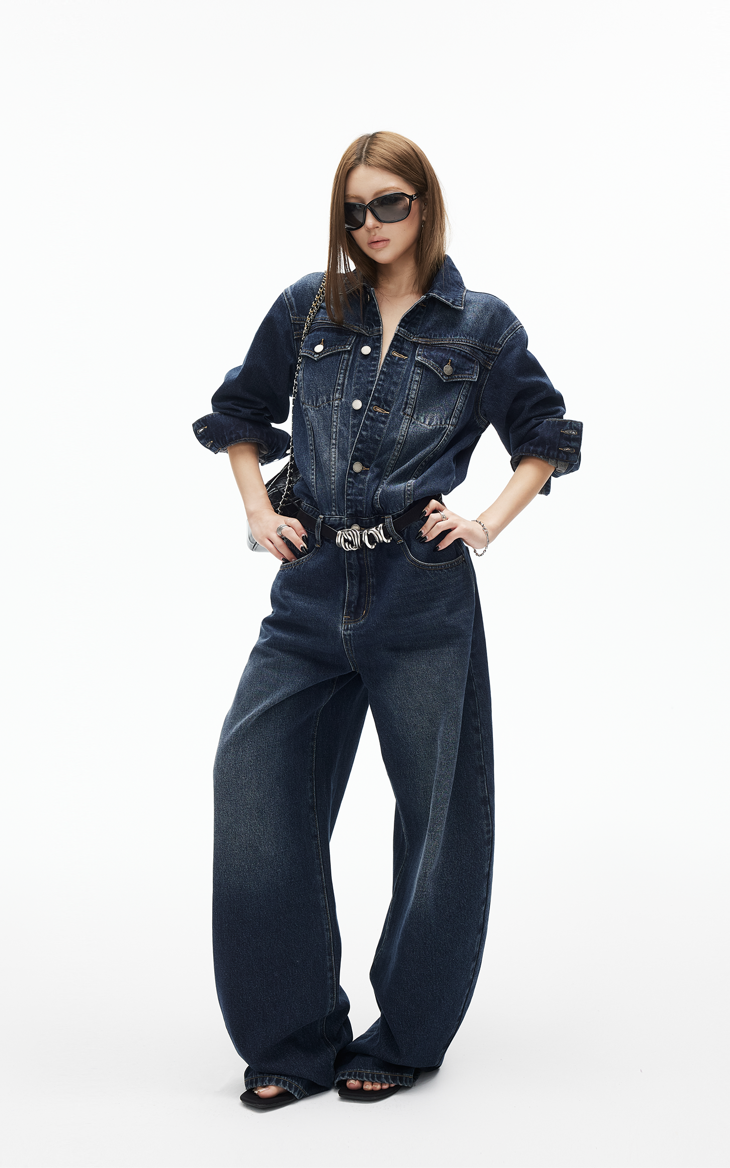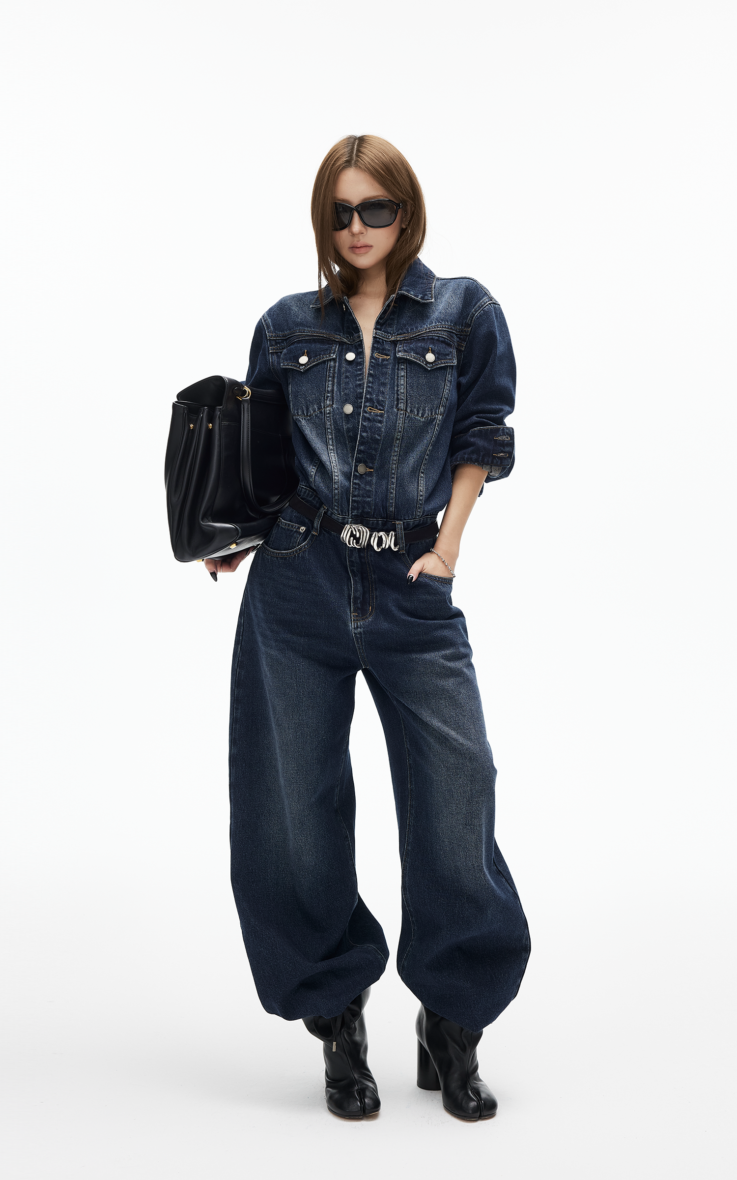IAMXIAA Dark Wash Denim Jumpsuit Vintage Utility Style