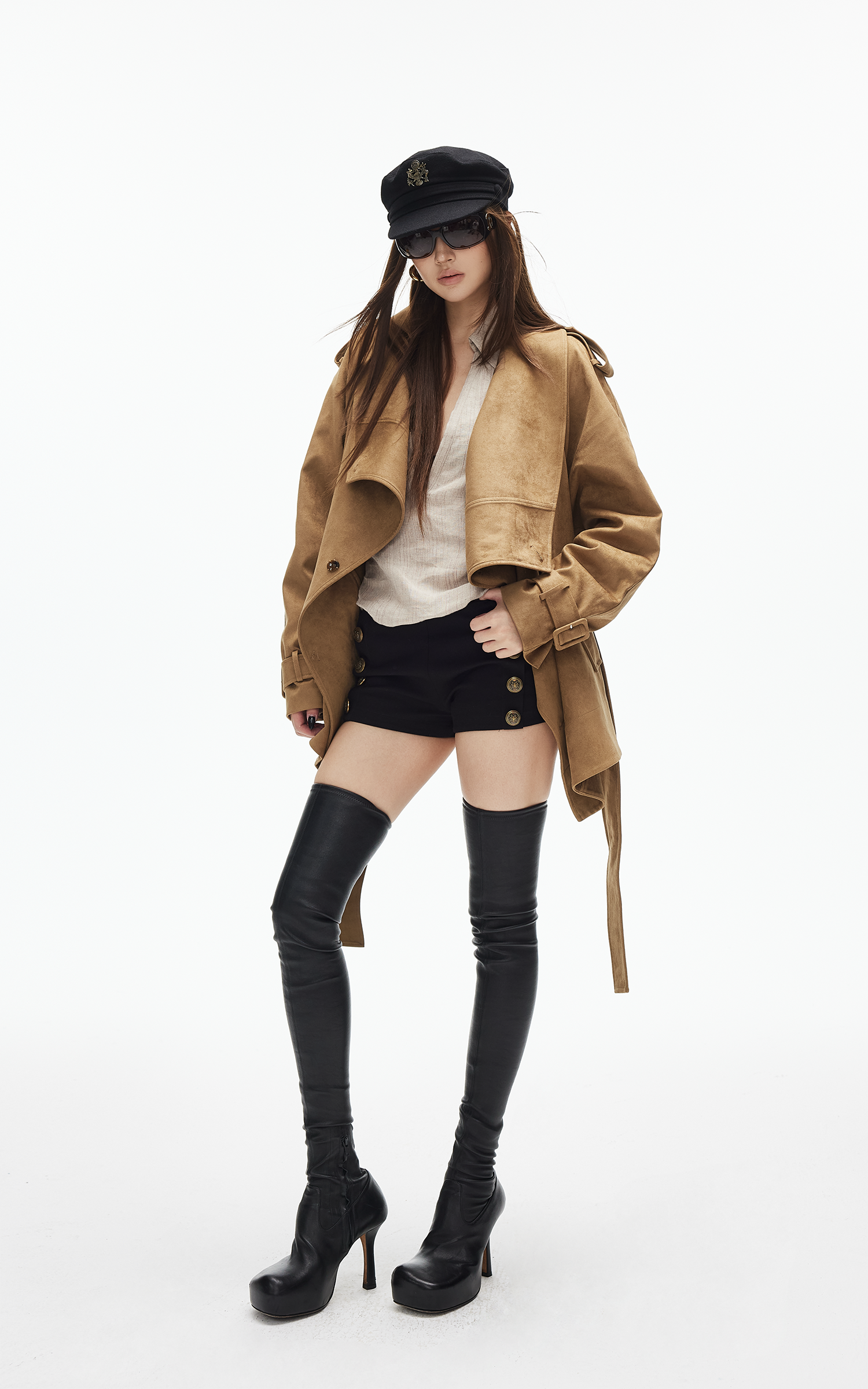 IAMXIAA Wool-Like High Neck Belted Double-Breasted Jacket