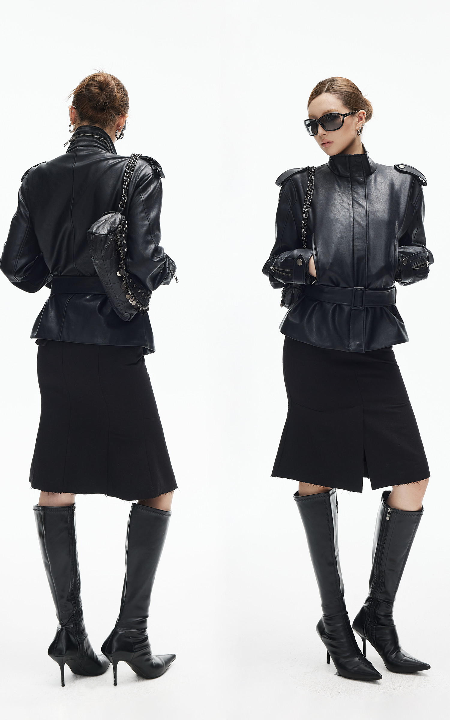 IAMXIAA Belted High-Neck Faux Leather Jacket