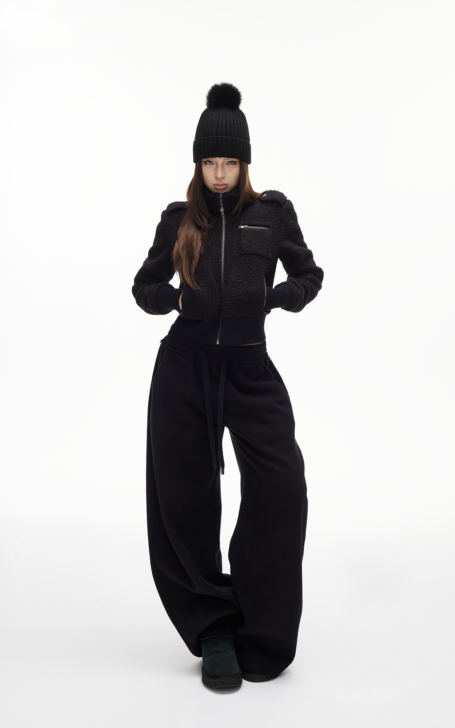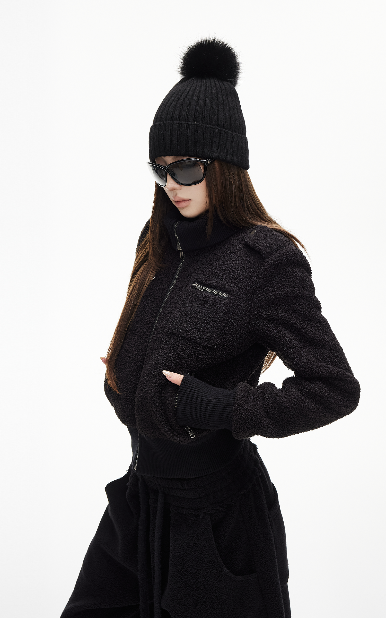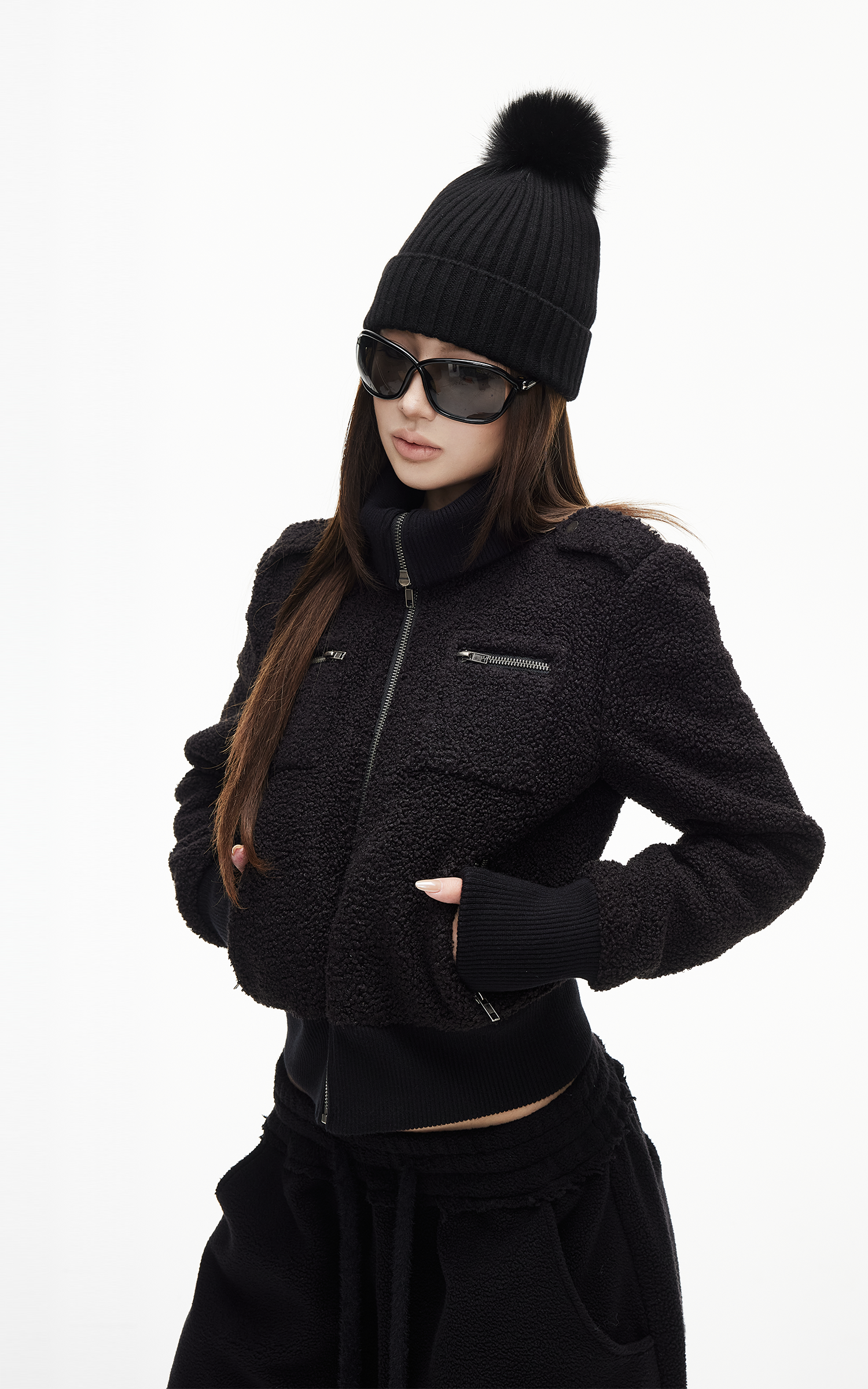 IAMXIAA Teddy Fleece Zip-Up Jacket with High Neck and Pocket Detail