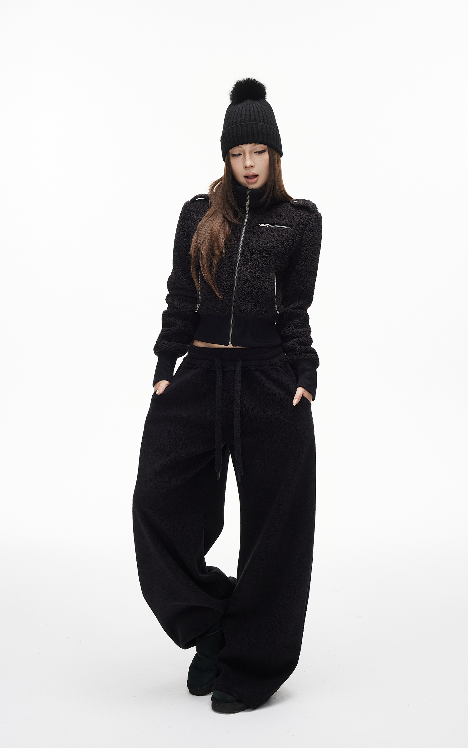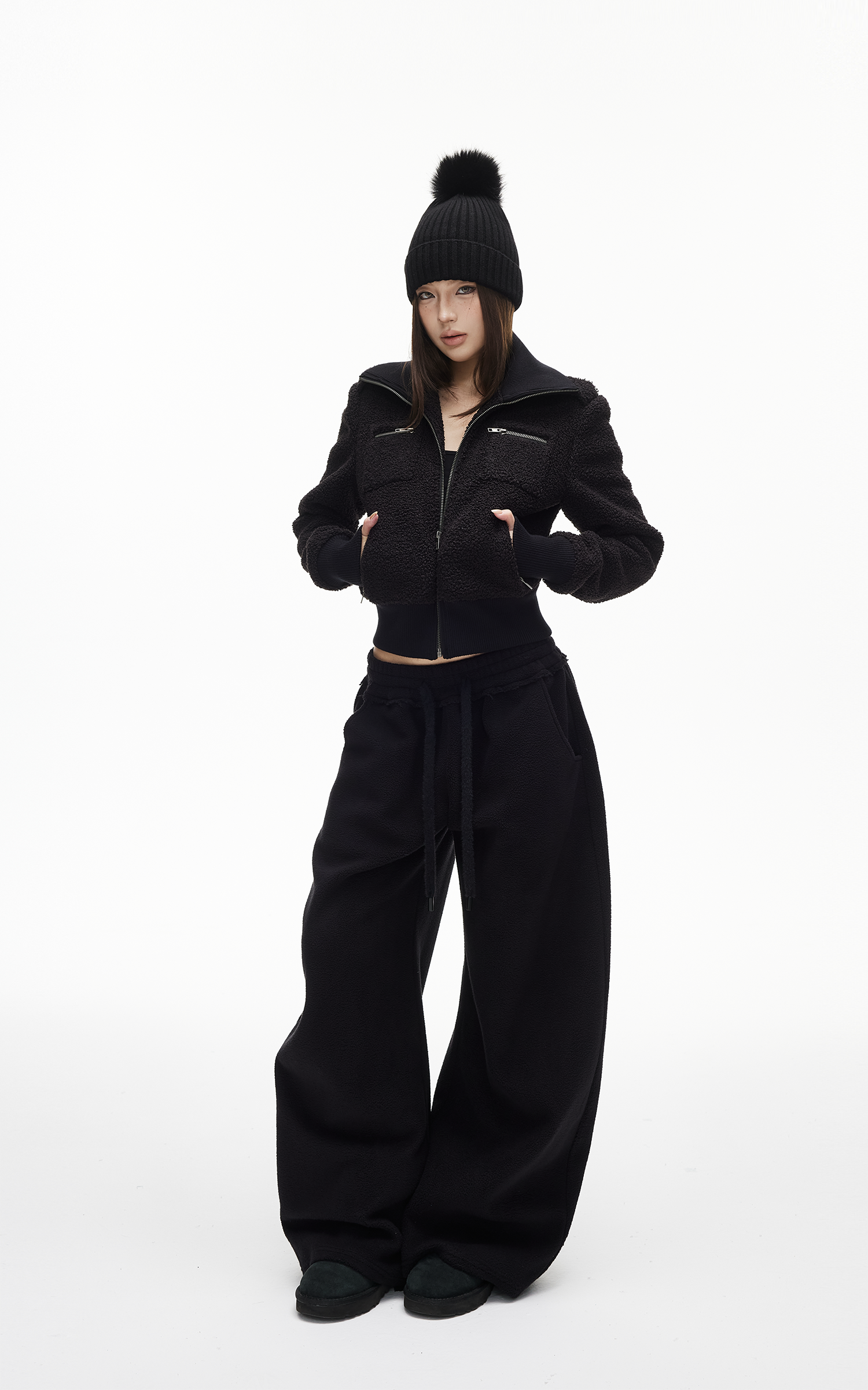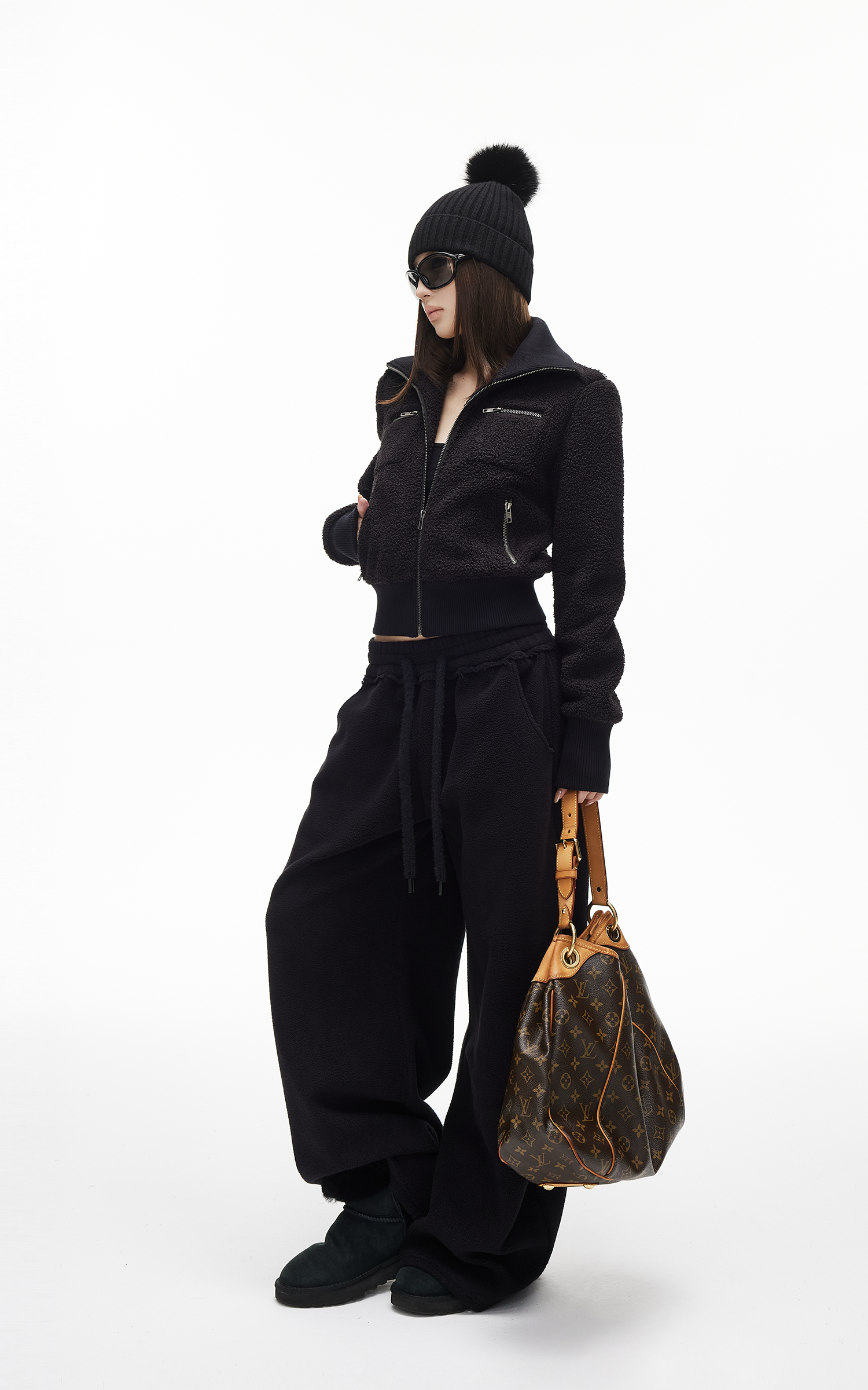 IAMXIAA Teddy Fleece Zip-Up Jacket with High Neck and Pocket Detail