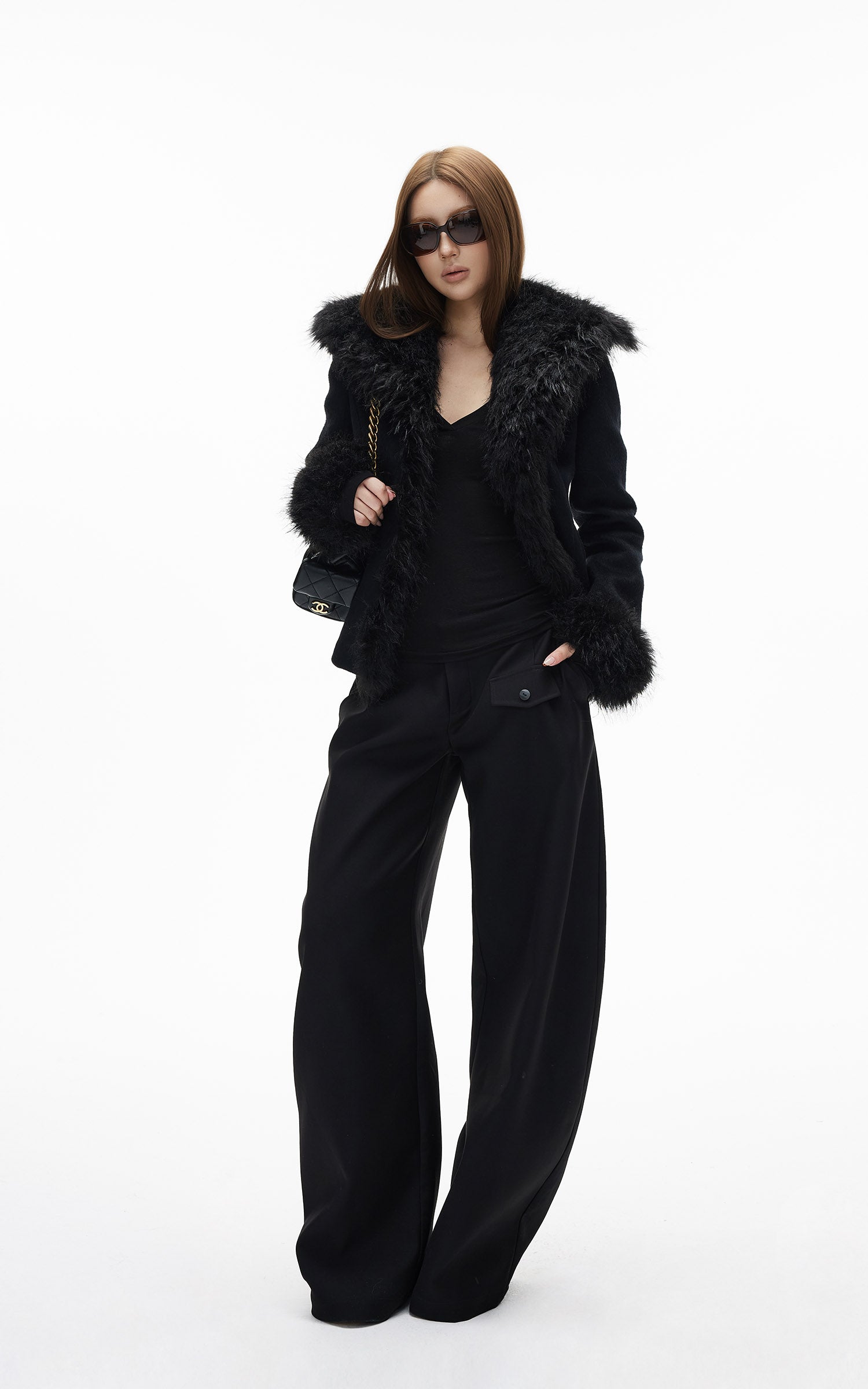 IAMXIAA Faux Fur Hooded Fleece Hoodie and Wide-Leg Sweatpants Set