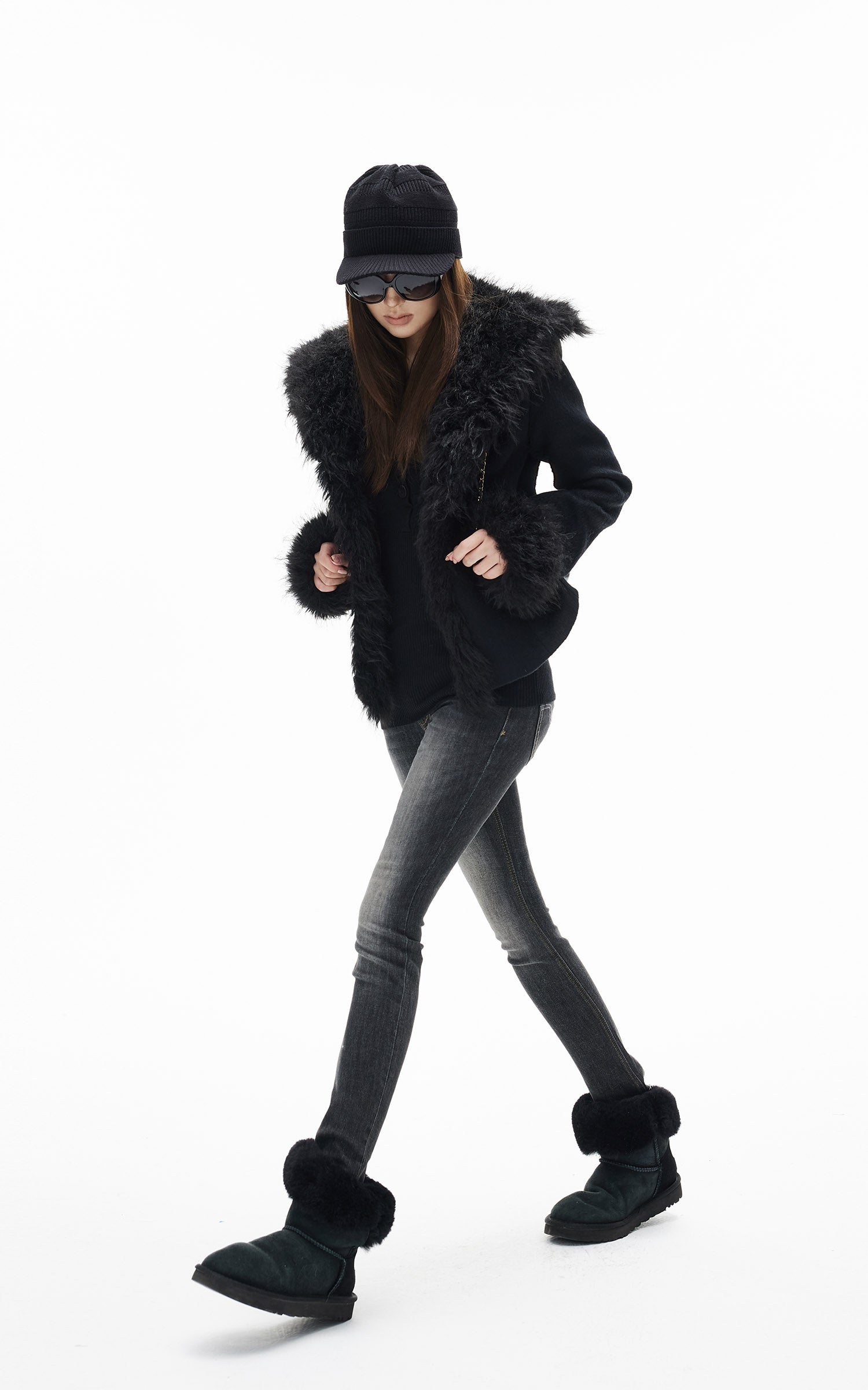 IAMXIAA Wool-Blend Fur Trim Jacket