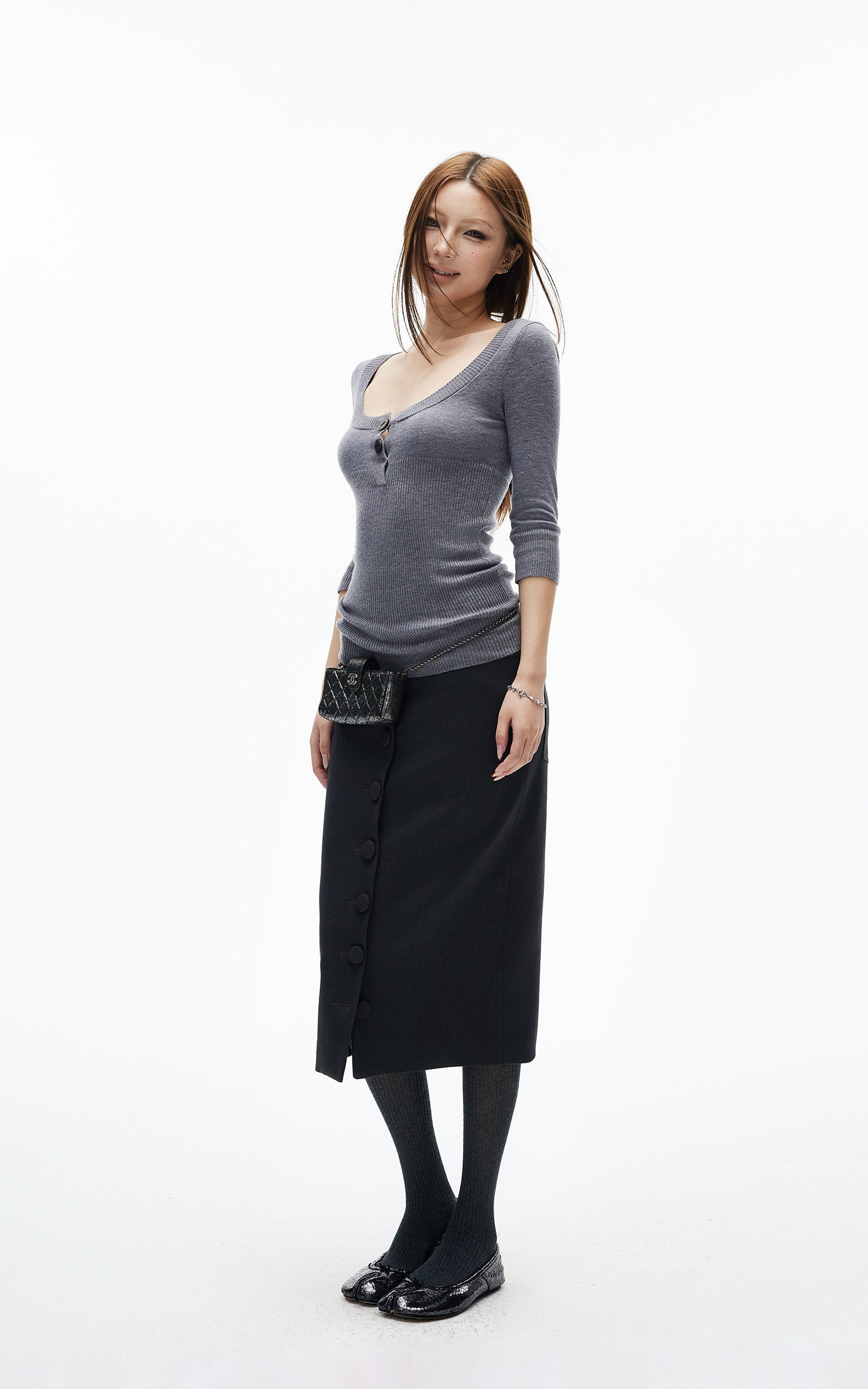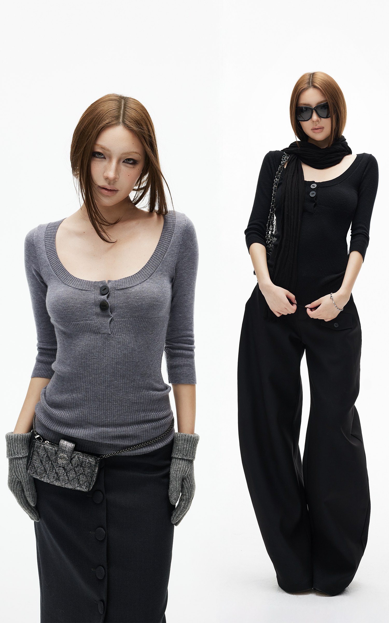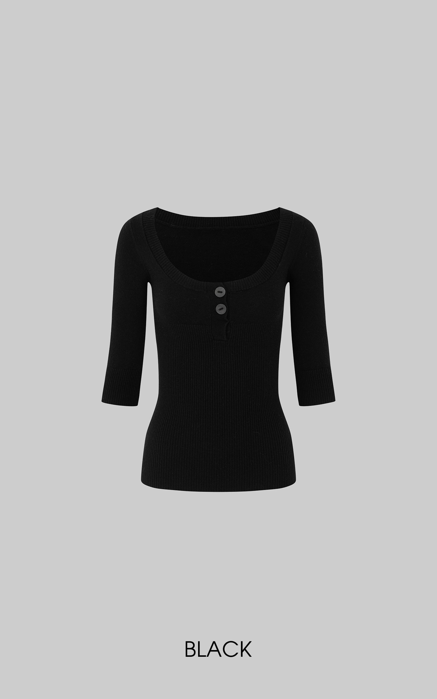 IAMXIAA Scoop Neck Knit Top with Button Detail