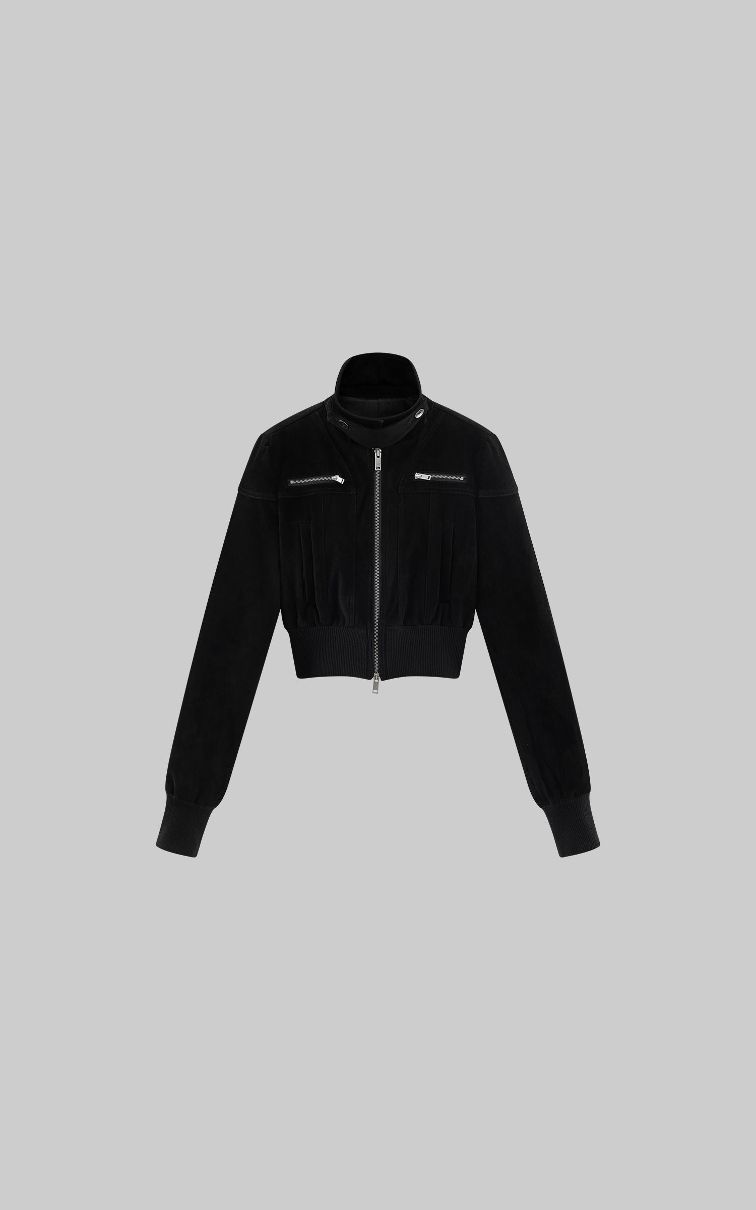 ROVENTE Cropped Suede Jacket with High Collar and Zipper Detailing