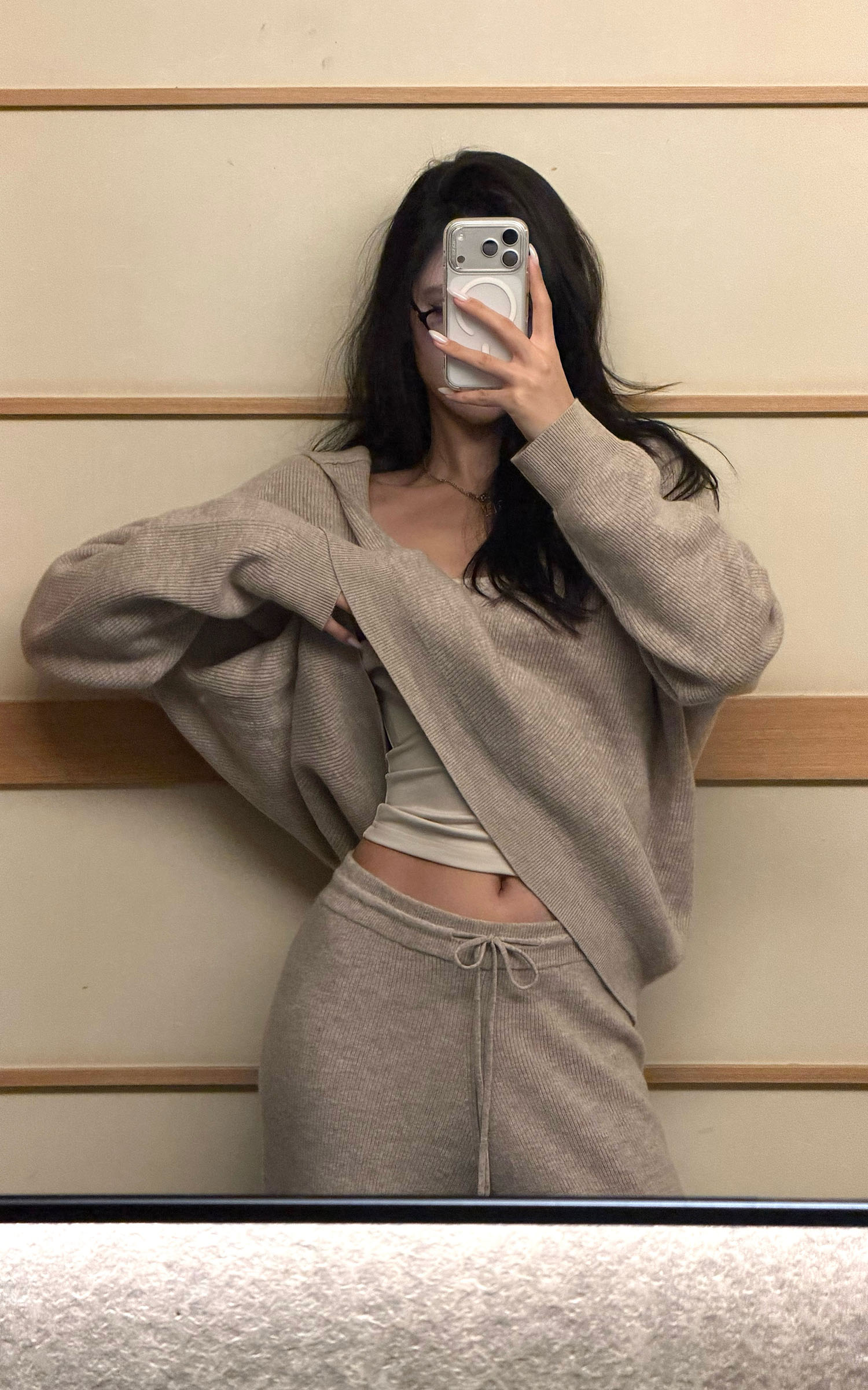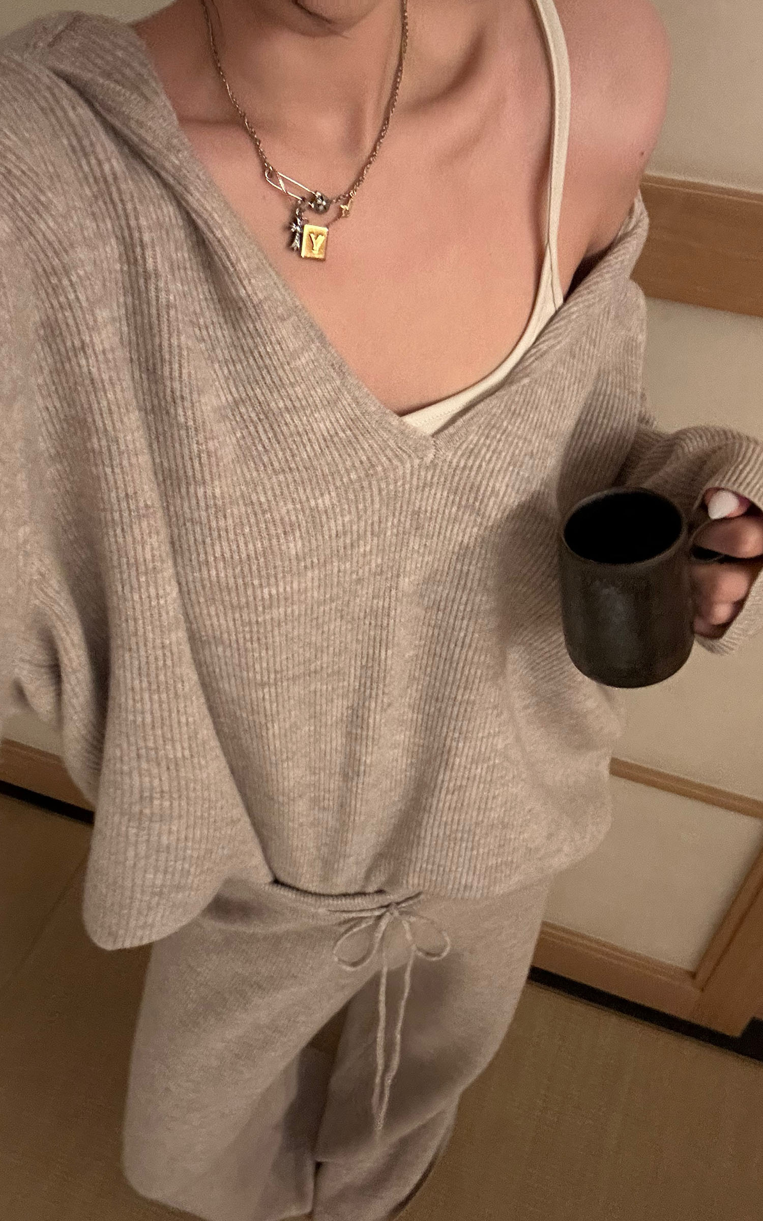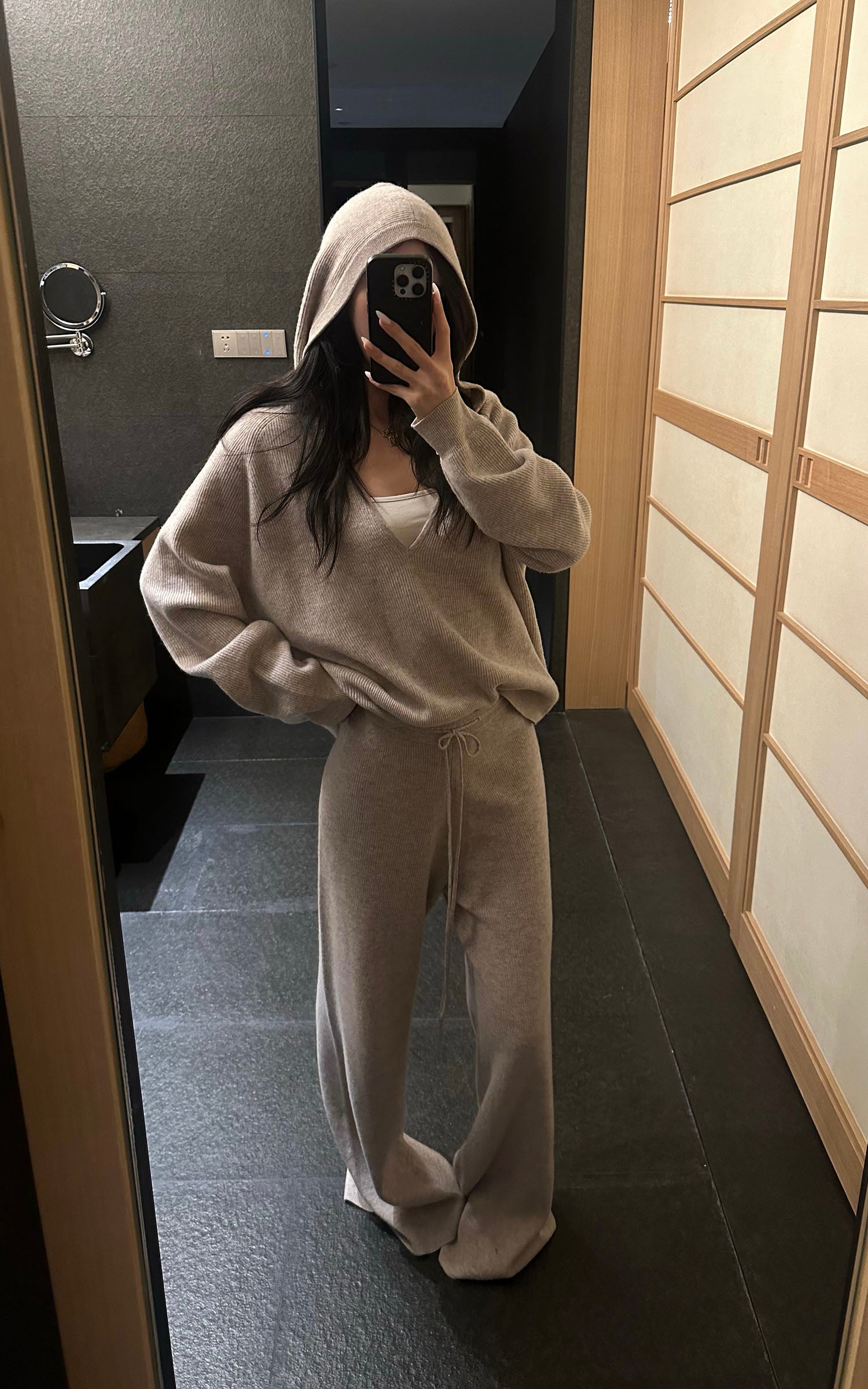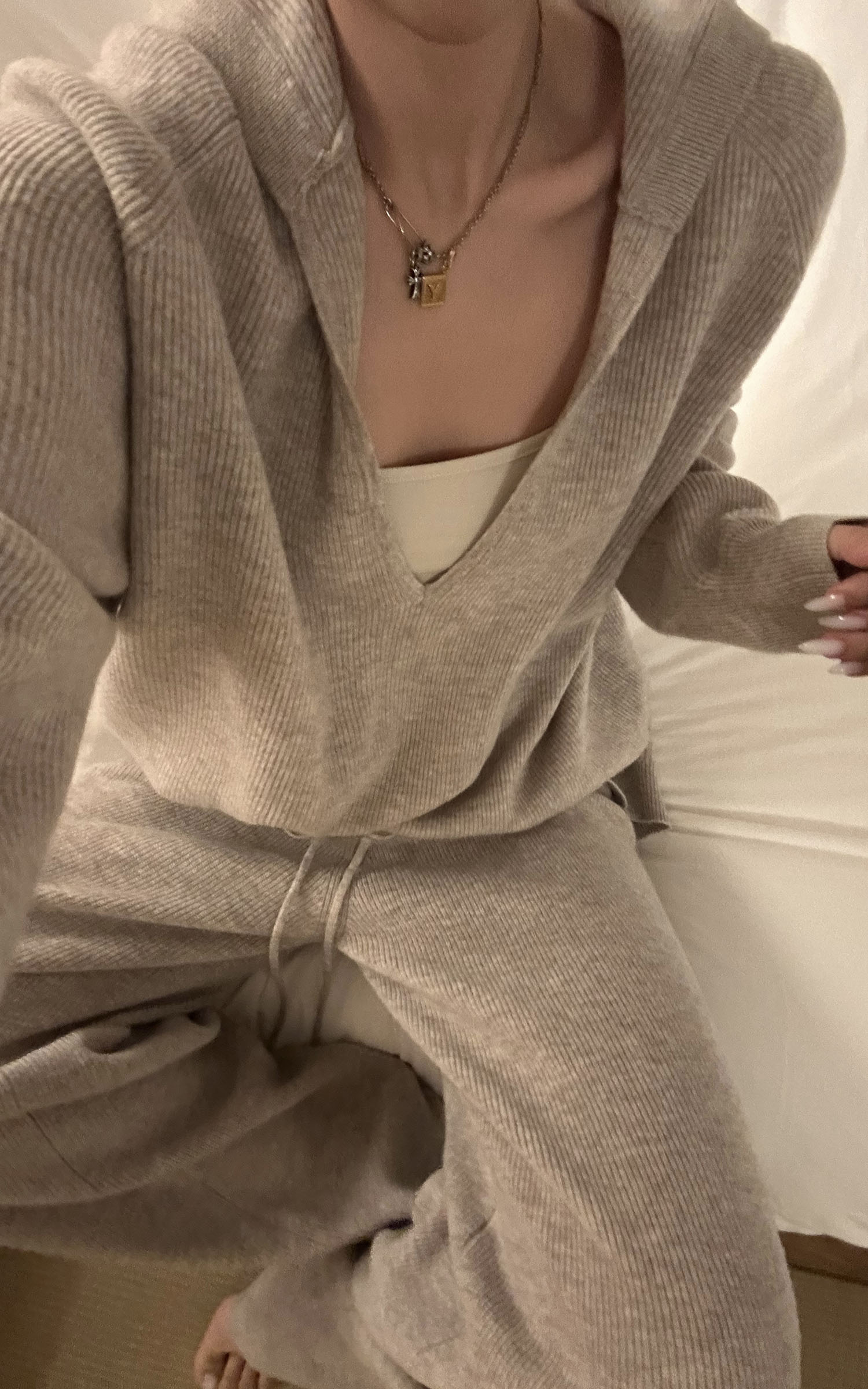 ROVENTE Cozy Rib Knit Hoodie & Wide-Leg Lounge Pants Set