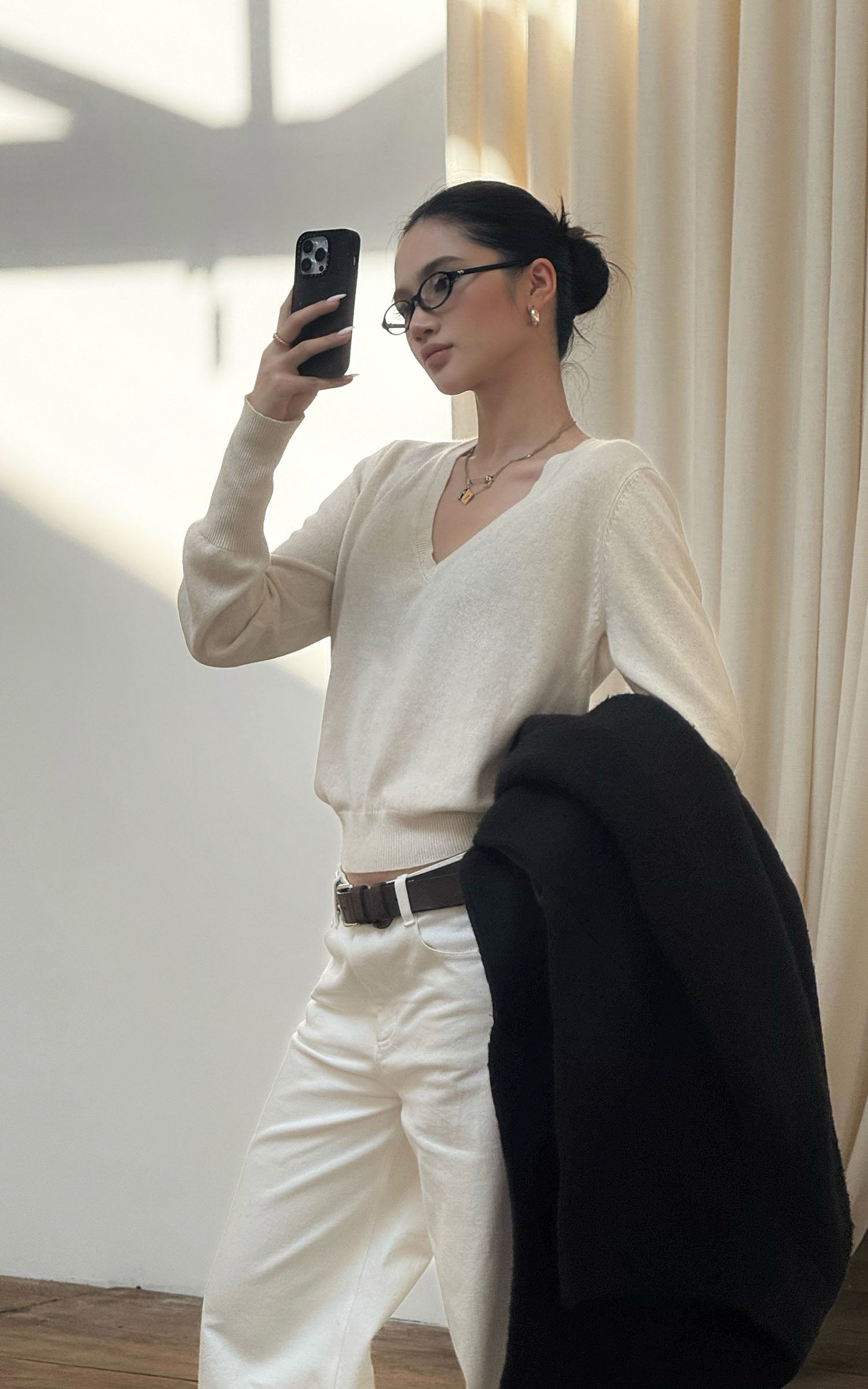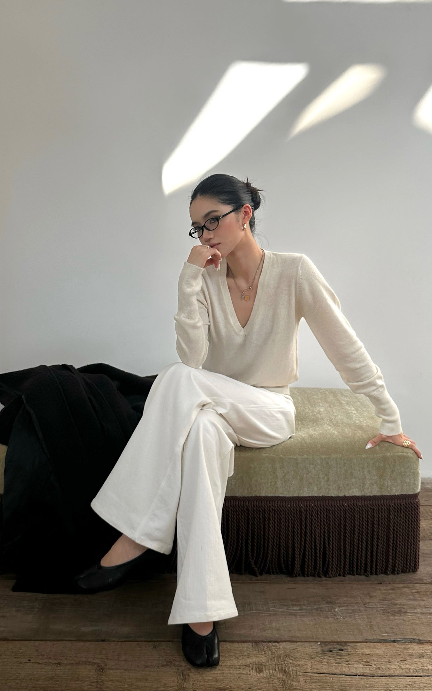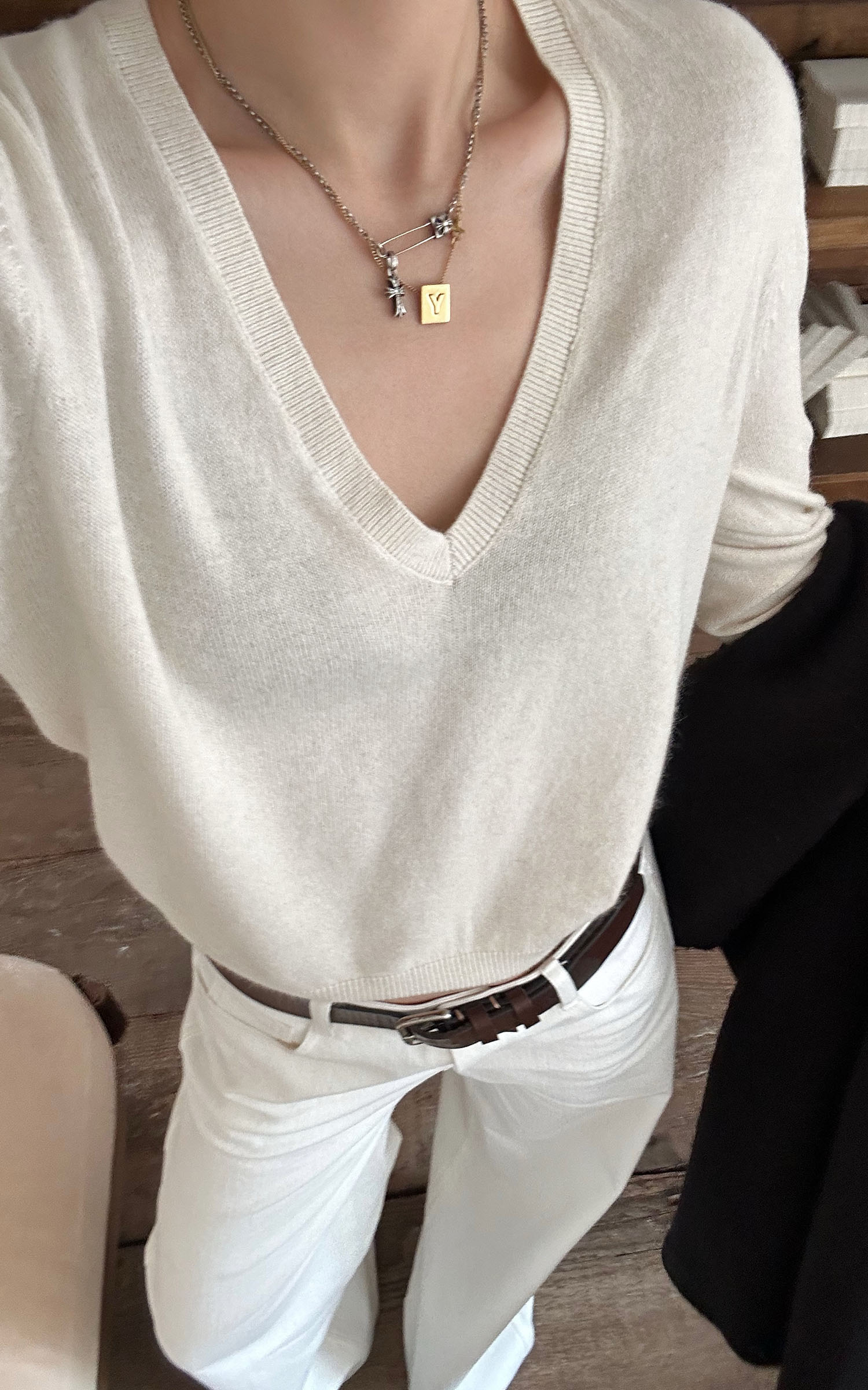 ROVENTE V-Neck Minimalist Soft Knit Sweater