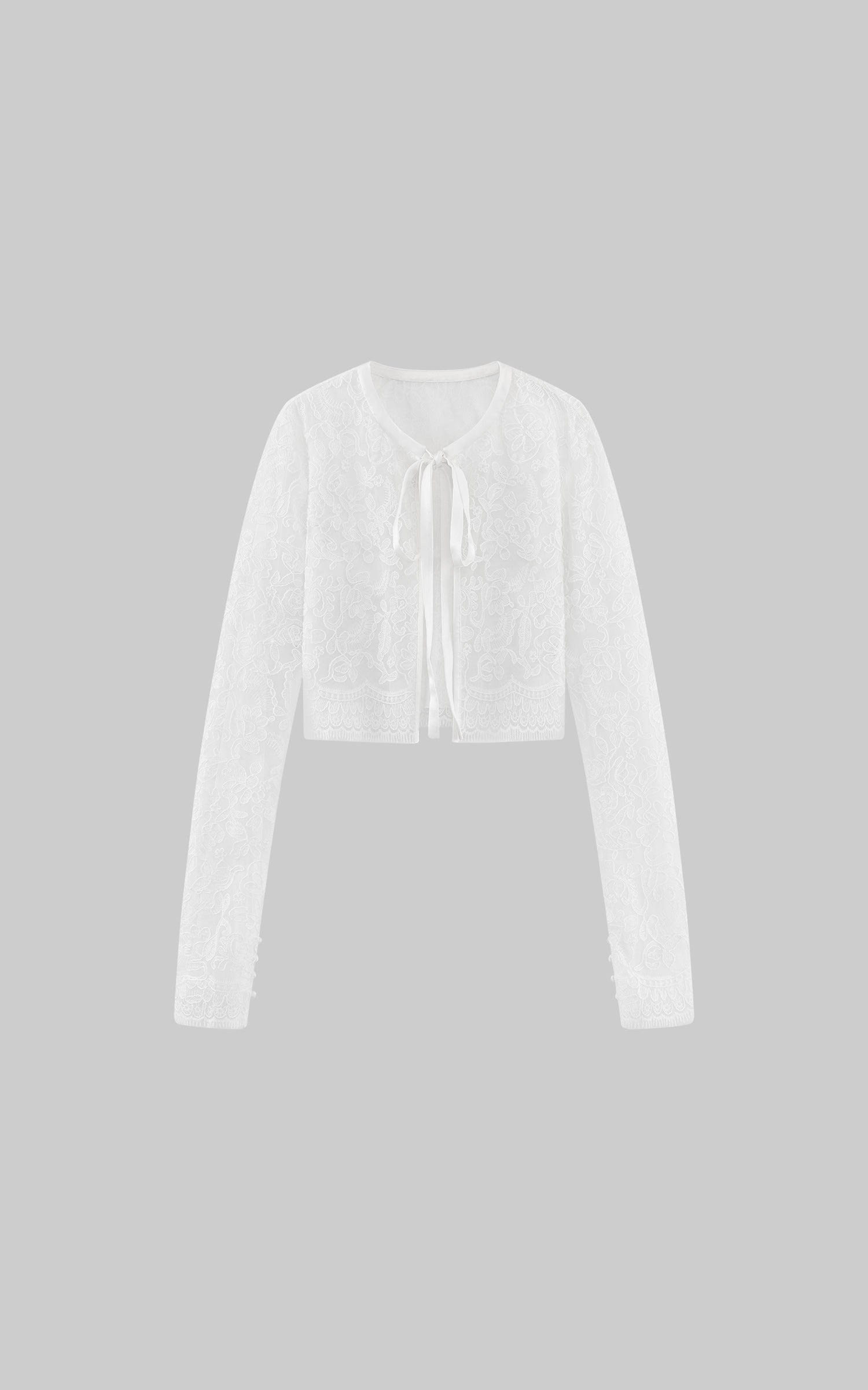 ROVENTE Sheer Lace Tie-Front Cardigan