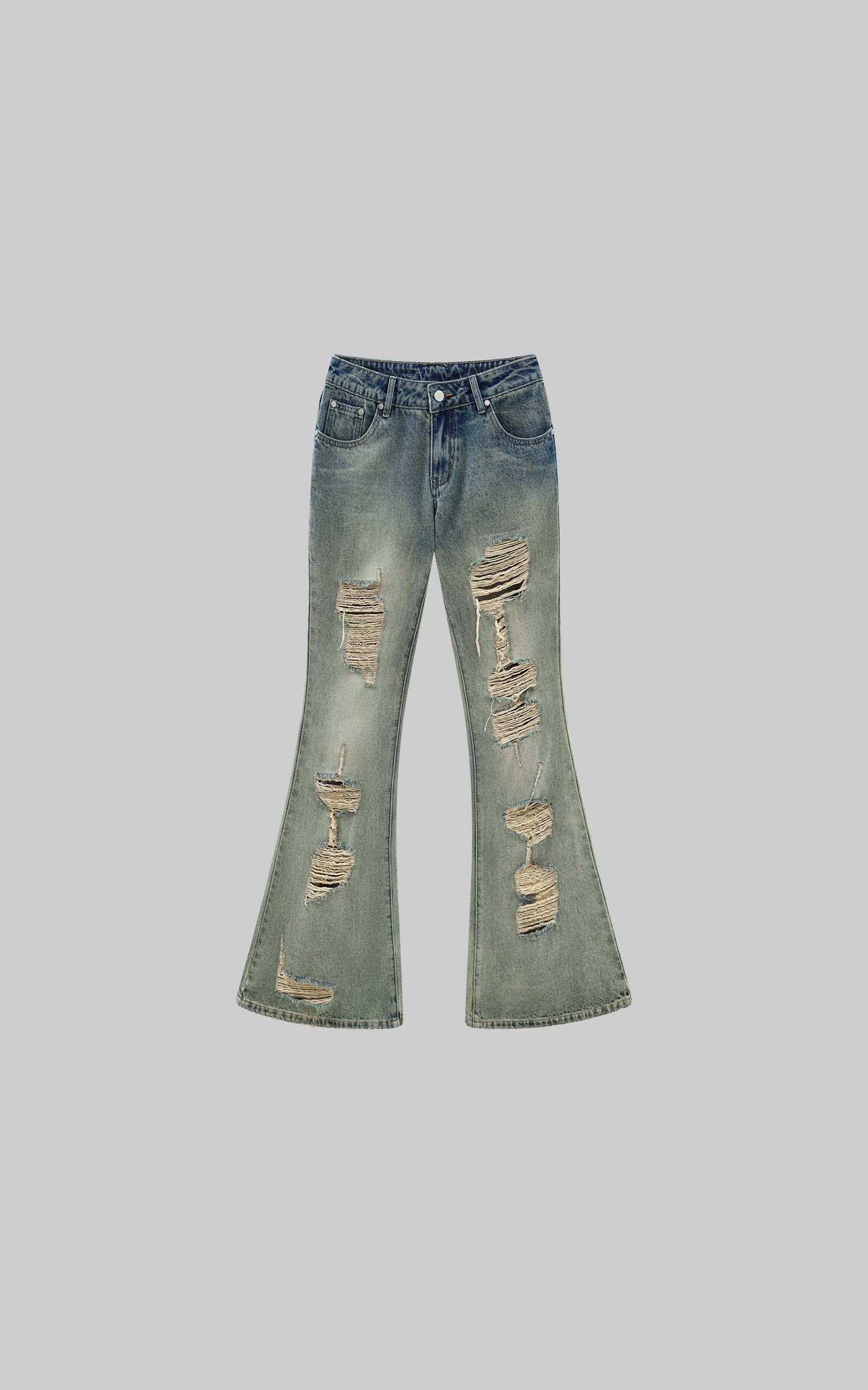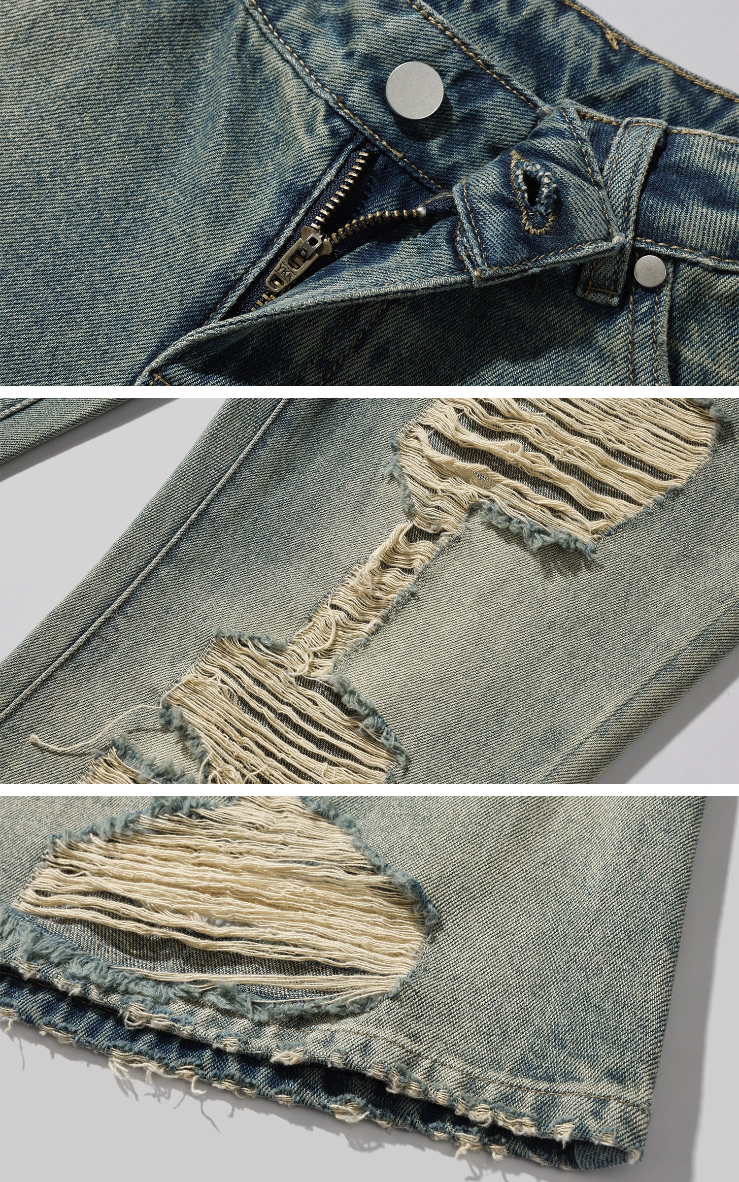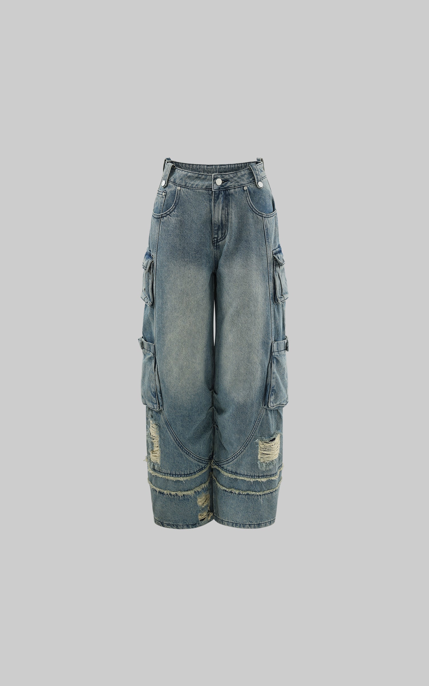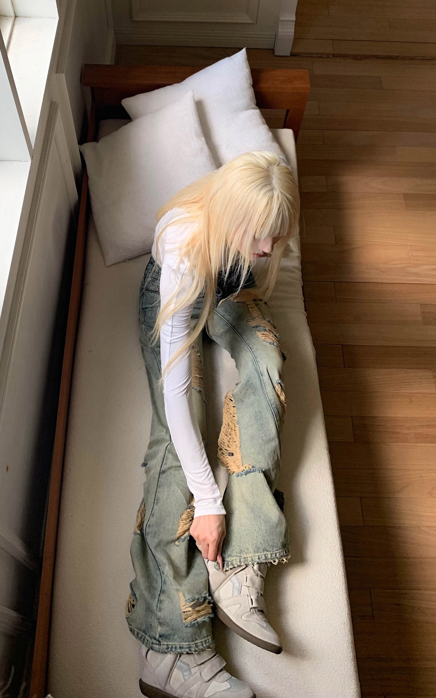 Rase le sol Deconstructed Distressed Wide-Leg Denim Pants