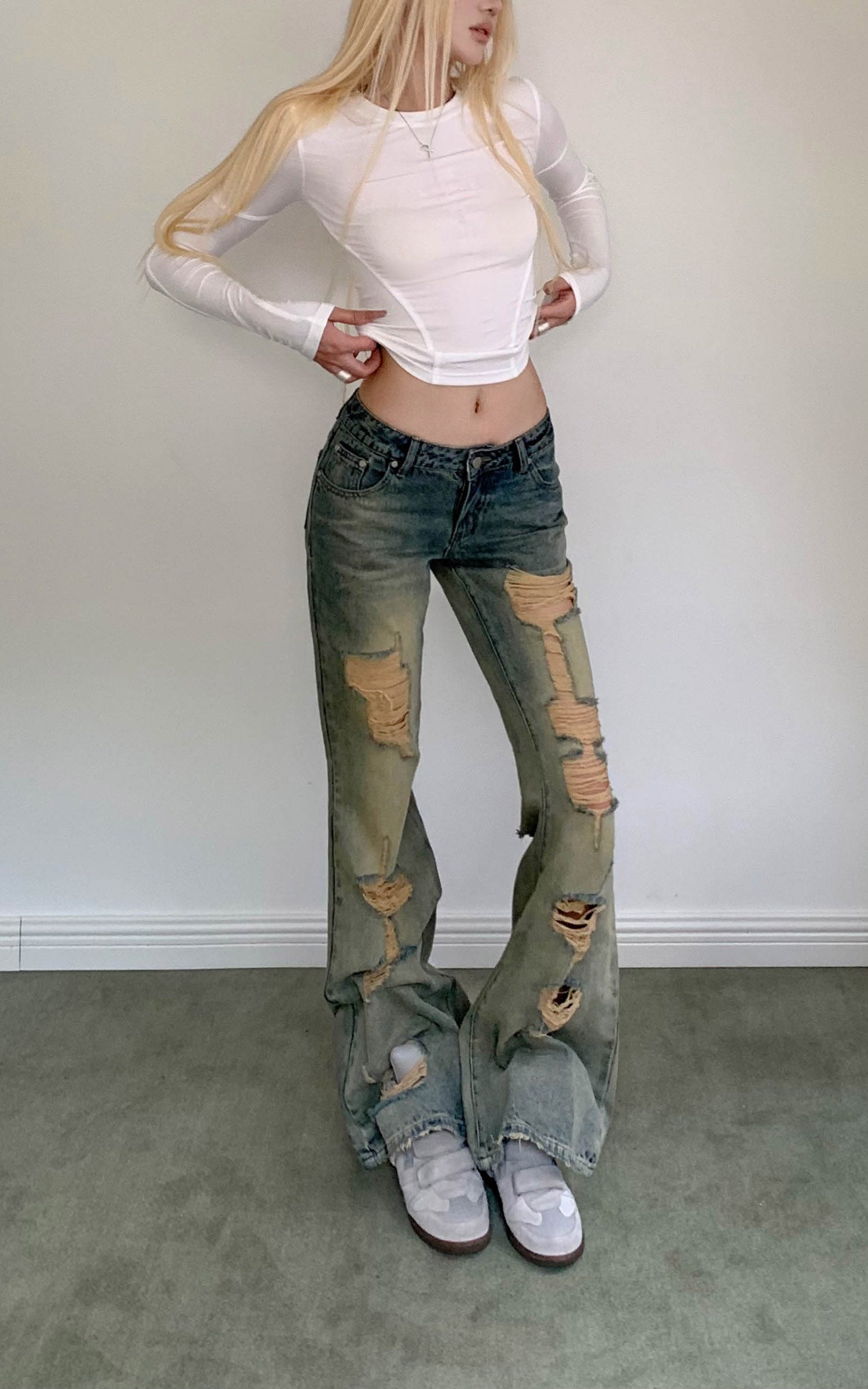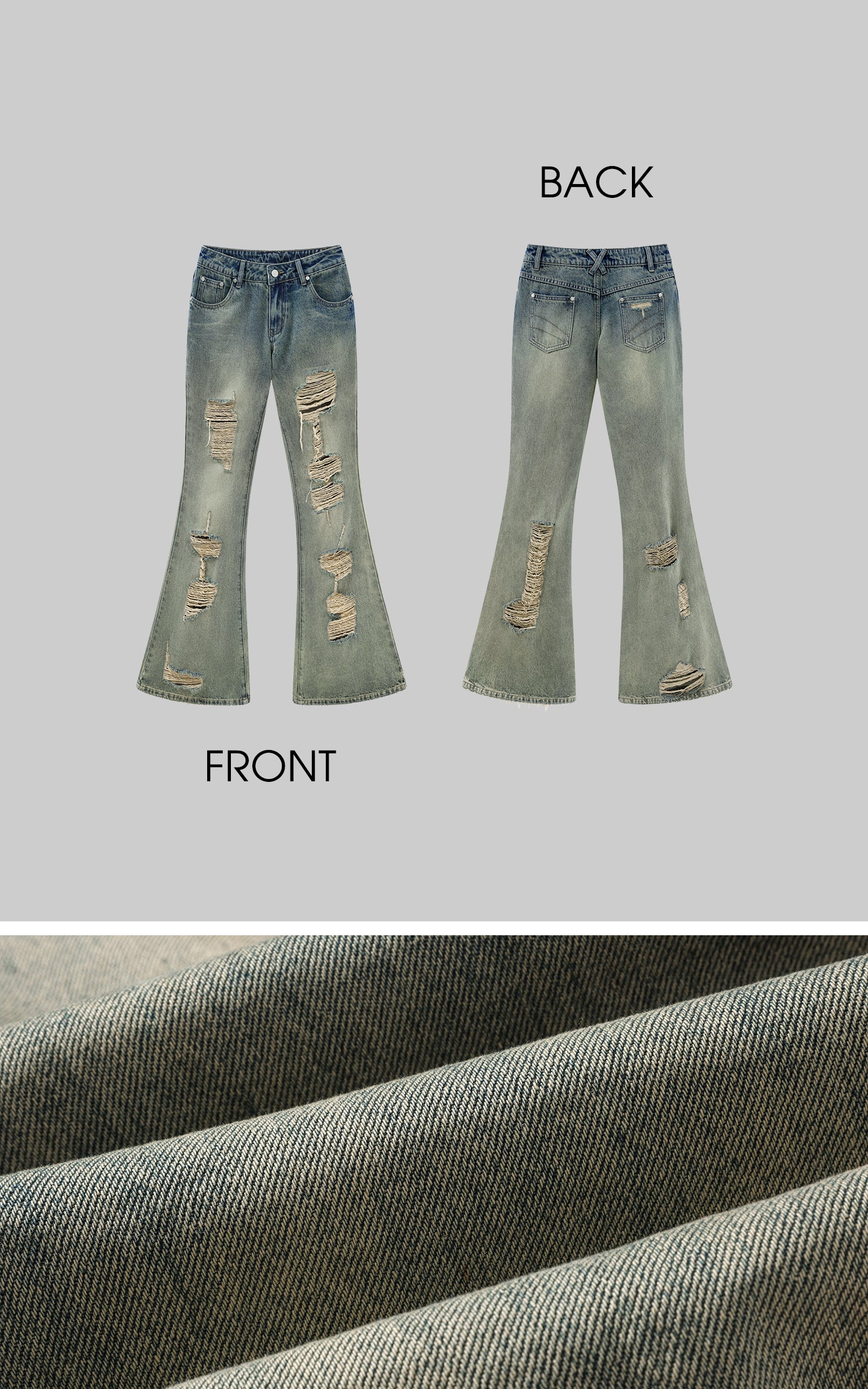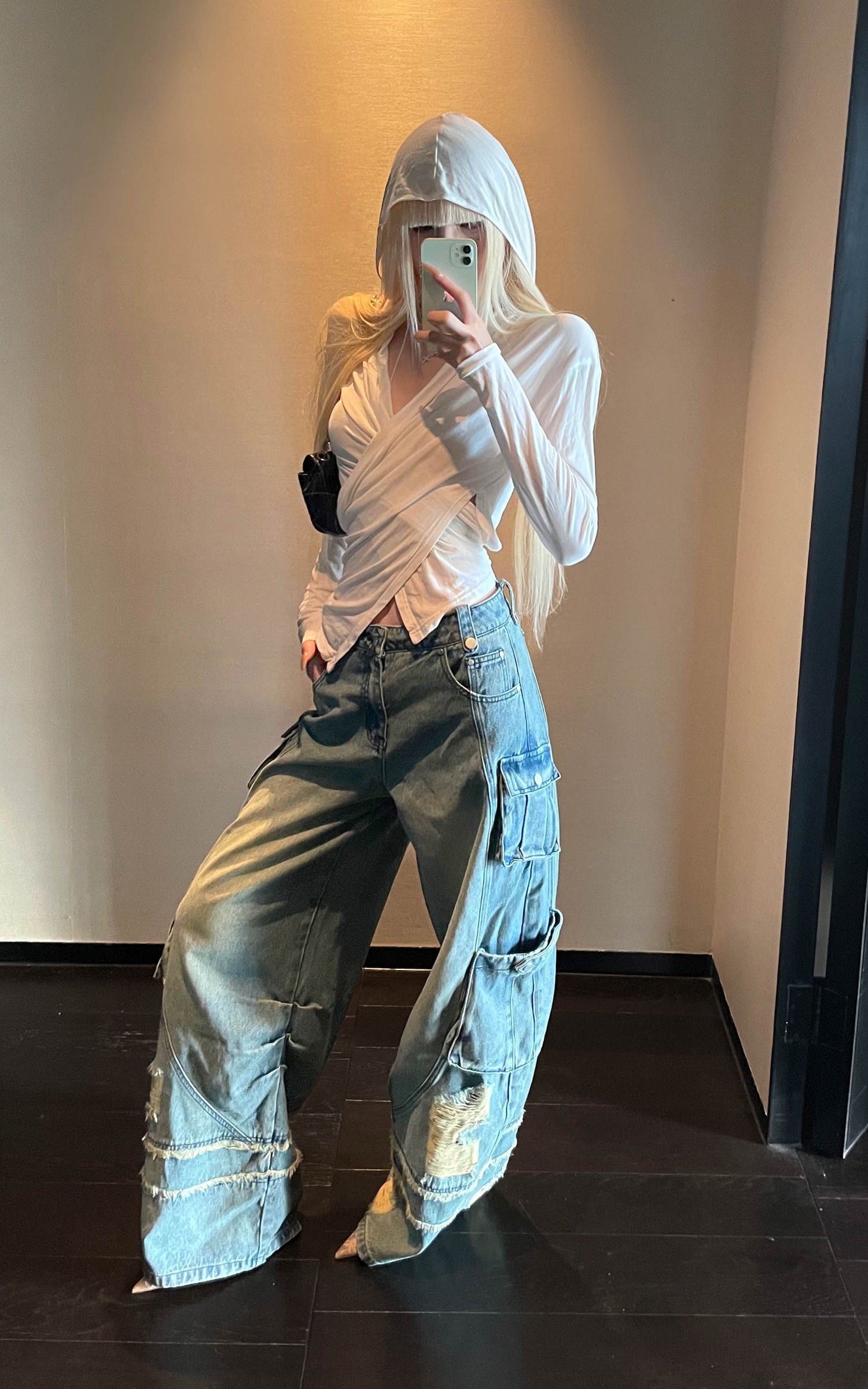 Rase le sol Deconstructed Distressed Wide-Leg Denim Pants