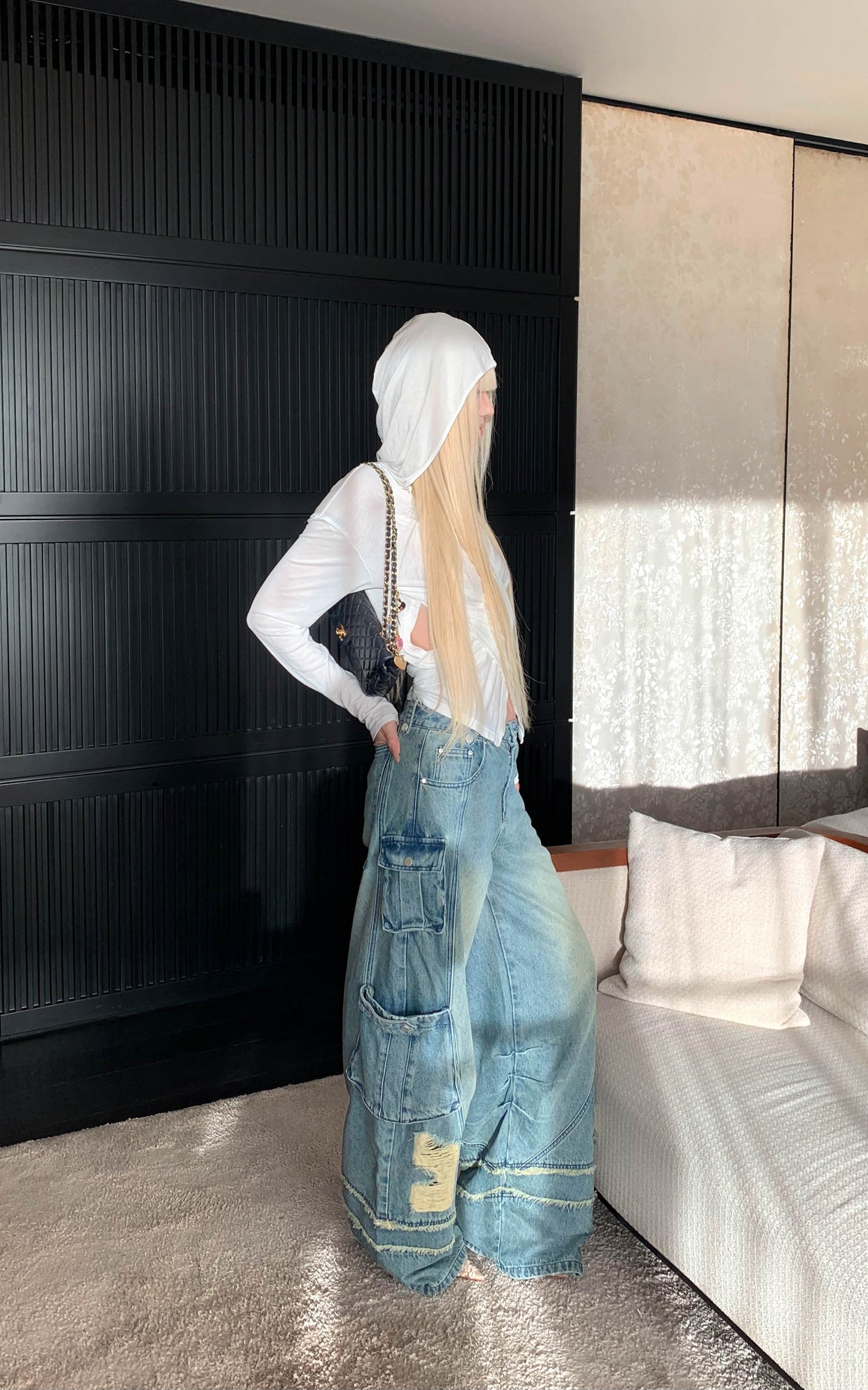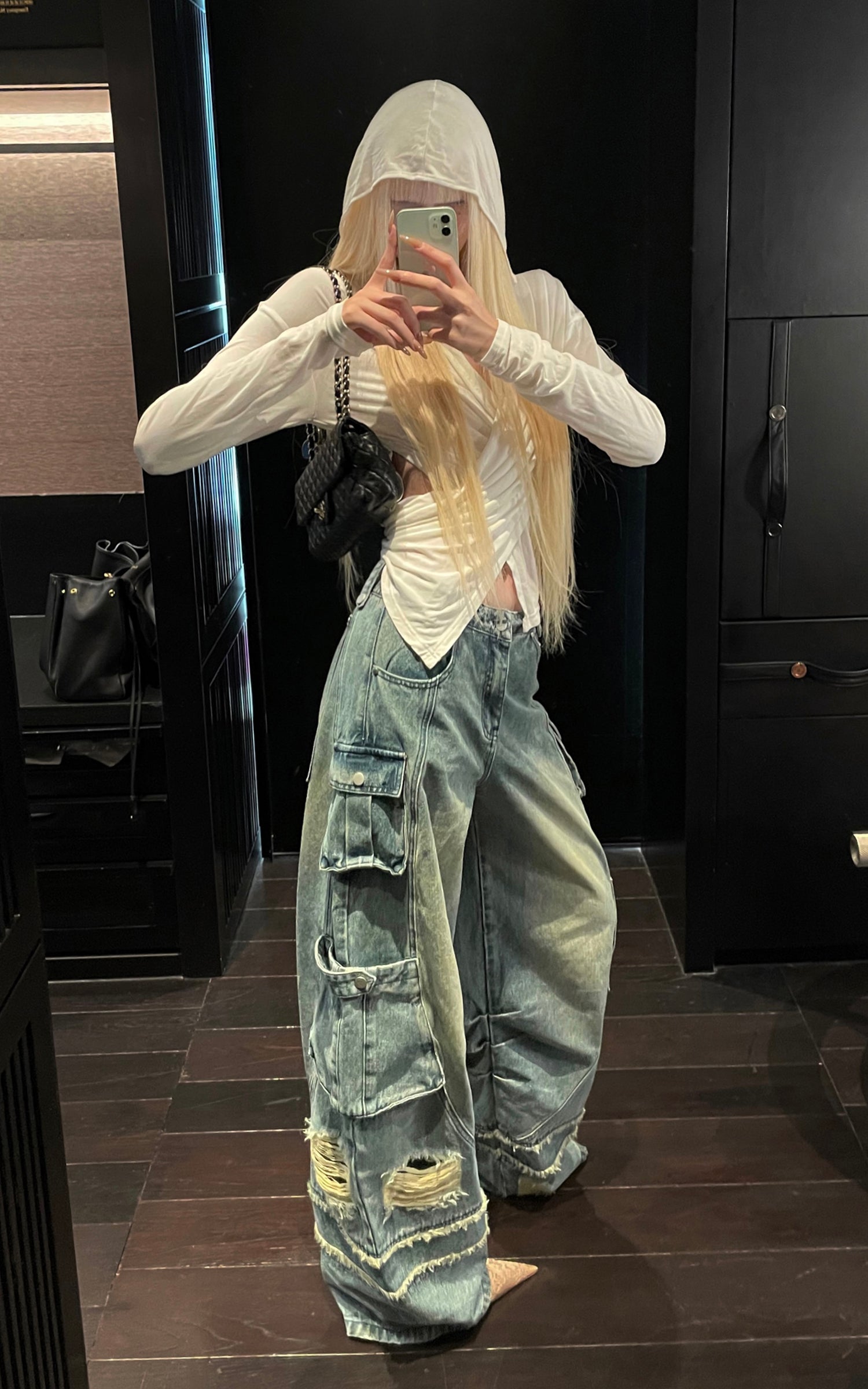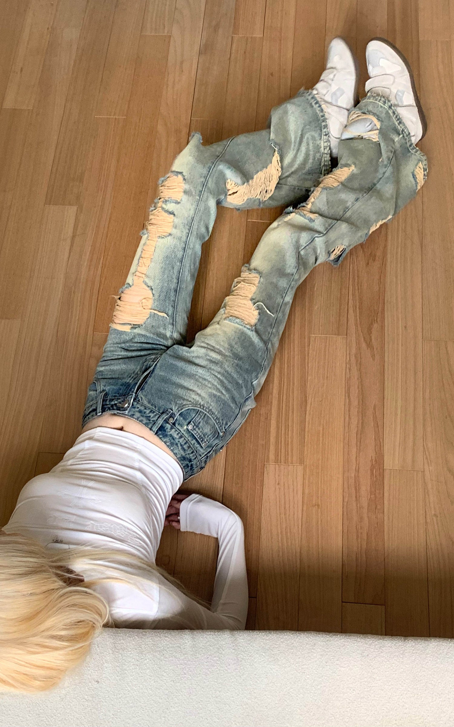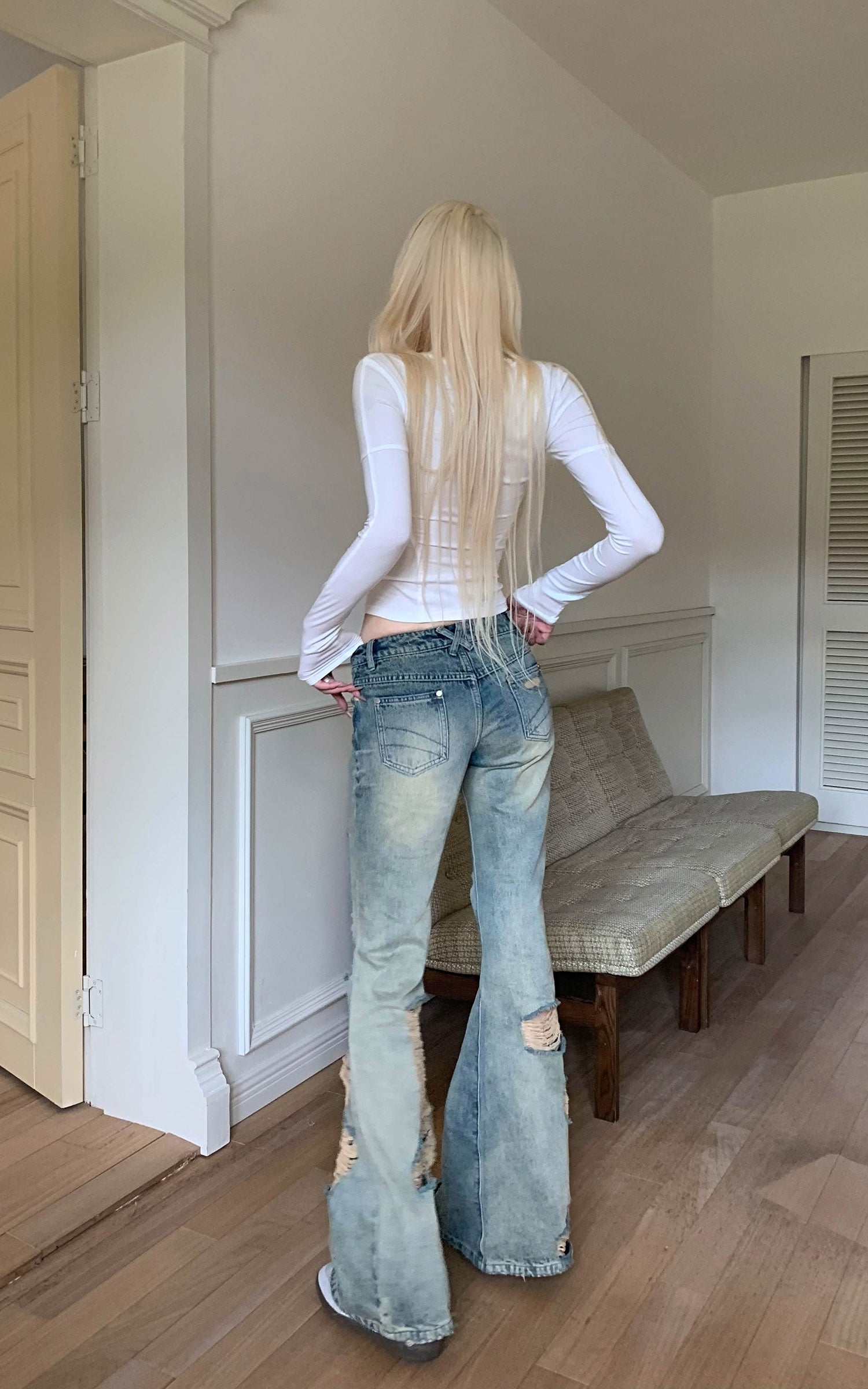 Rase le sol Deconstructed Distressed Wide-Leg Denim Pants