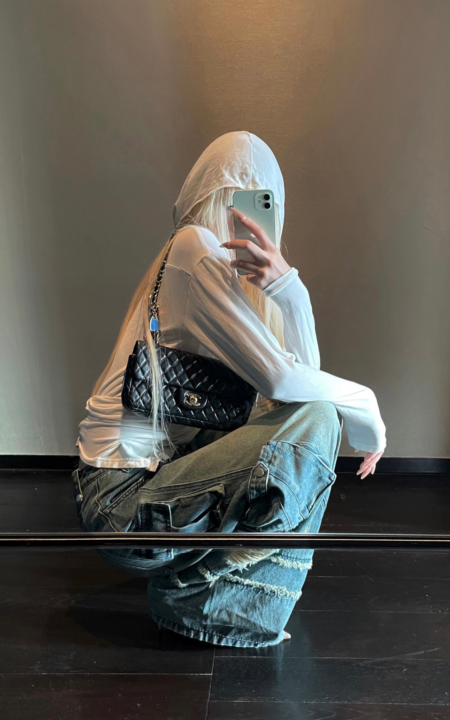 Rase le sol Wing Hoodie Black Fitted Cotton Long Sleeve Top