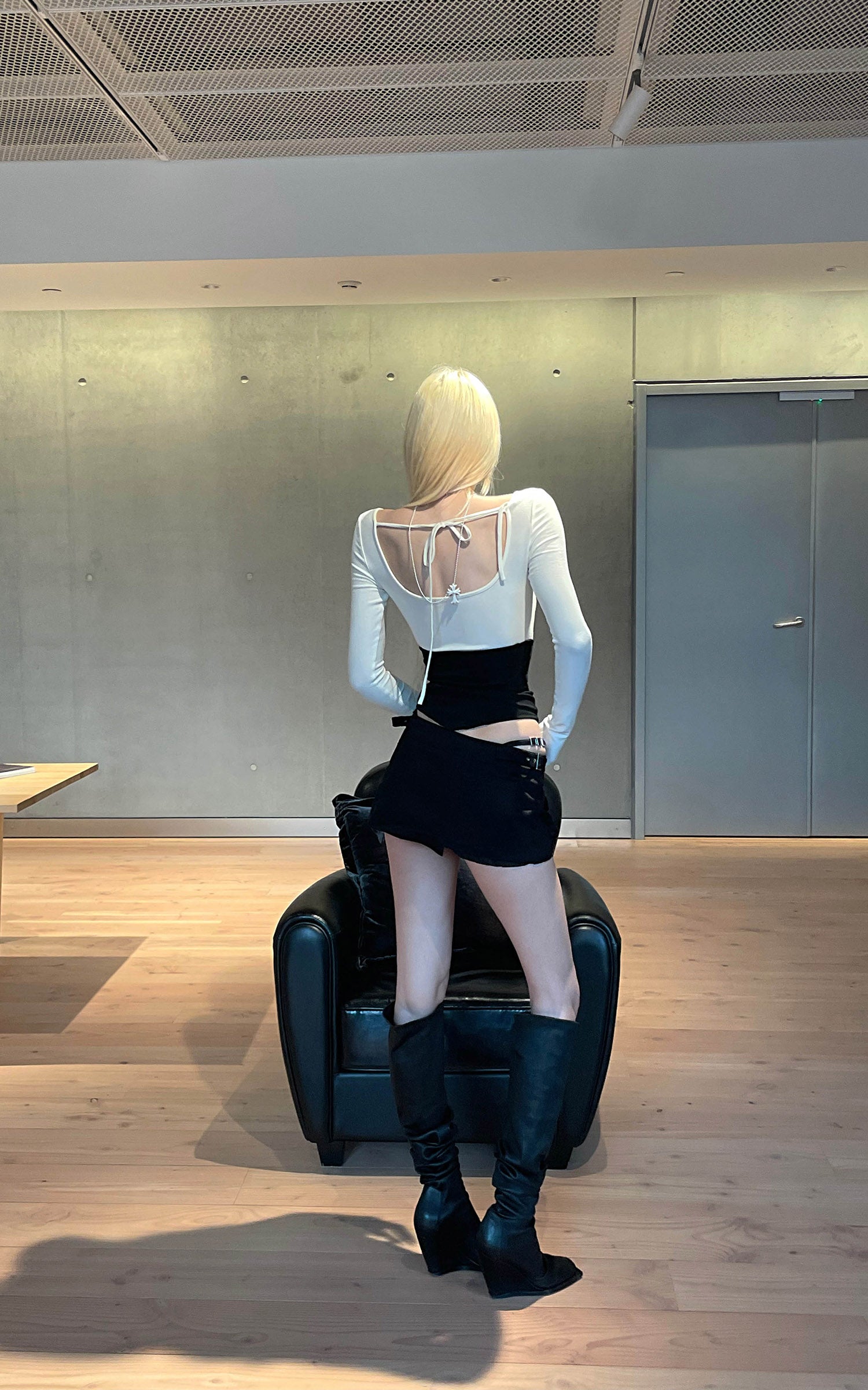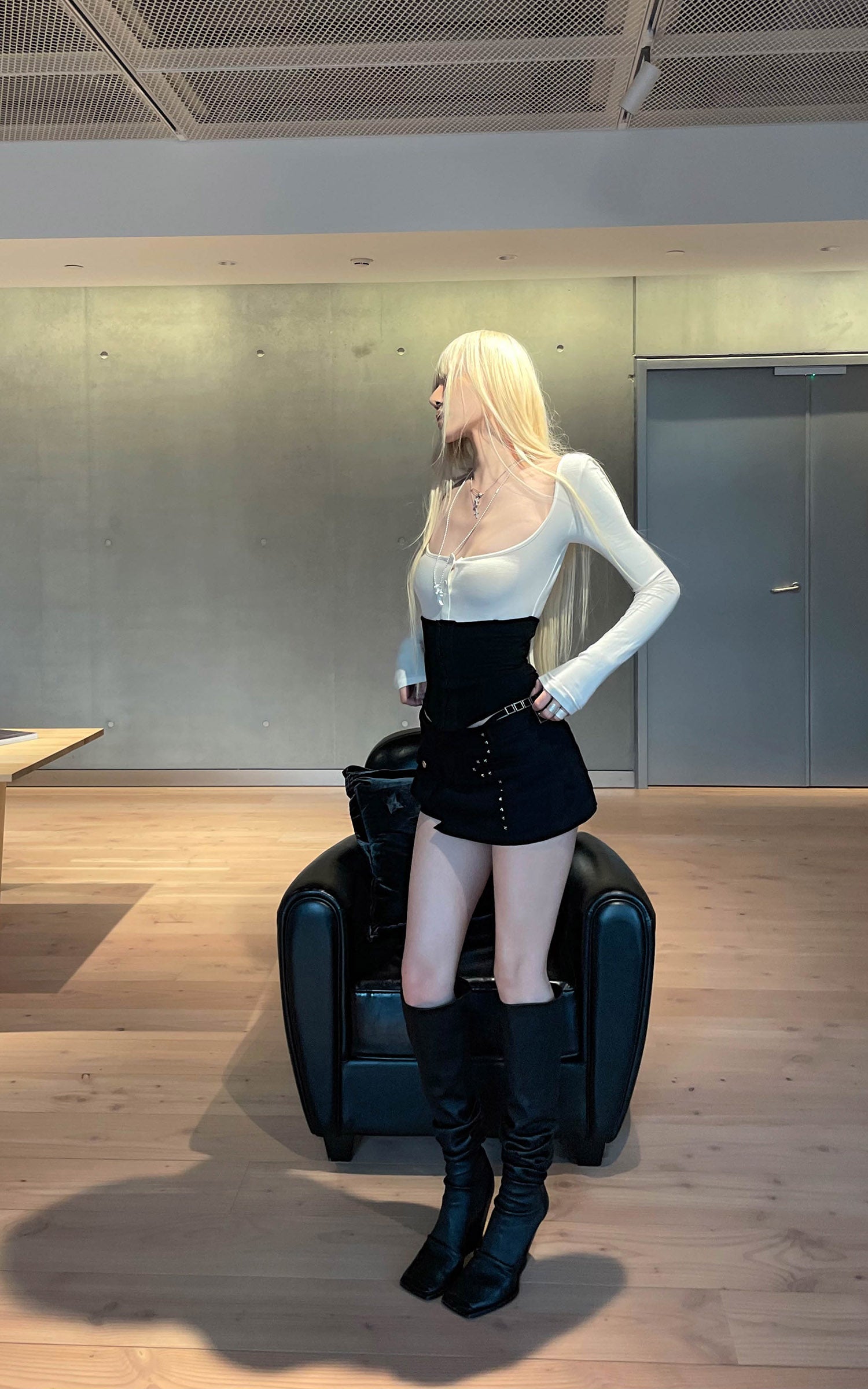 Rase le sol Layered Effect Corset Long Sleeve Top